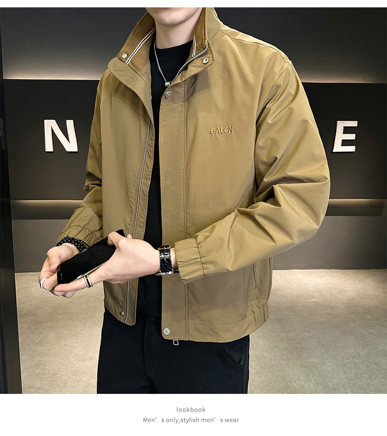 하이 엔드 작업복 재킷 남성 트렌디 브랜드 봄과 가을 2025 새로운 에비에이터 짧은 수직 칼라 재킷 남성 봄 의류스토어 가기