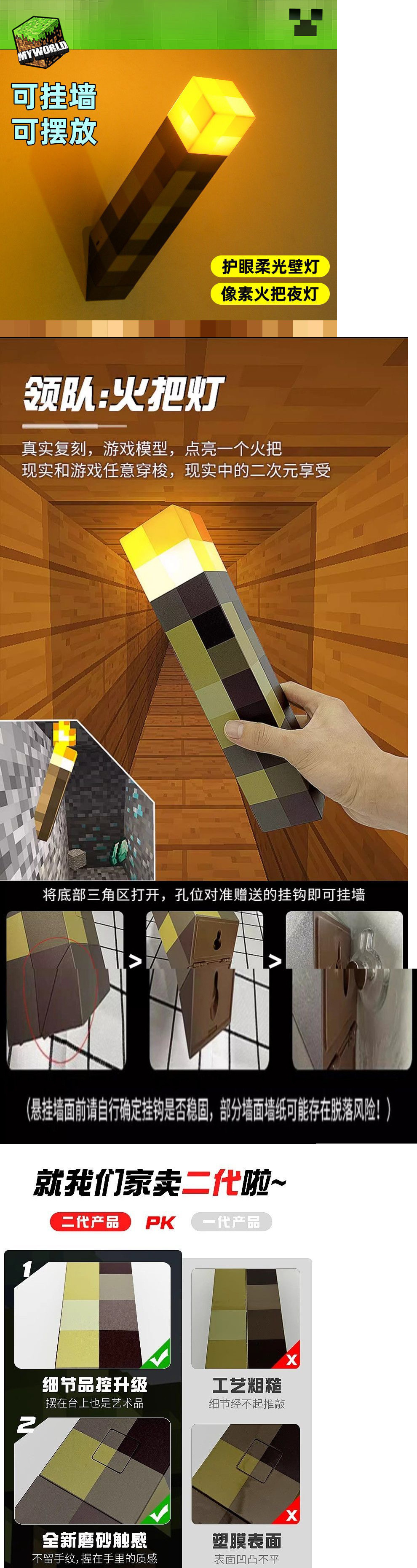 Minecraft 토치 야간 조명 침실 수면 조명 소년 기숙사 머리맡 음성 제어 유도 크리 에이 티브 생일 선물스토어 가기