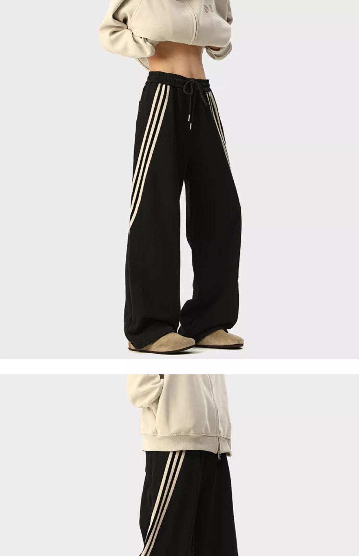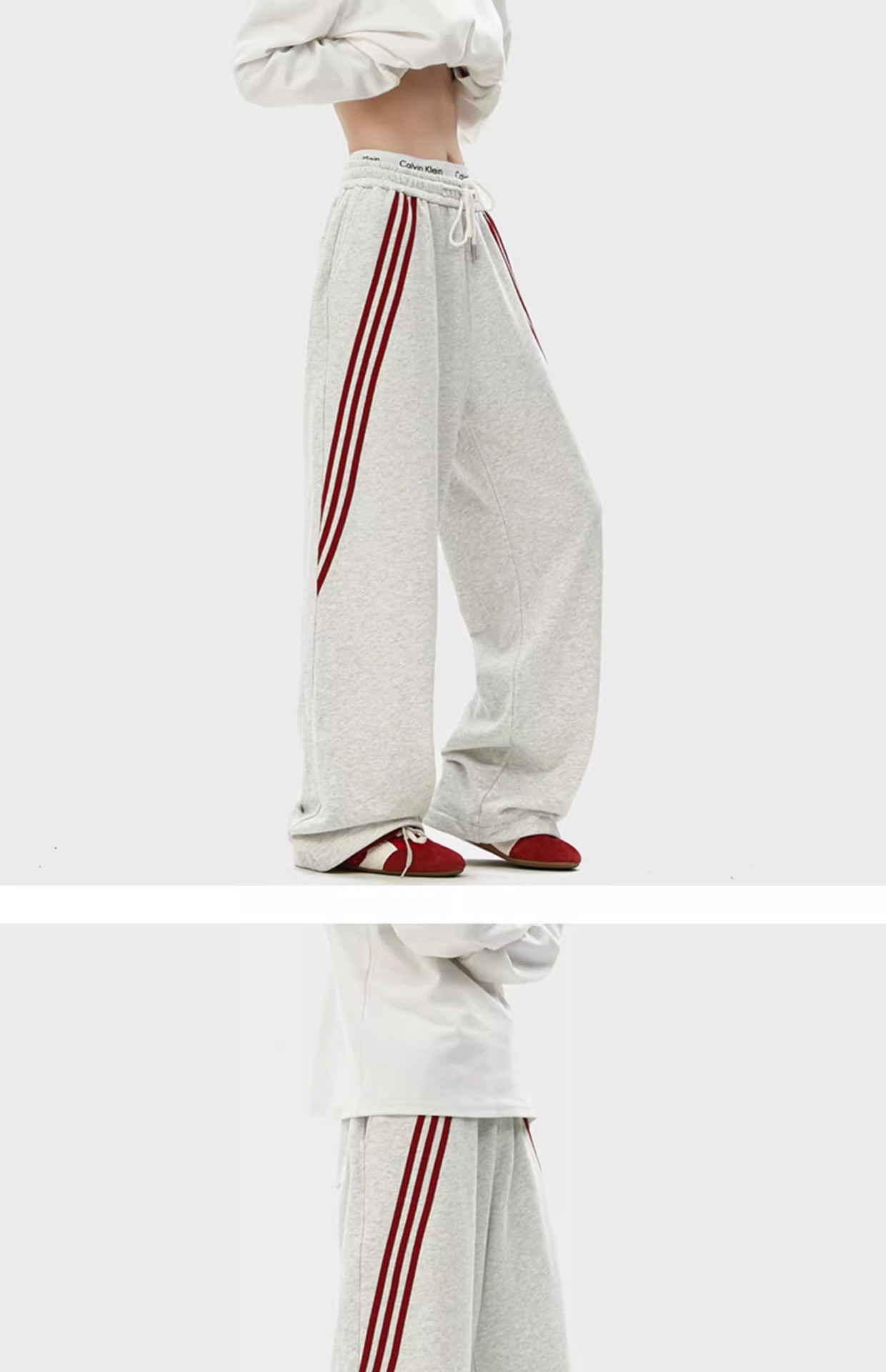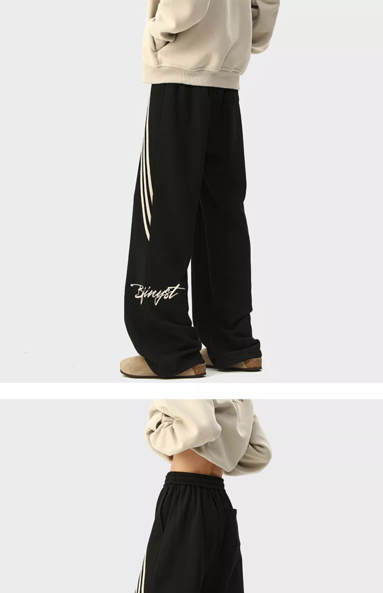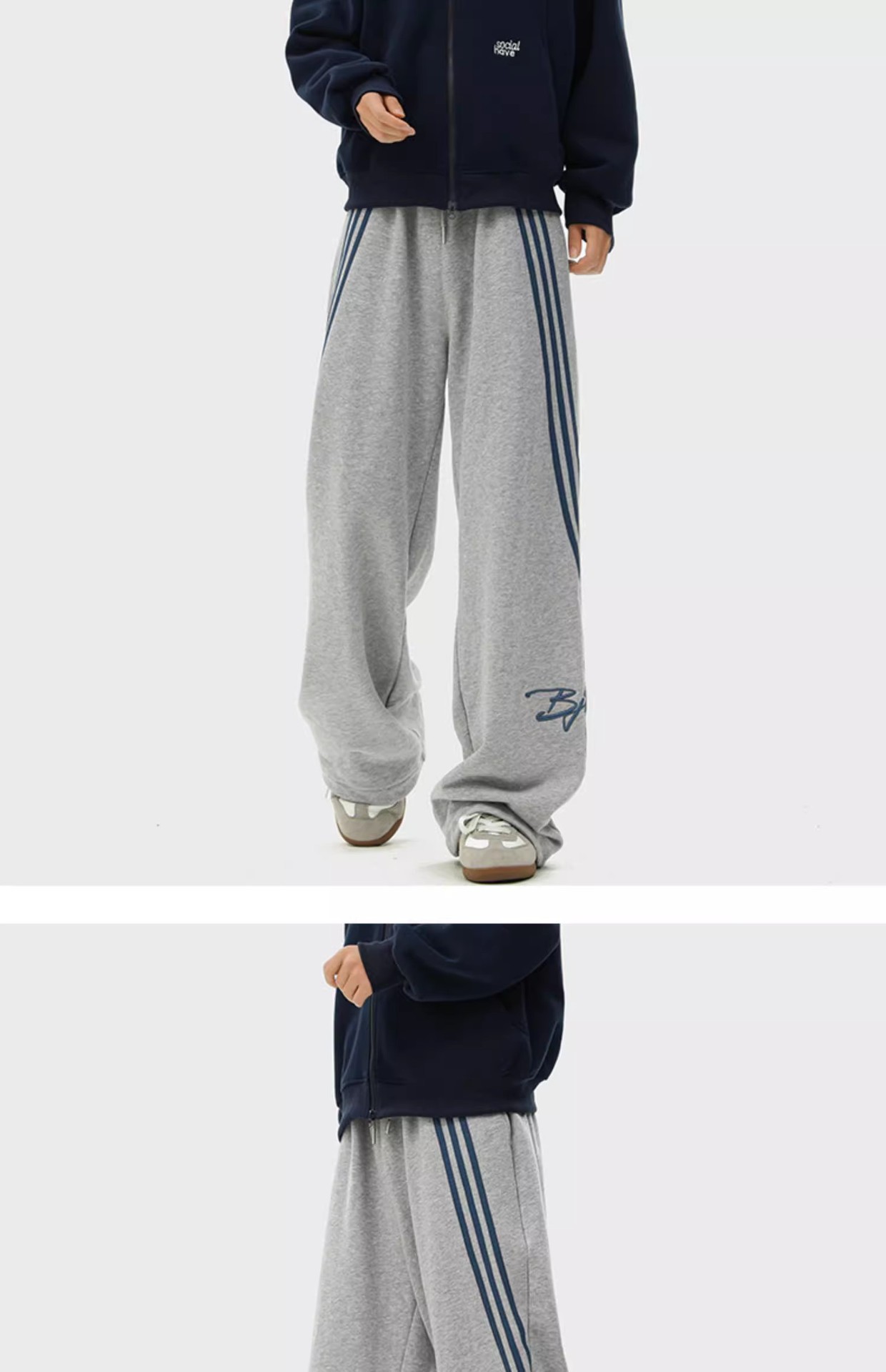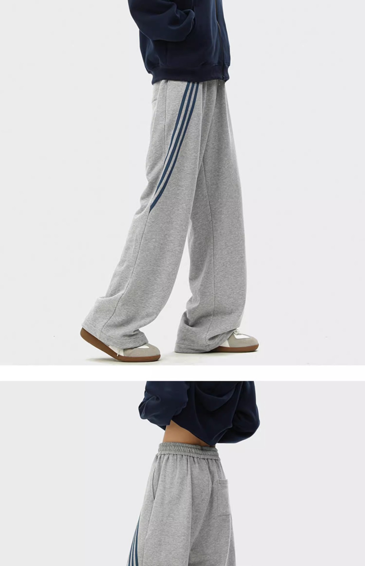 봄 신작 하이 스트리트 루즈 드레이프 스트레이트 와이드 레그 캐주얼 롱 팬츠 남성용 아메리칸 트렌디 스트라이프 스포츠 팬츠