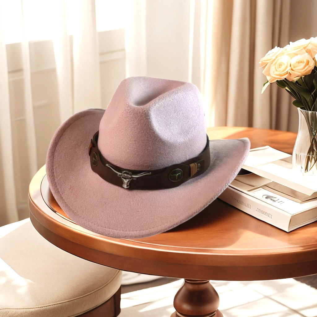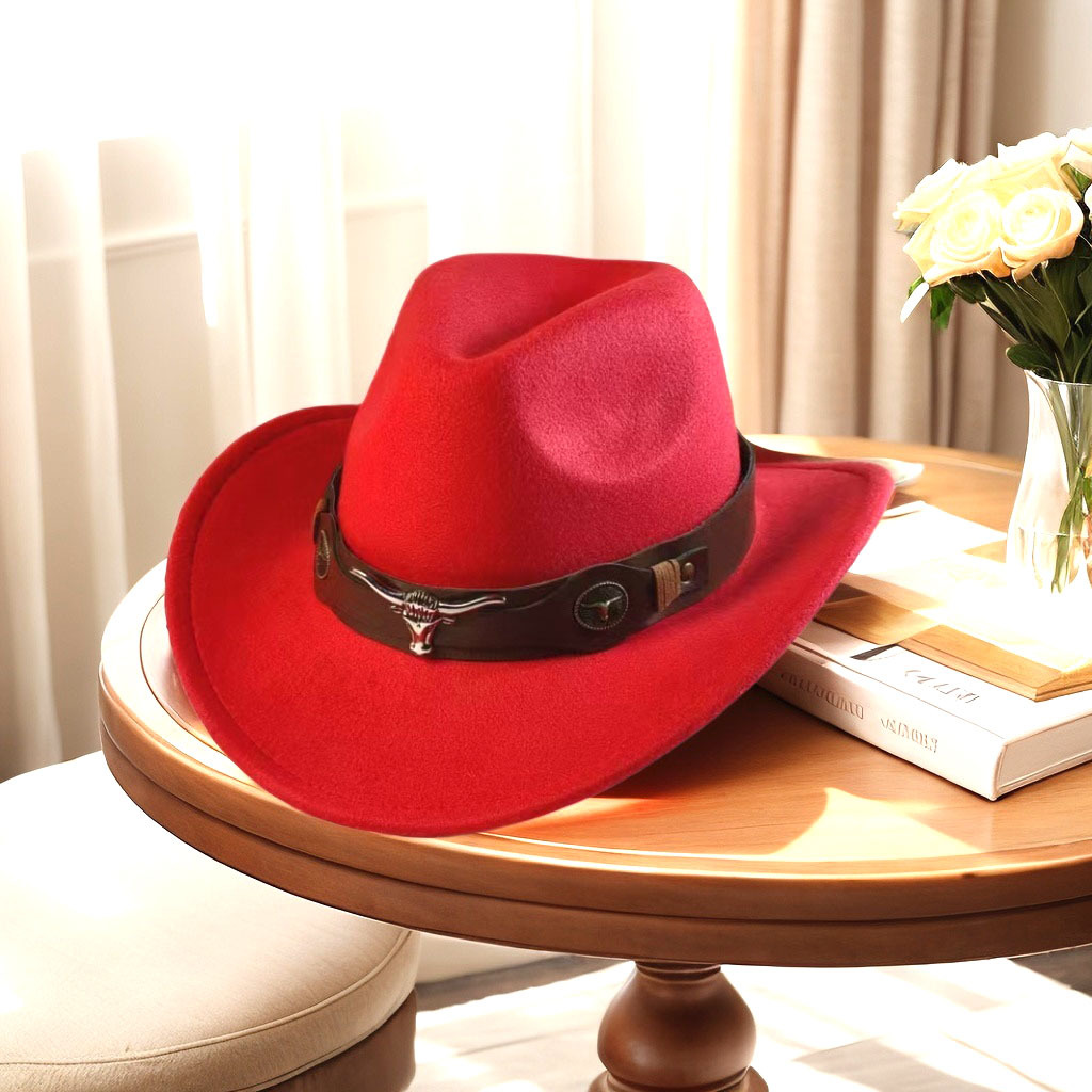 아마존 핫 톱 모자 민족 스타일 암소 라벨 웨스턴 데님 재즈 모자 롤업 승마 모자 모직 펠트 모자