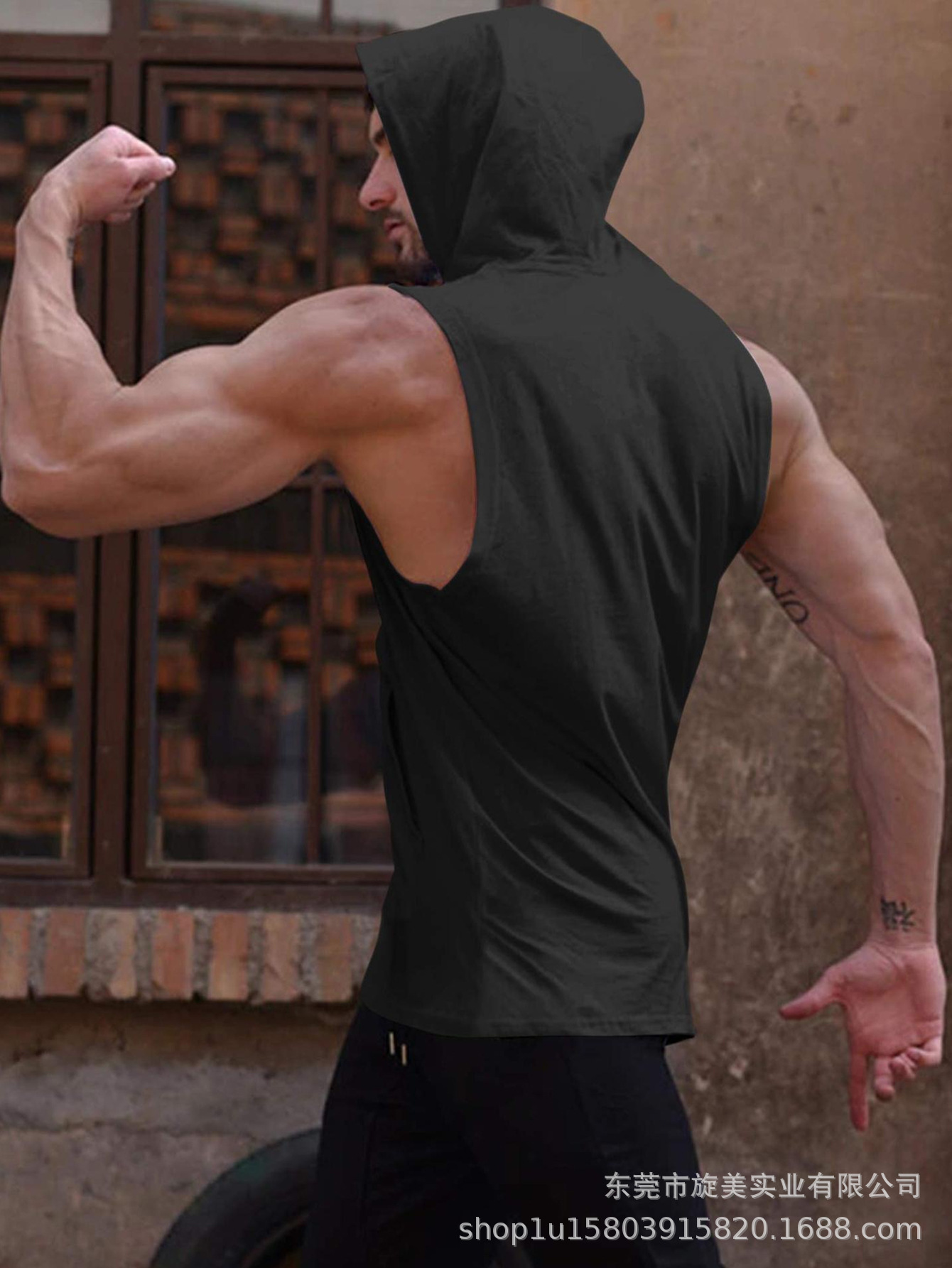국경 간 유럽 및 미국 사이즈 스팟 압축 속건성 통기성 경량 땀 흡수 트레이닝 피트니스 타이트 스포츠 후드 조끼스토어 가기