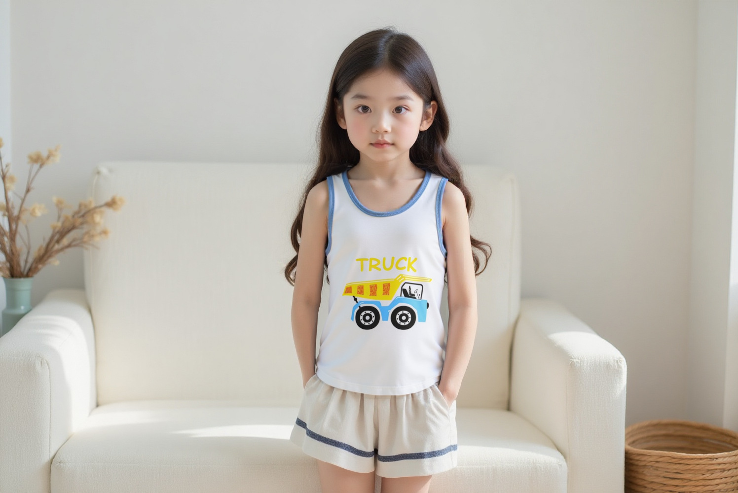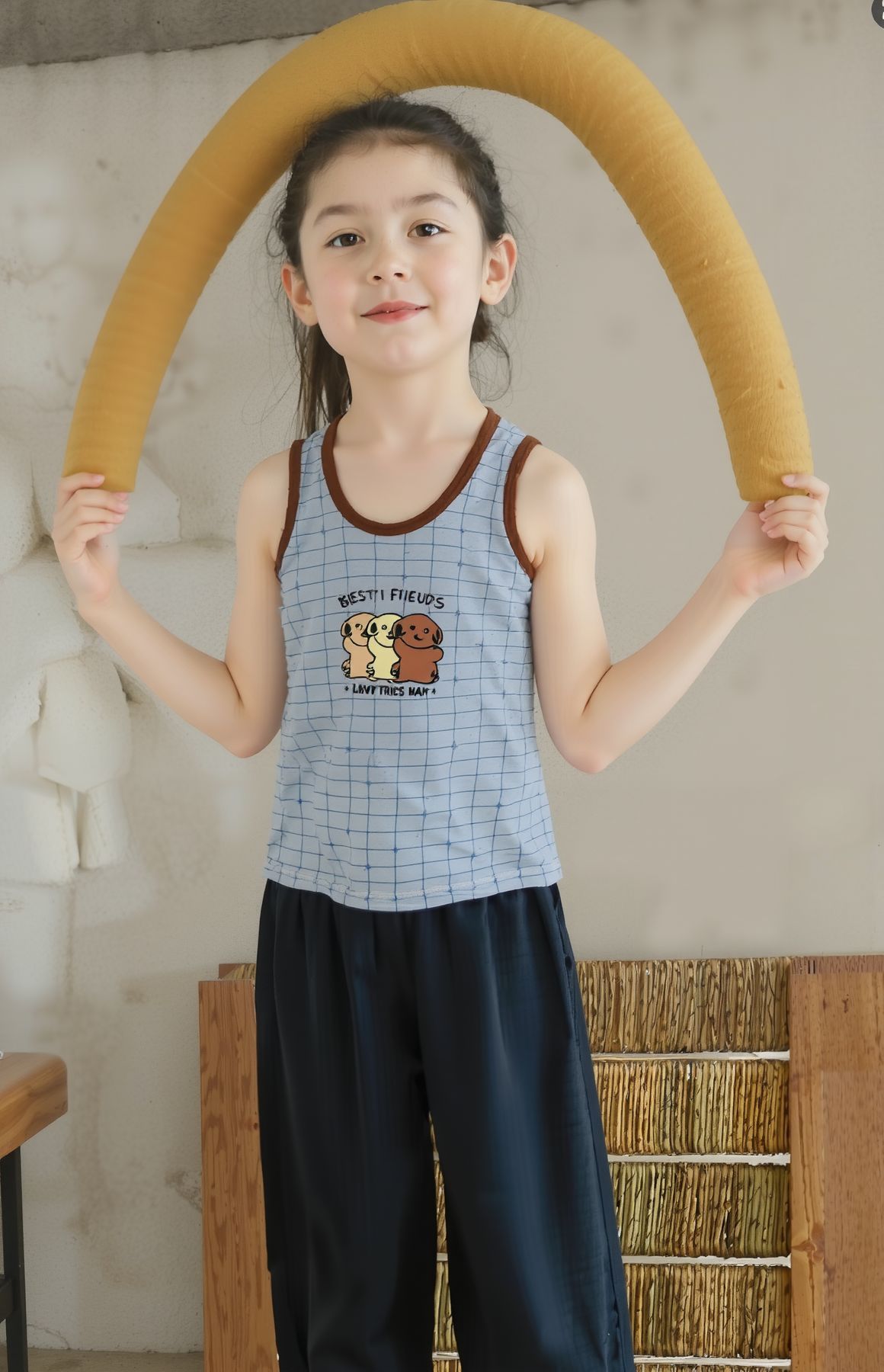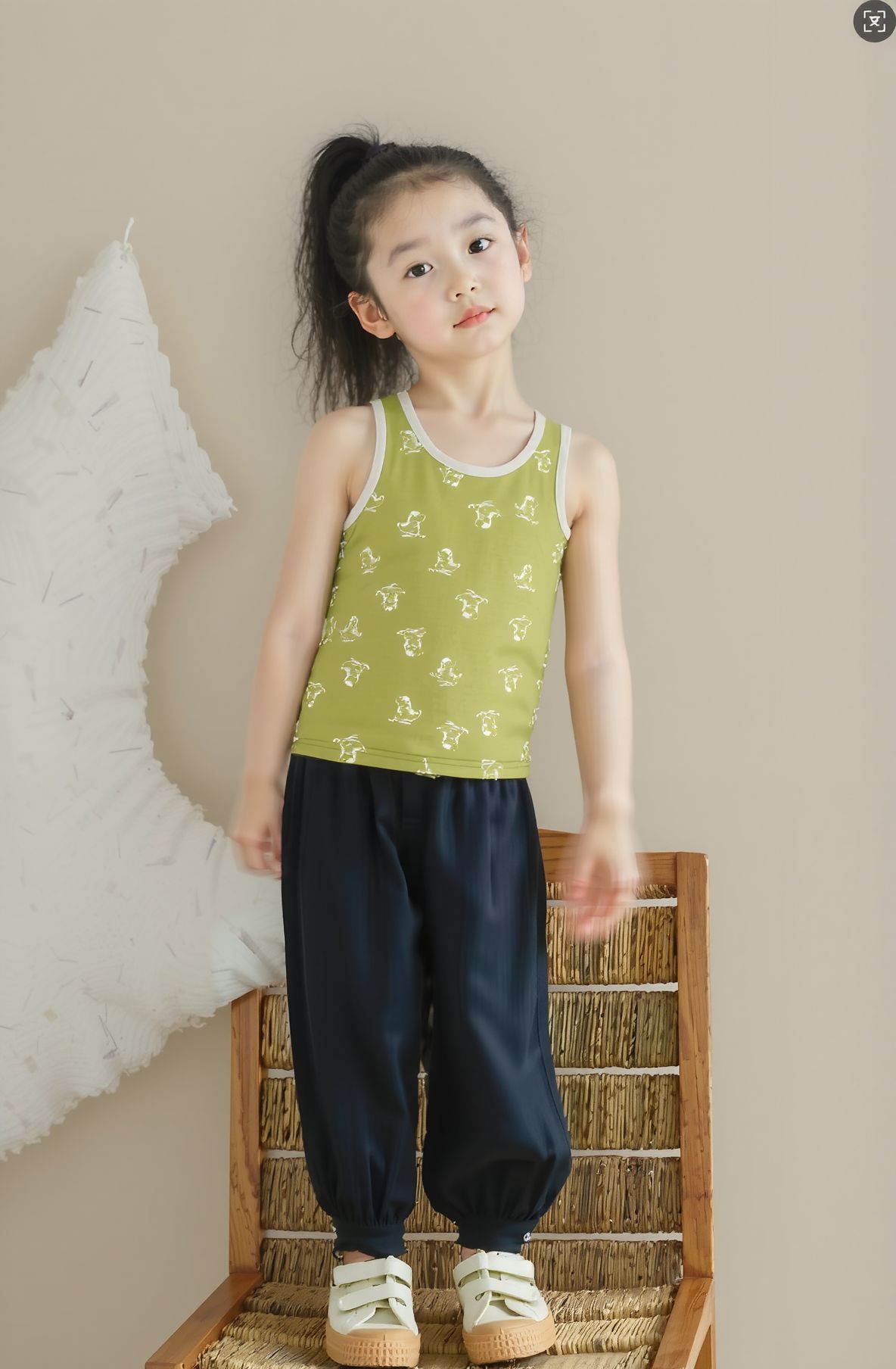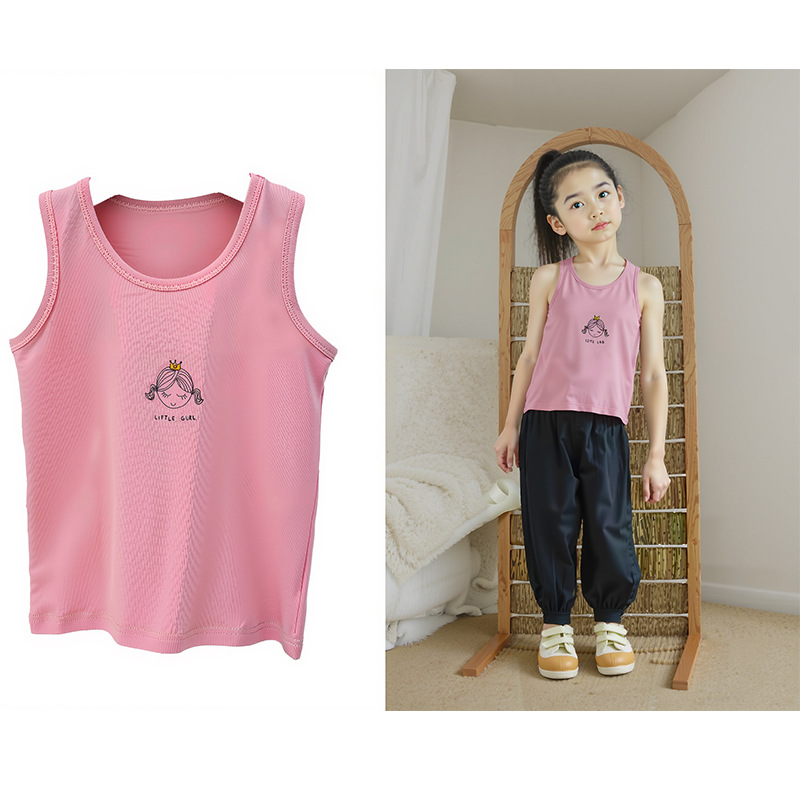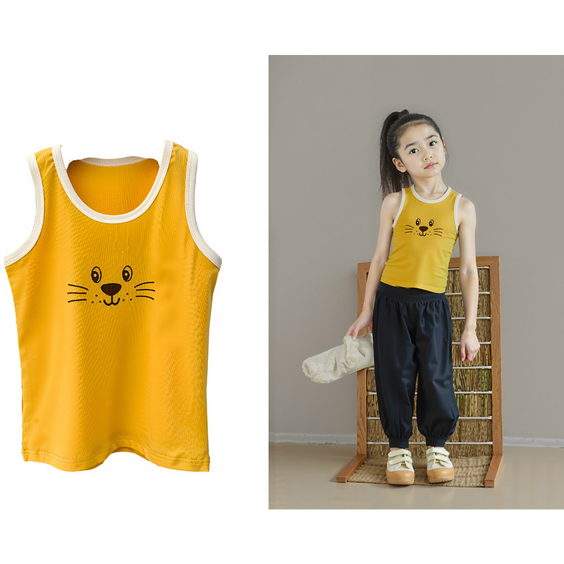 여름 2025 어린이 라이크라 코튼 I 자형 조끼 멀티 컬러 만화 인쇄 단편베이스 탑 소년 소녀