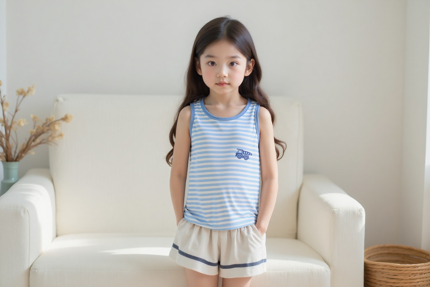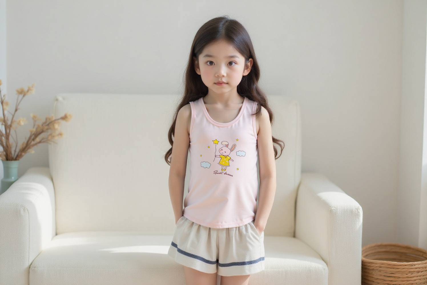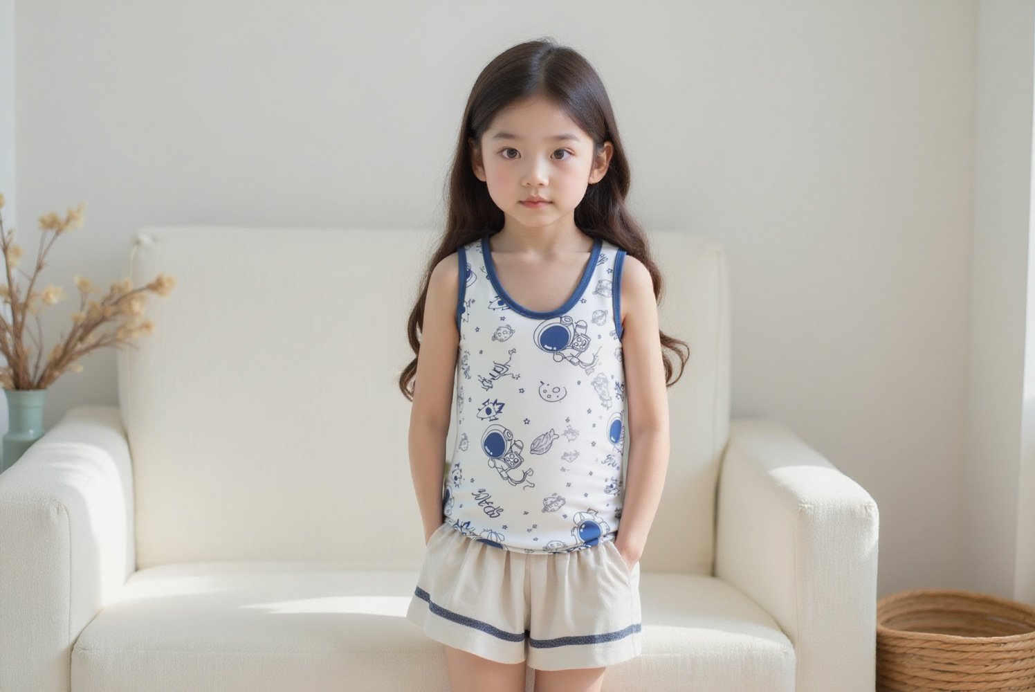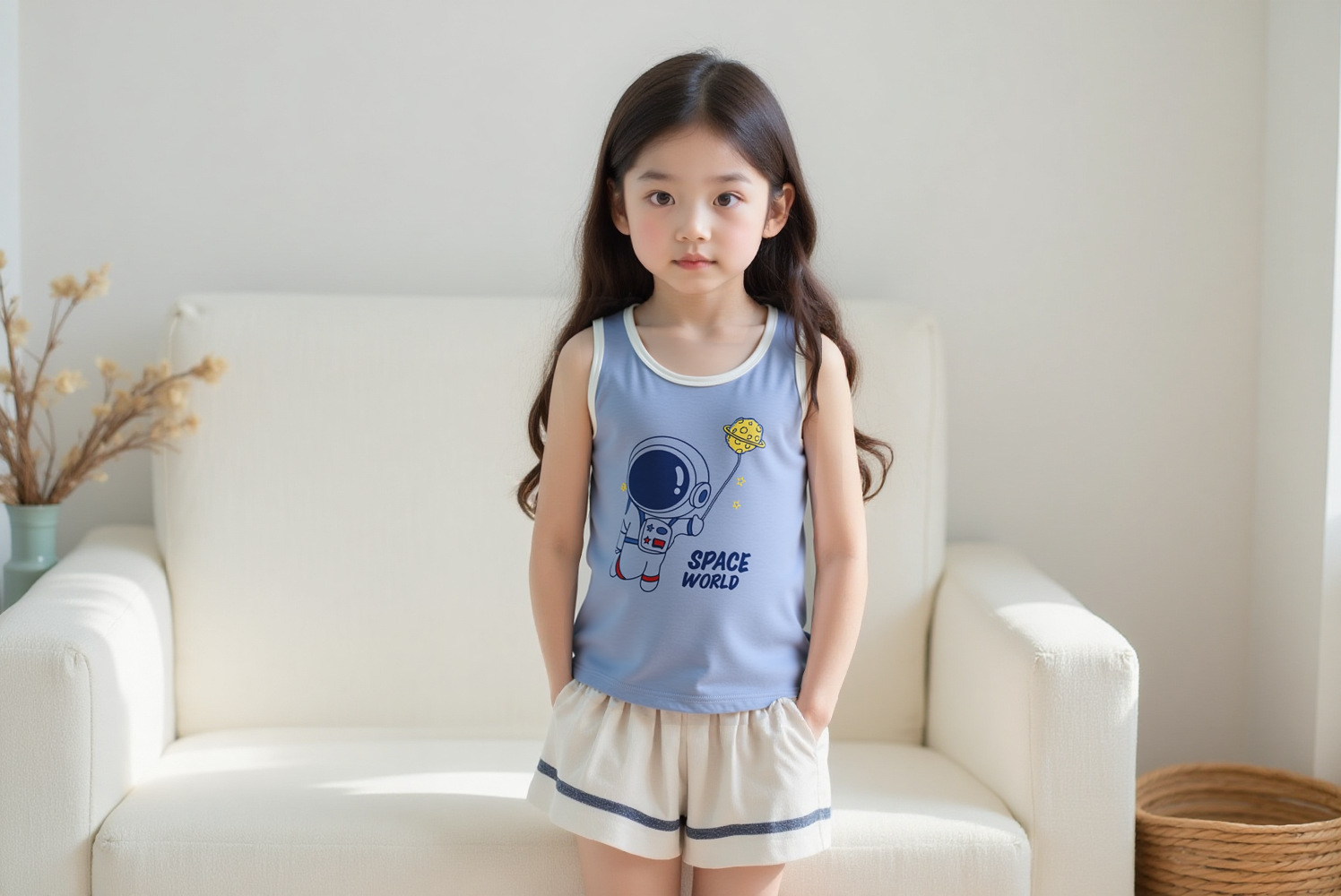여름 2025 어린이 라이크라 코튼 I 자형 조끼 멀티 컬러 만화 인쇄 단편베이스 탑 소년 소녀