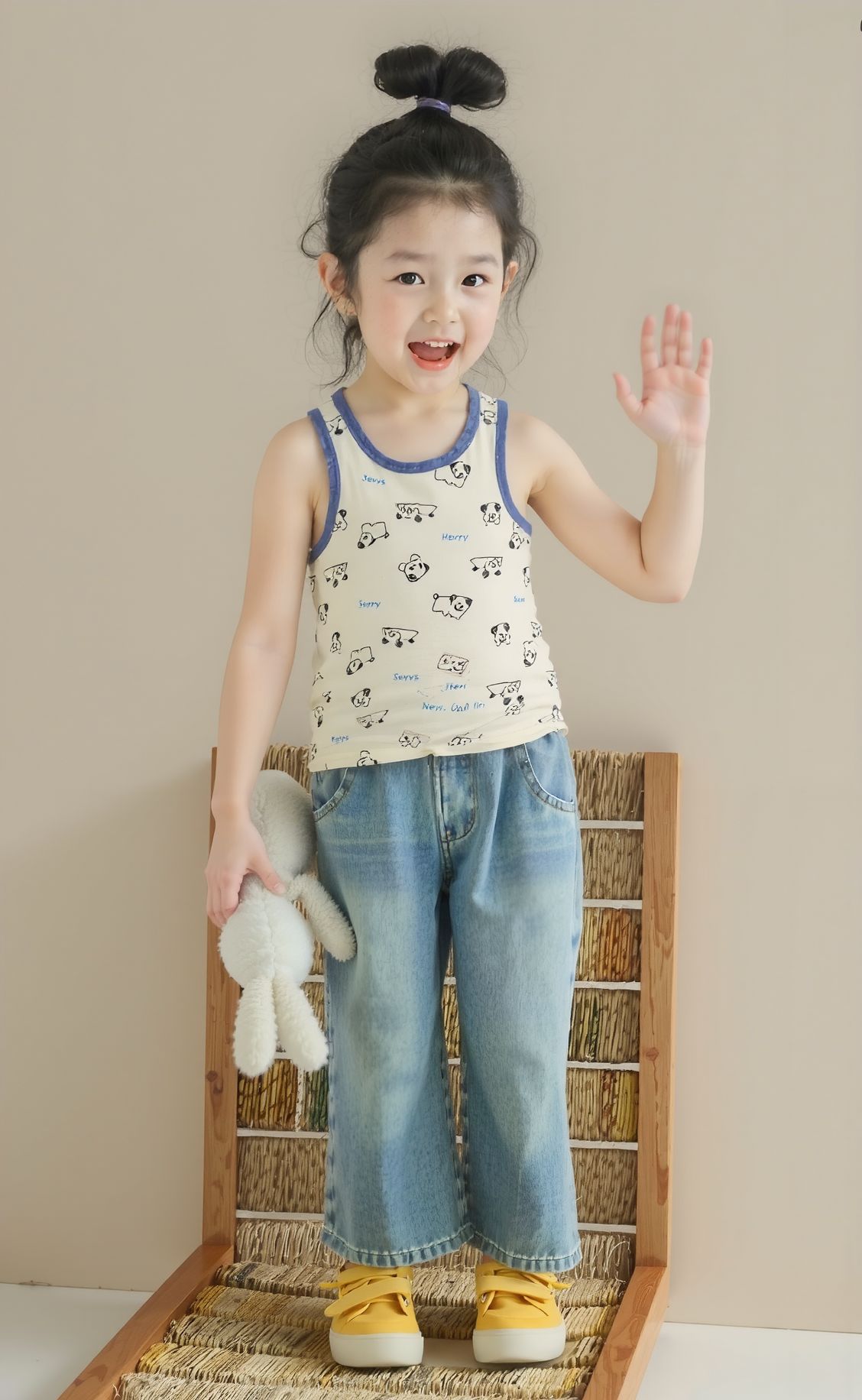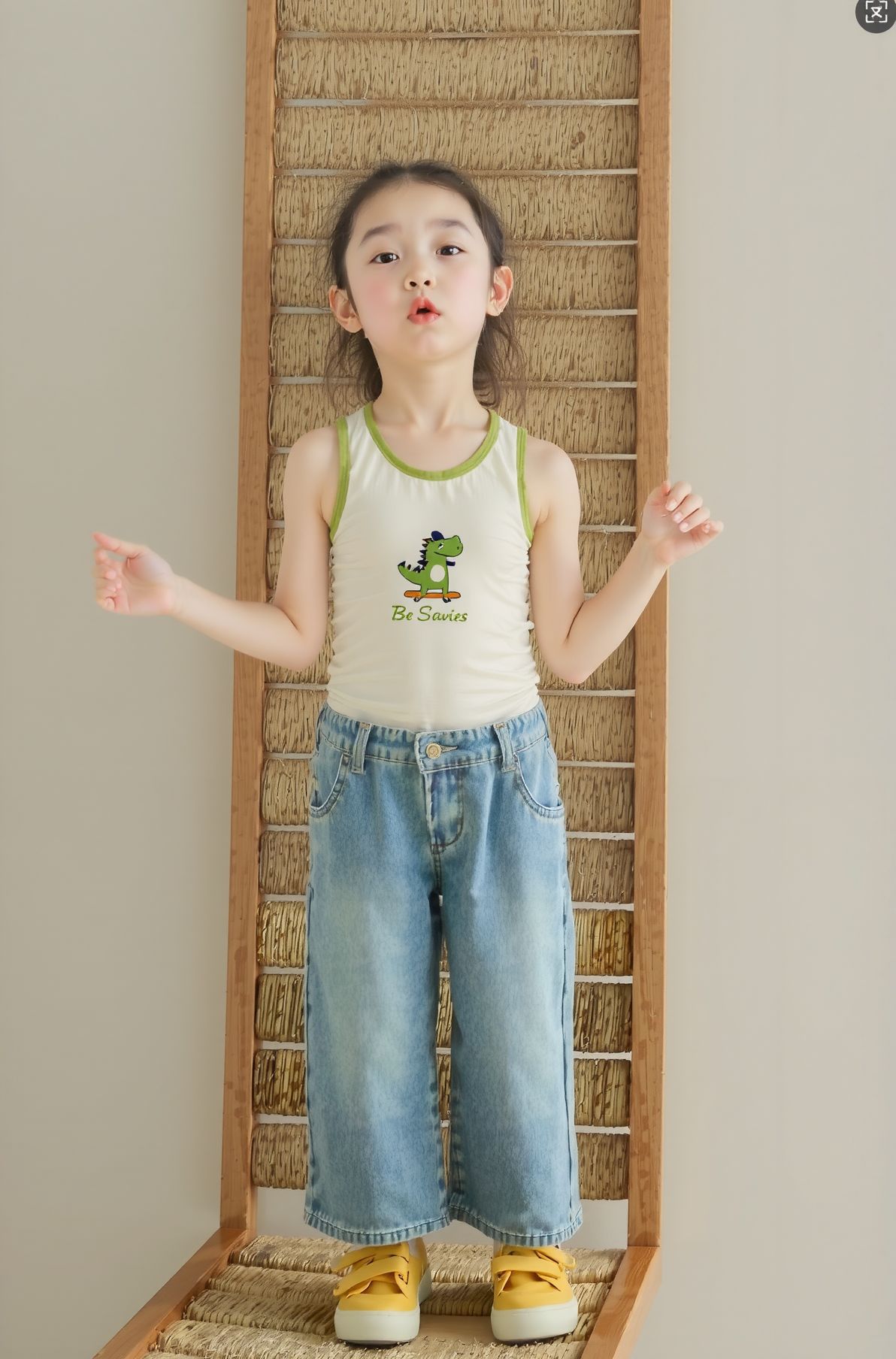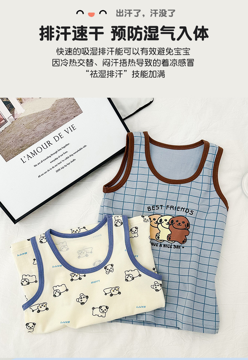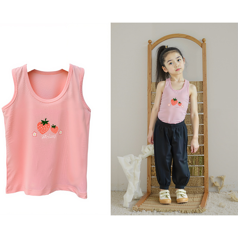 여름 2025 어린이 라이크라 코튼 I 자형 조끼 멀티 컬러 만화 인쇄 단편베이스 탑 소년 소녀스토어 가기