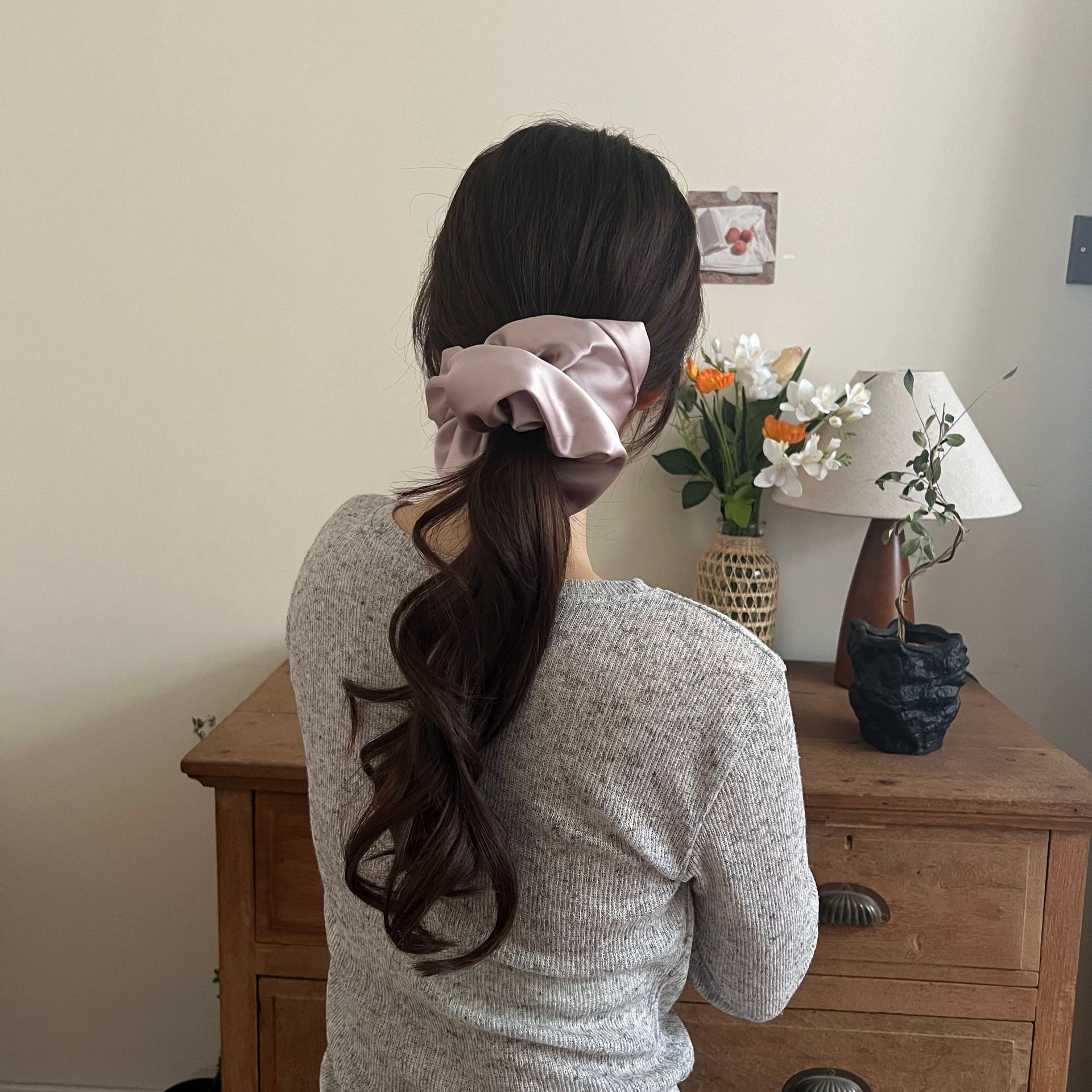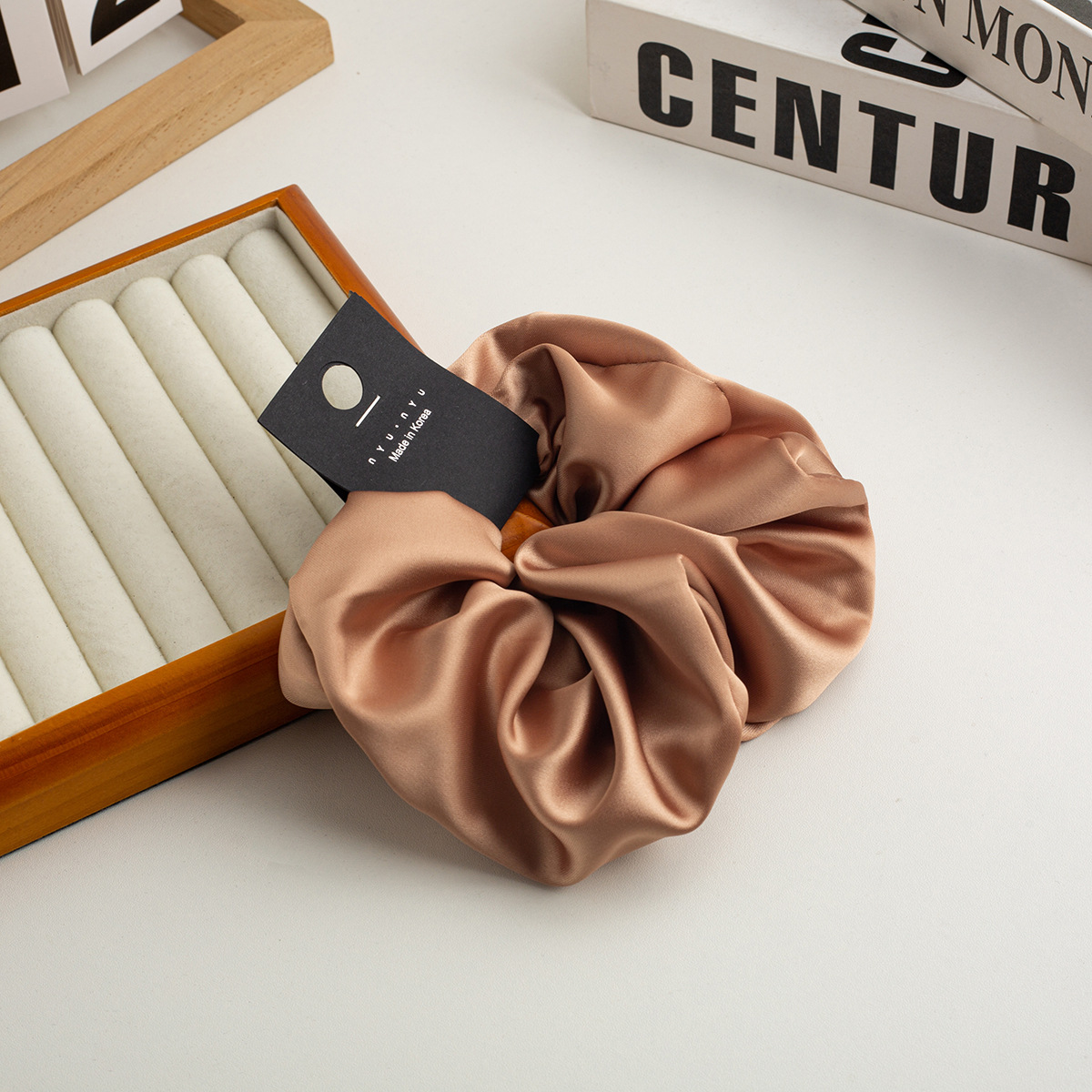 • 고급 솔리드 컬러 새틴 소장 머리끈 [라이트 브라운]