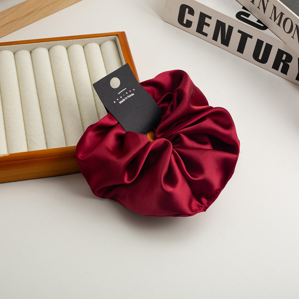 • 고급 솔리드 컬러 새틴 대장 머리끈 [버건디 레드]
