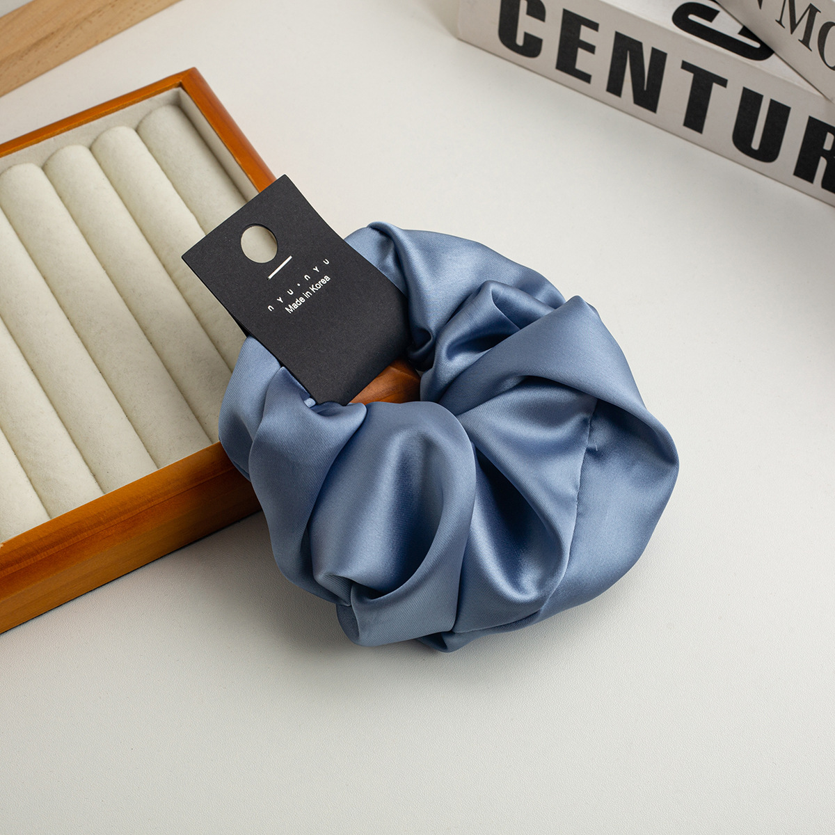 • 고급 솔리드 컬러 새틴 미디엄 사이즈 소시지 머리끈 [헤이즈 블루]