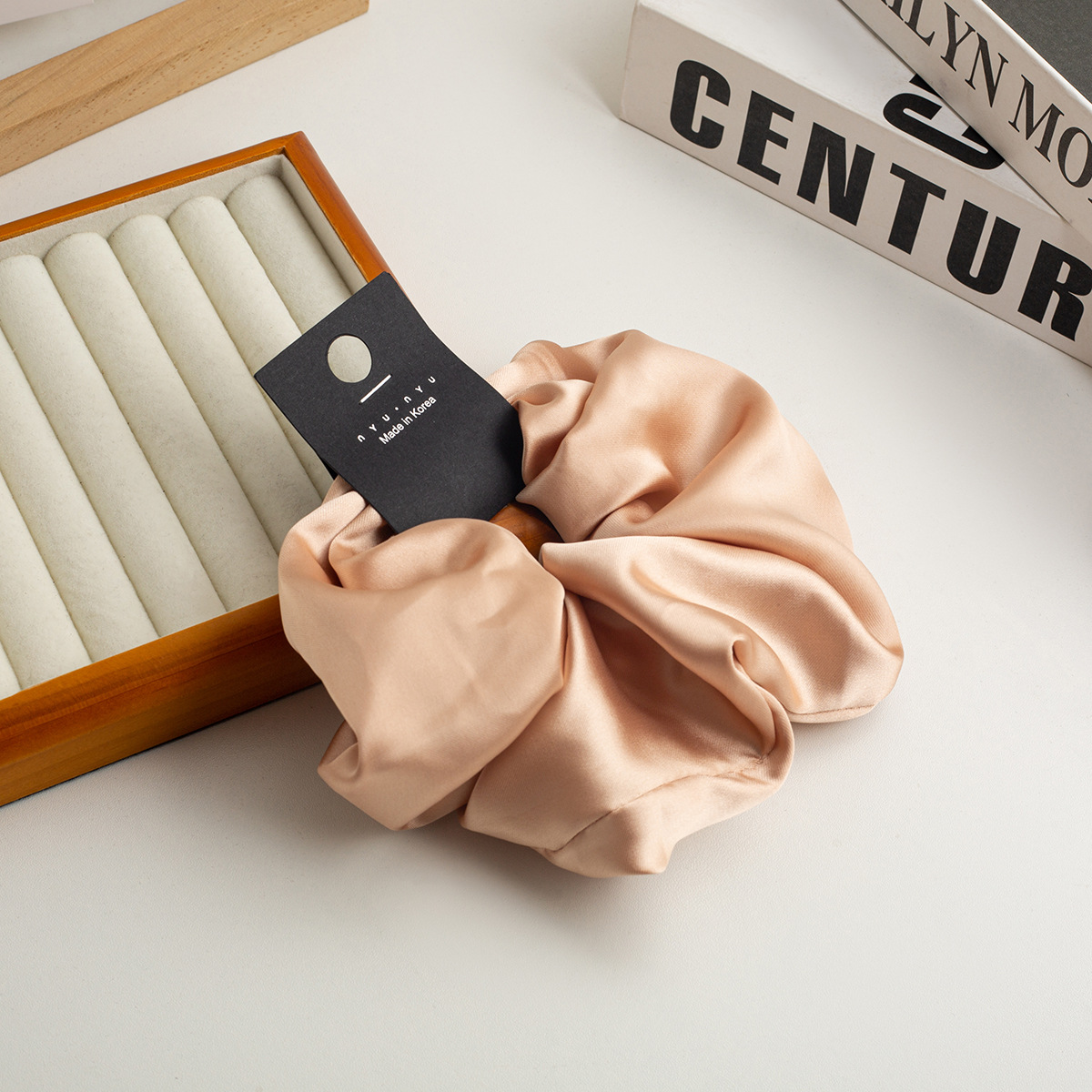 • 베이지 새틴 주름 장식 대장 머리끈#52
