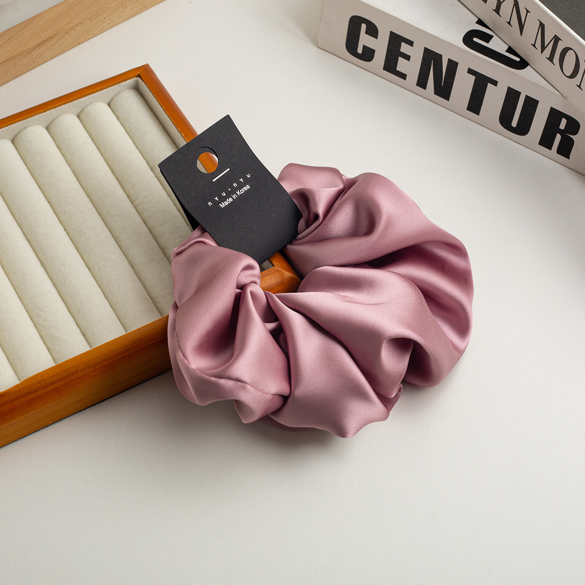 • 고급 솔리드 컬러 새틴 미디엄 사이즈 소시지 머리끈 [팥소 핑크]