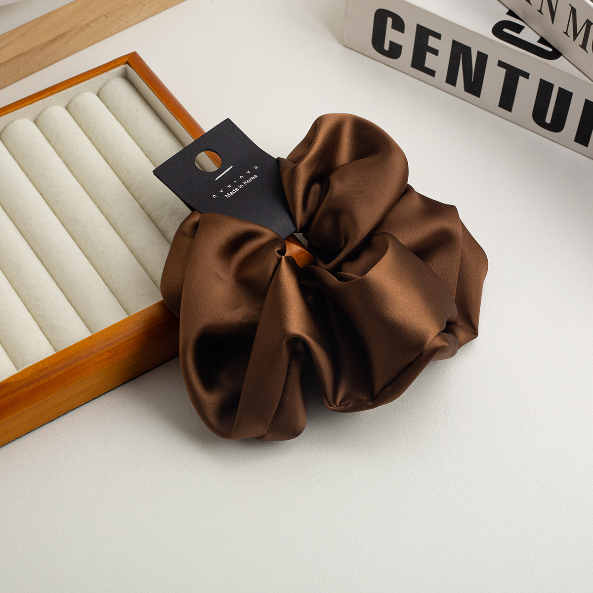 • 고급 솔리드 컬러 새틴 대장 머리끈 [브라운]