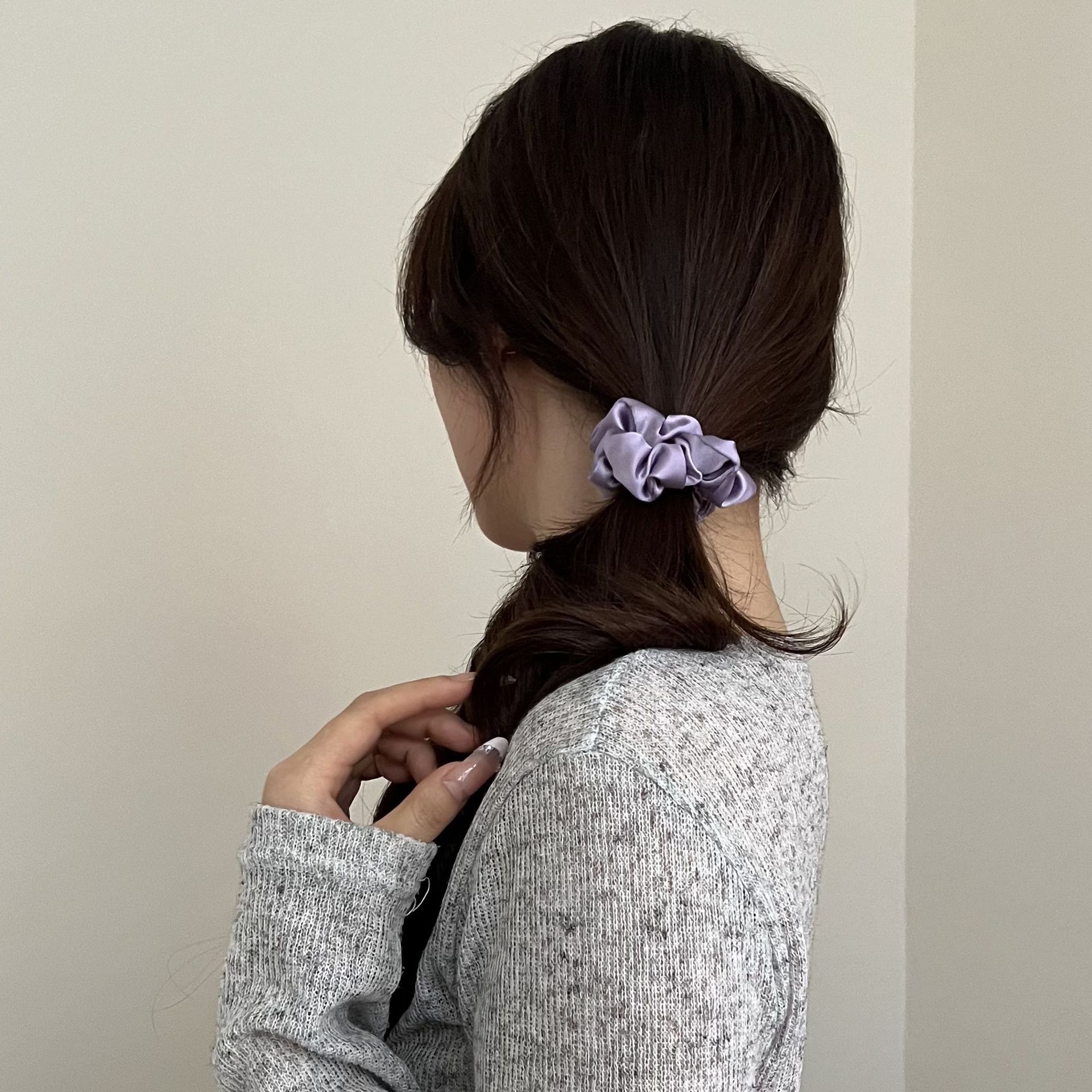 • 고급 솔리드 컬러 새틴 대장 머리끈 [타로 퍼플]