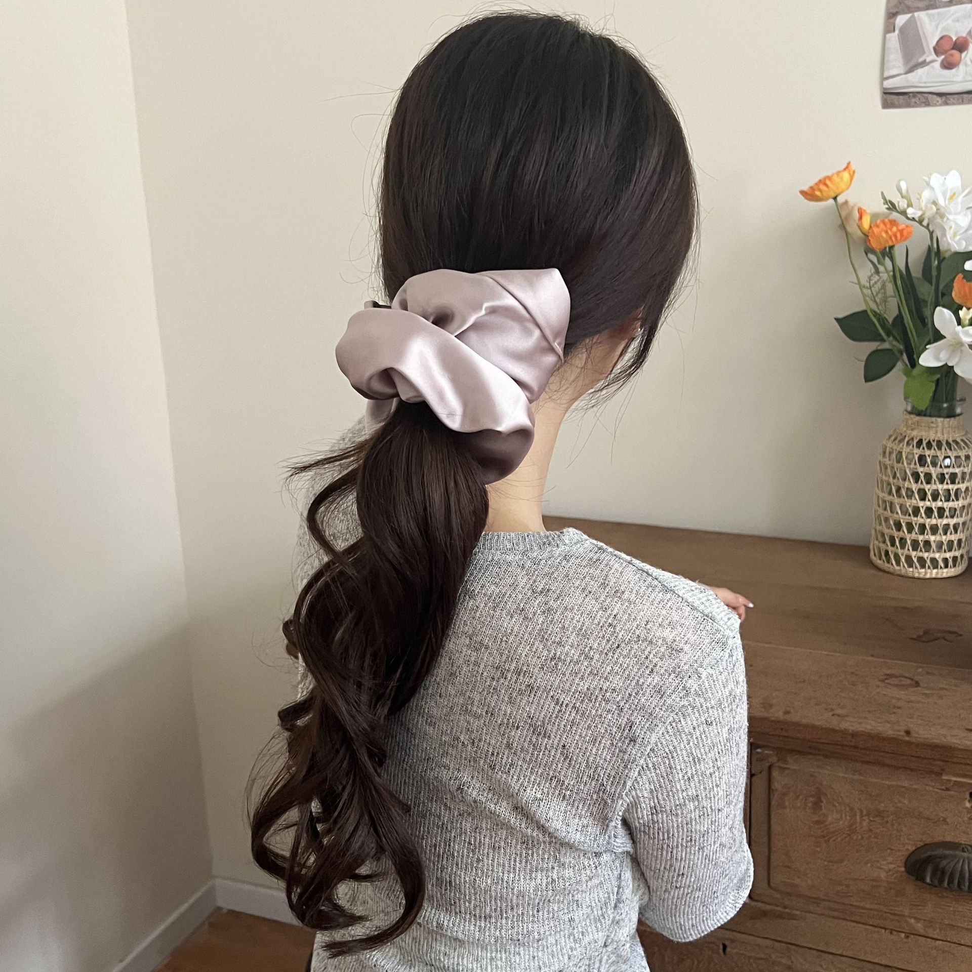 • 고급 솔리드 컬러 새틴 소장 머리끈 [브라운]
