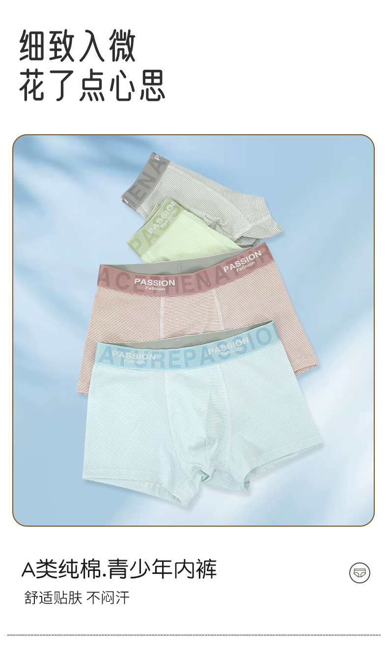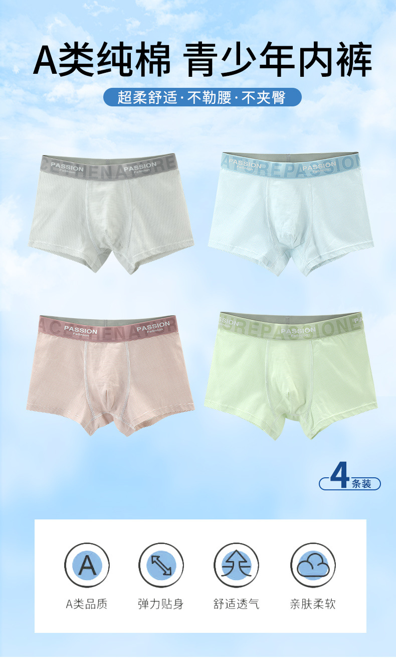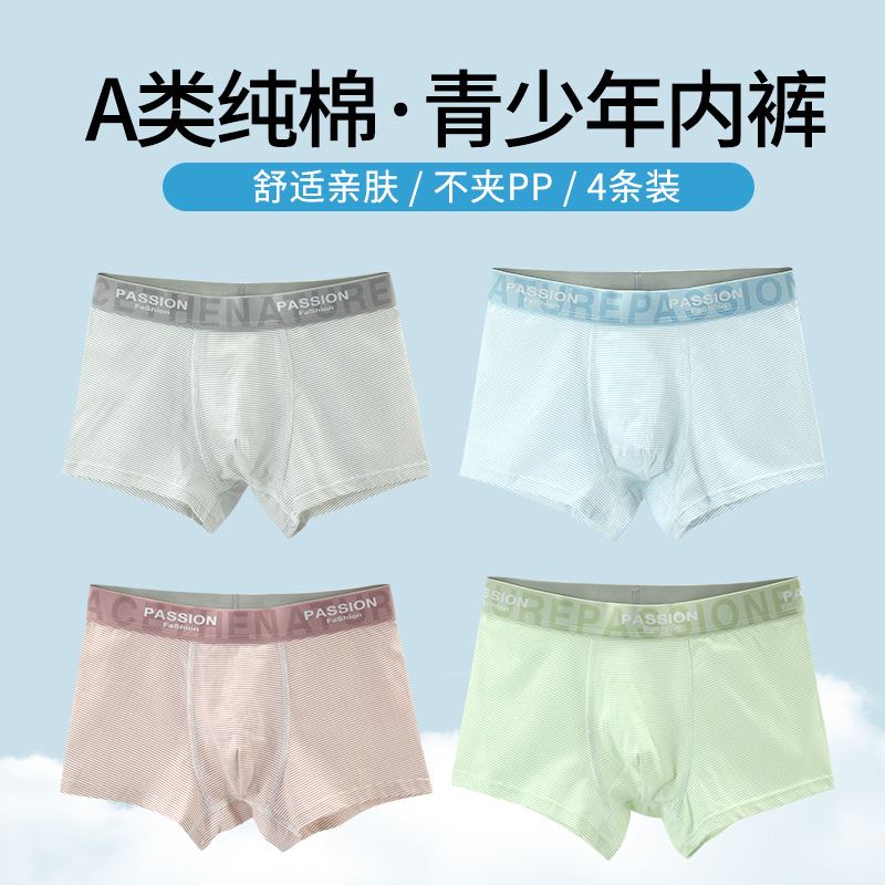 남아용 속옷, 순면 사각팬티, 학생용, 큰아동용, 청소년용, 남아용 사각팬티, 아동용 반바지, 순면, 카테고리 A