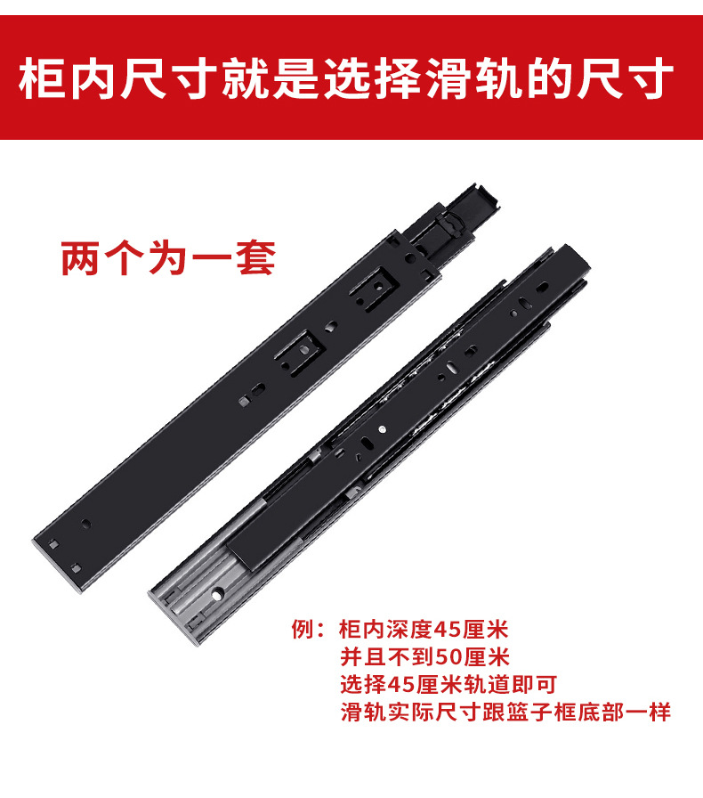• [스테인리스 스틸] 조용한 긴 45 슬라이드 레일 한 쌍 [나사 + 케이블 타이 포함]