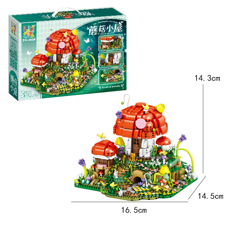 Leji 마이크로 입자 빌딩 블록 장난감 diy 스트리트 뷰 663A 버섯 오두막 창조적 인 장난감 장식품 도매 세대스토어 가기