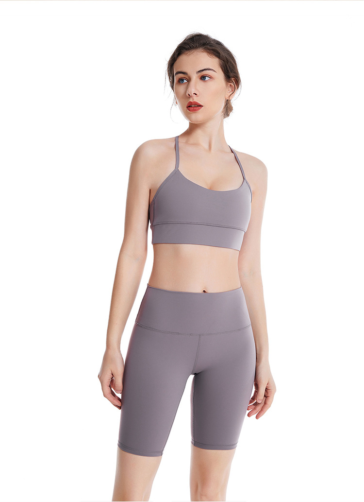 봄 여름 누드 스파게티 스트랩 피트니스 브라, 심플하고 아름다운 등, 섹시한 사이클링 팬츠, 런닝 슬링, 요가 조끼 속옷