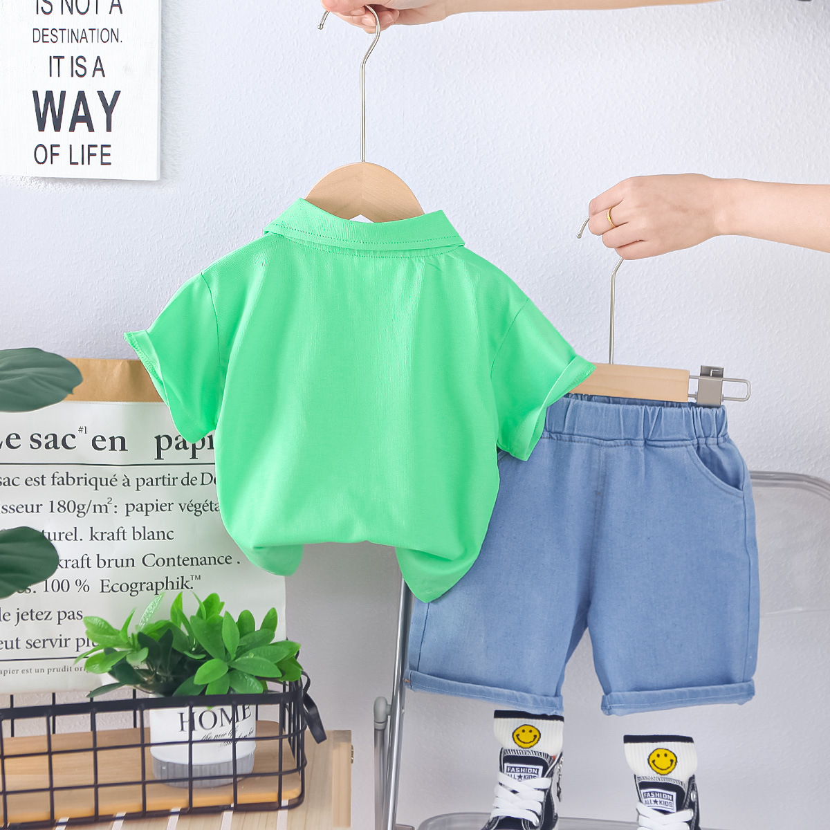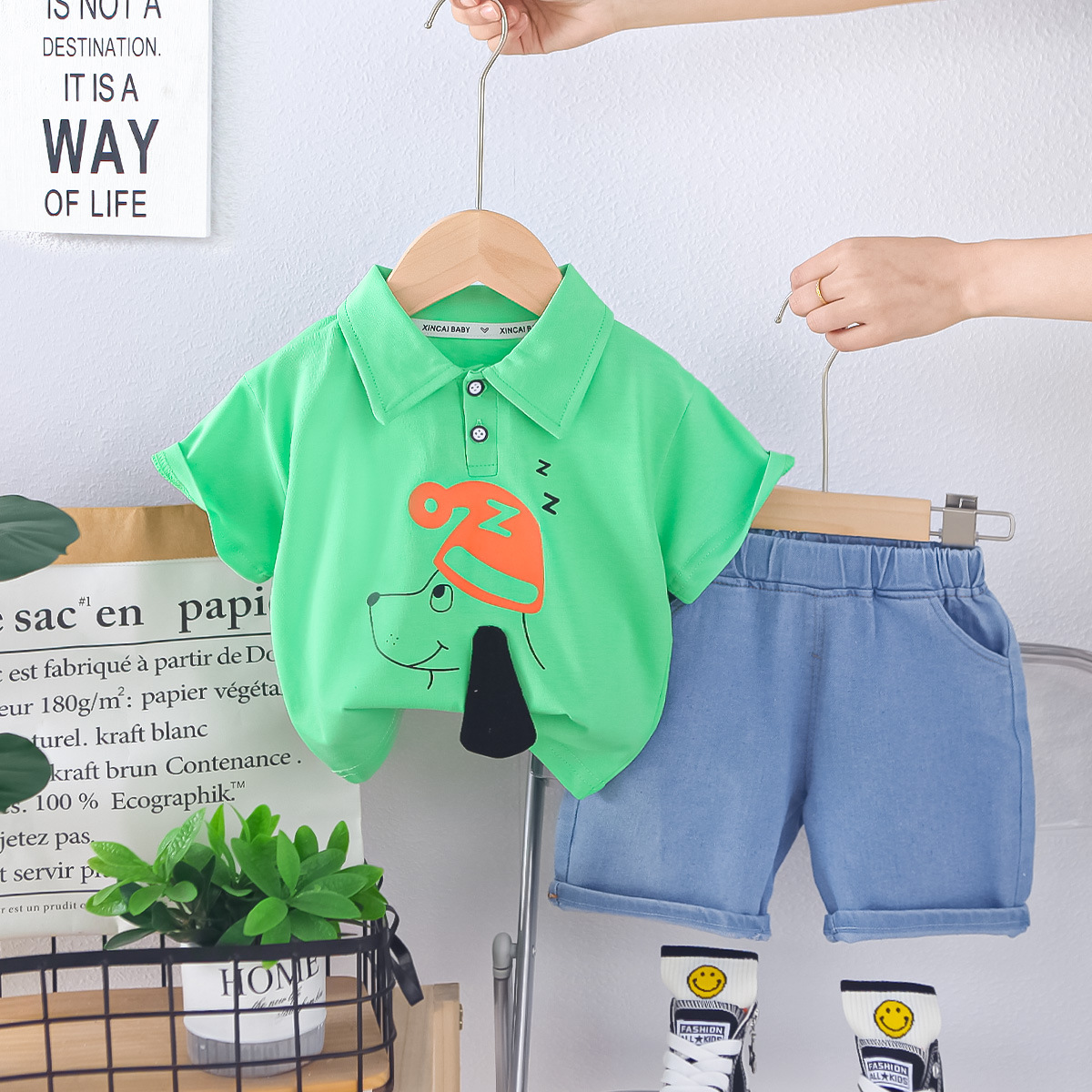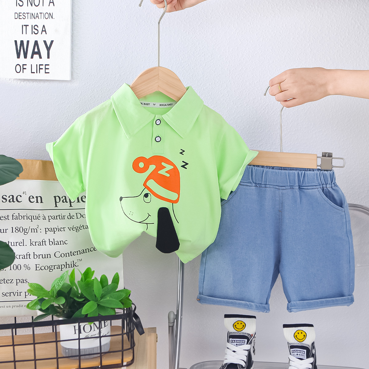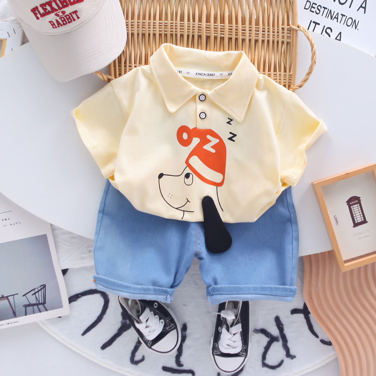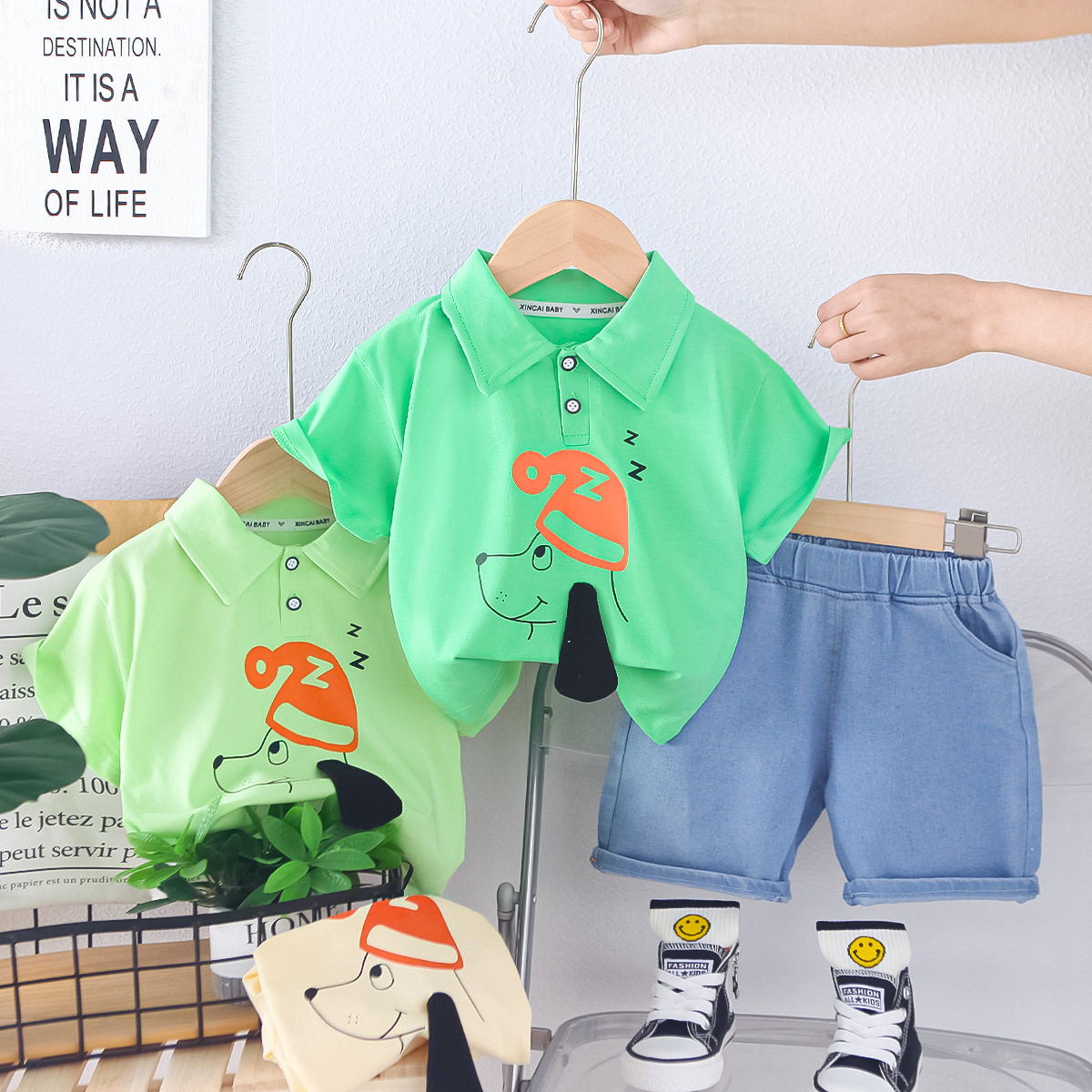베이비 티셔츠 폴로 셔츠 여름 신작 반팔 정장 소년 반팔 청바지 투피스 세트스토어 가기