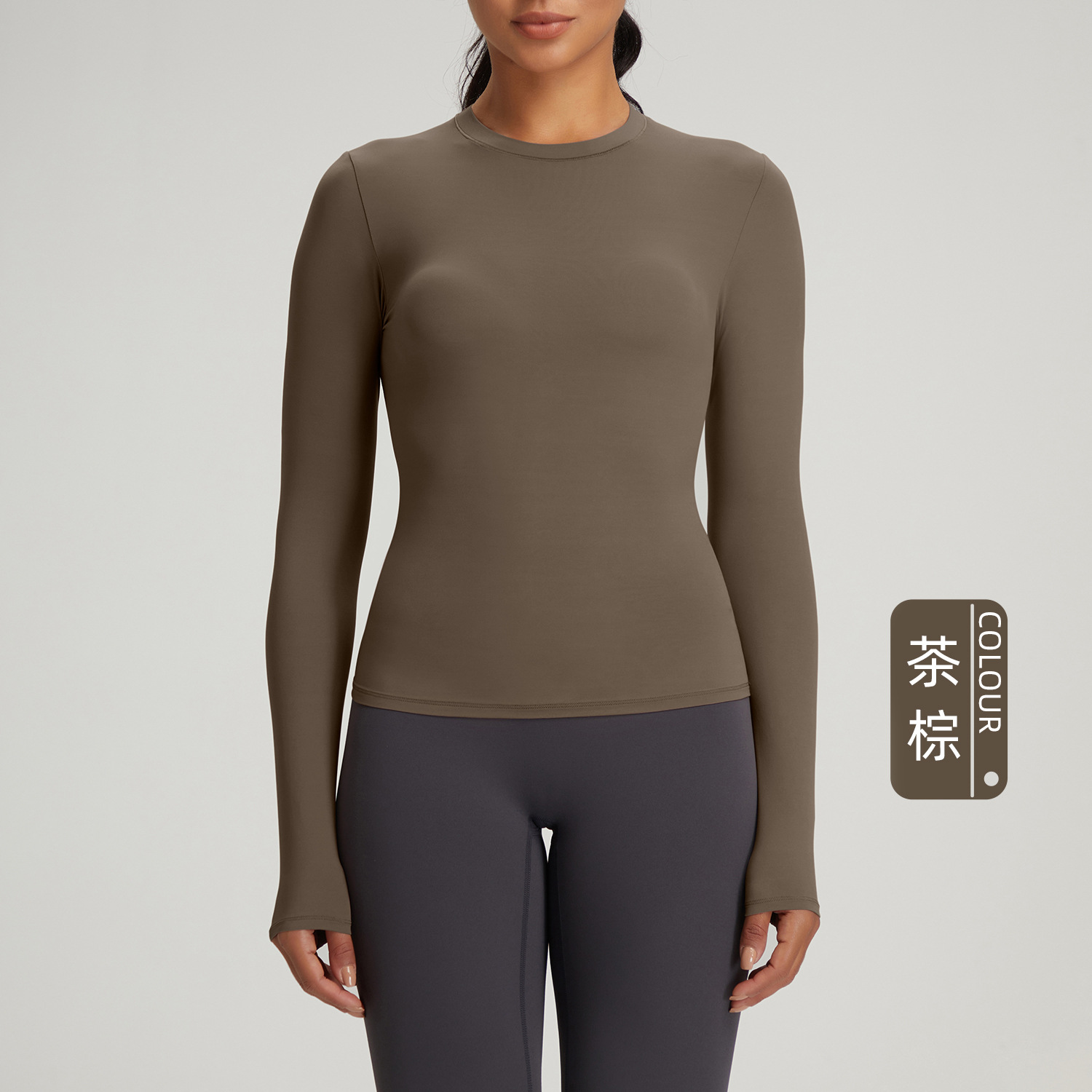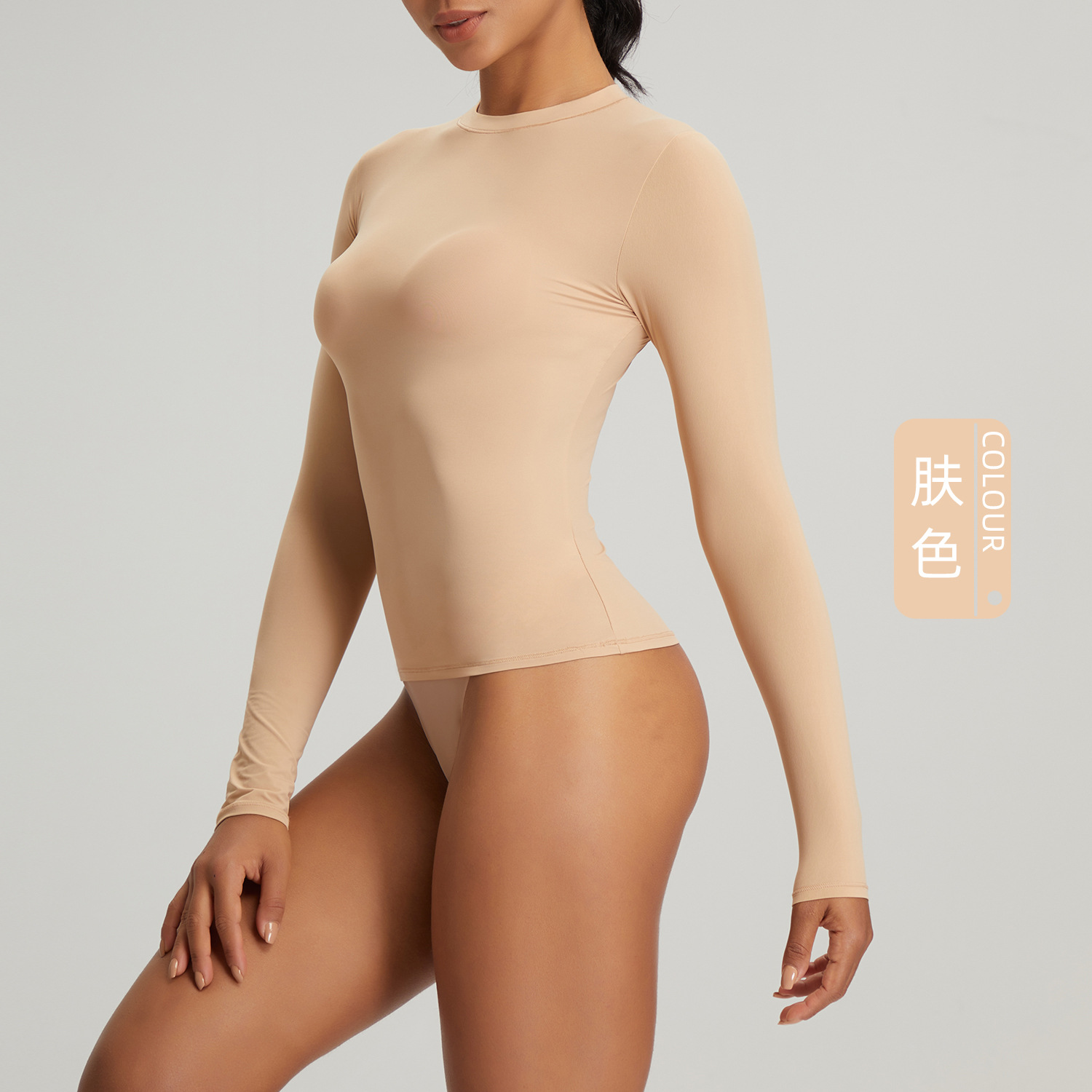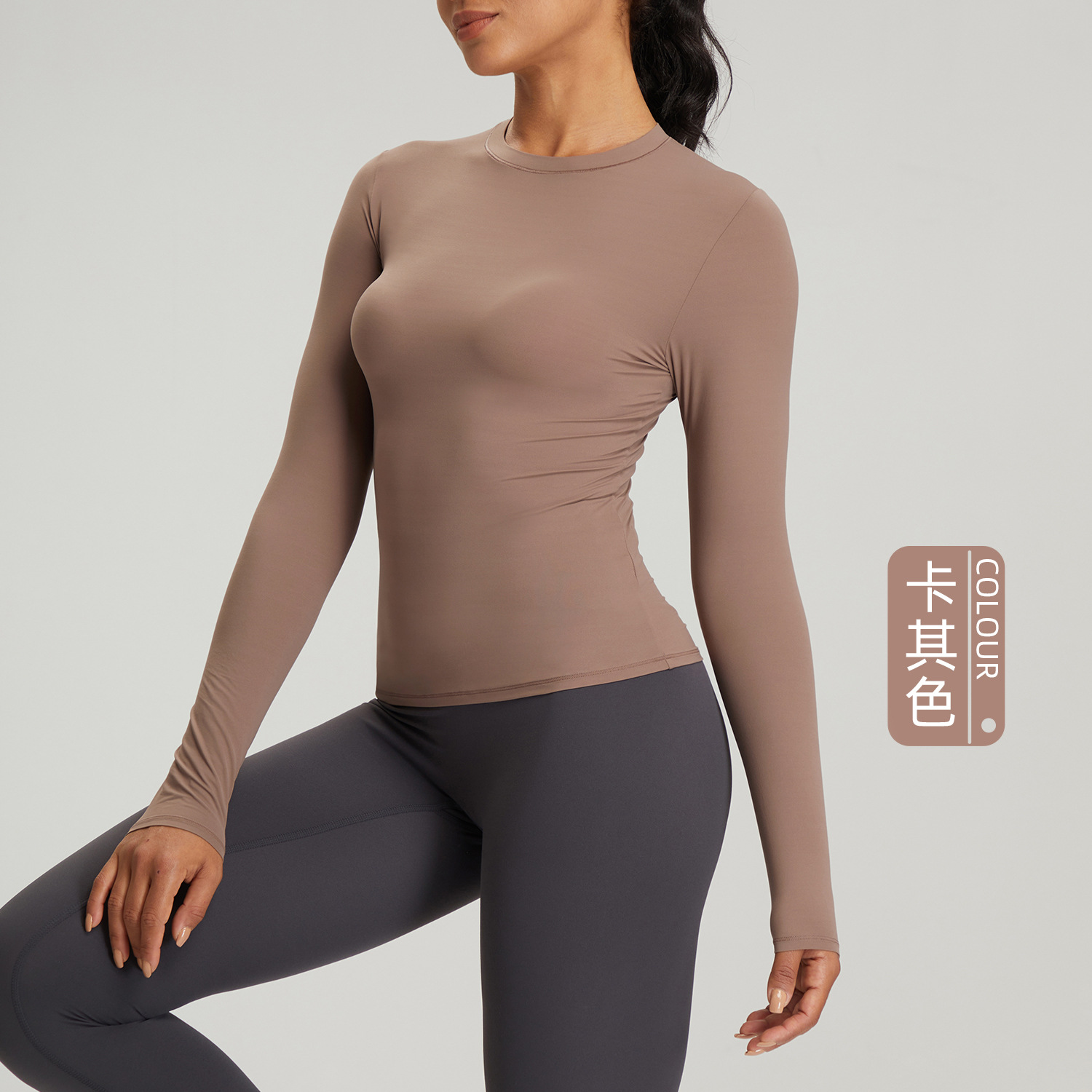 Kardashian Same Style 요가 세트 여성용 벌거 벗은 높은 탄성 얇은 통기성 피트니스 티셔츠 스포츠 러닝 롱 슬리브 탑