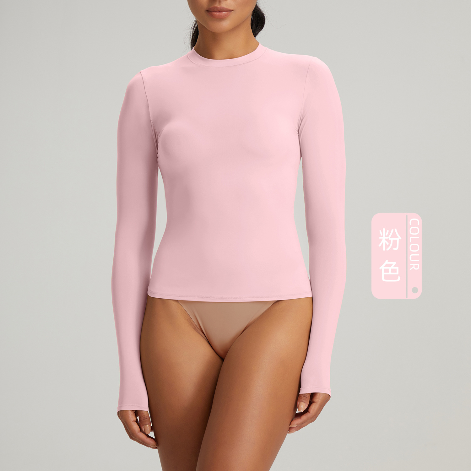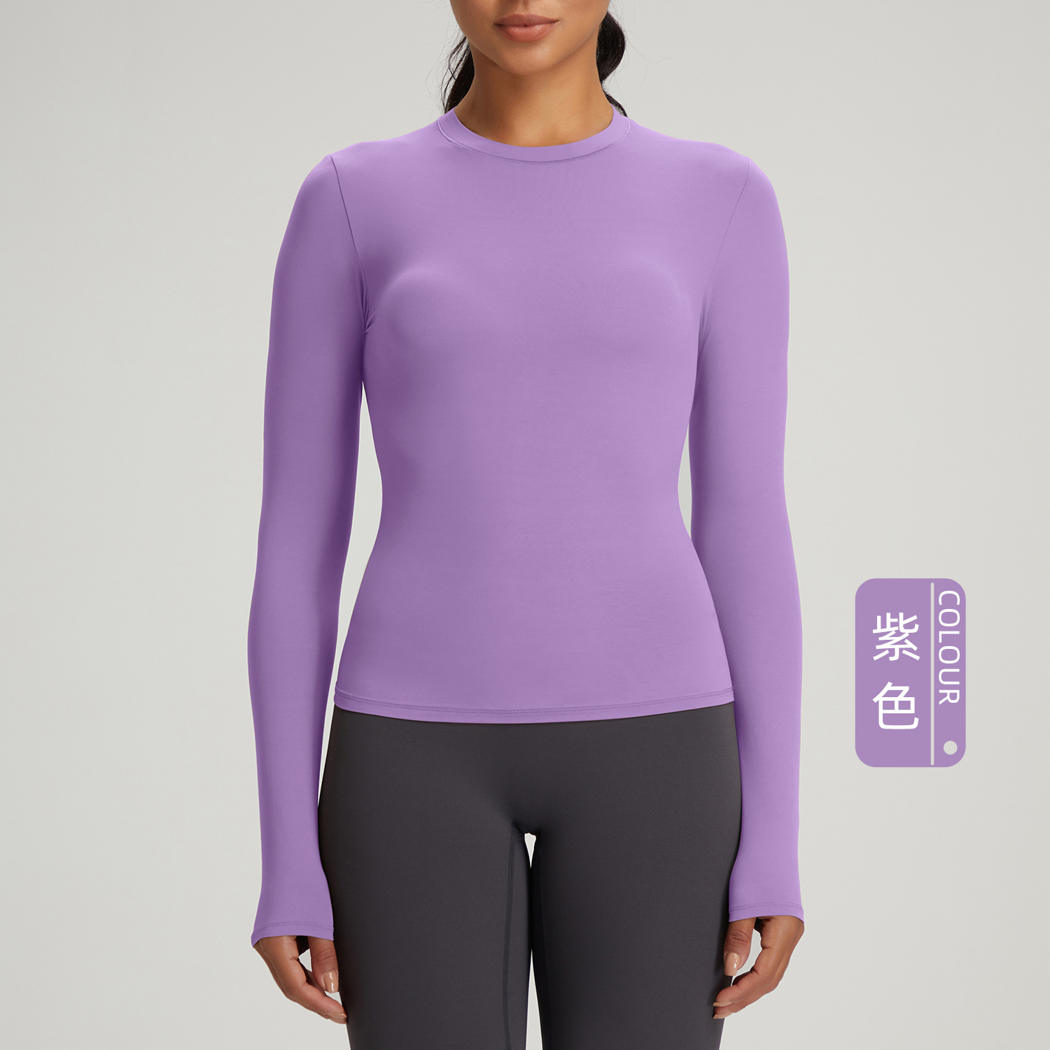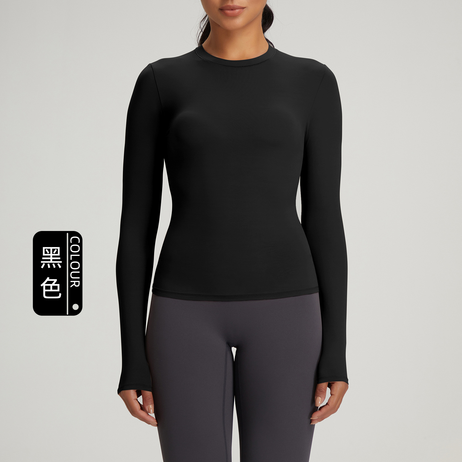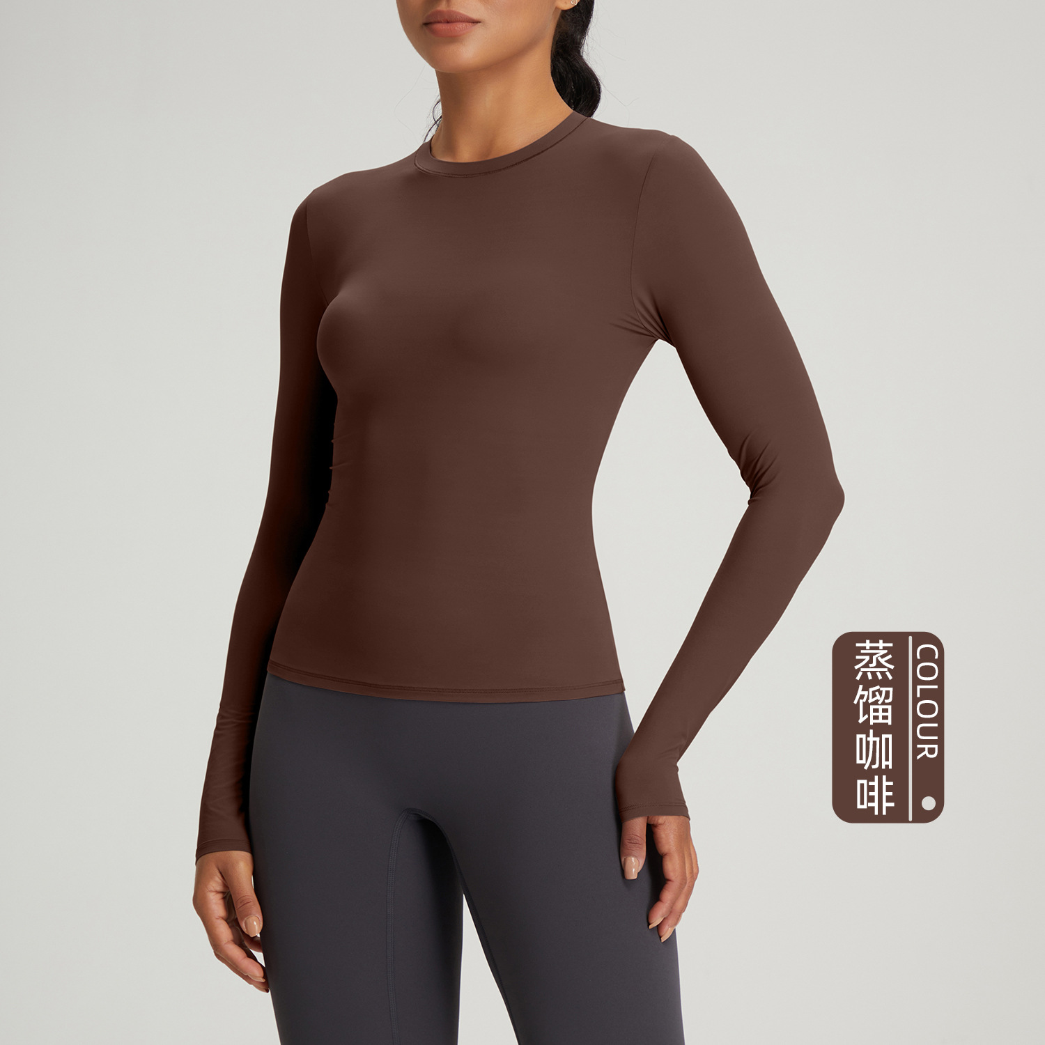 Kardashian Same Style 요가 세트 여성용 벌거 벗은 높은 탄성 얇은 통기성 피트니스 티셔츠 스포츠 러닝 롱 슬리브 탑