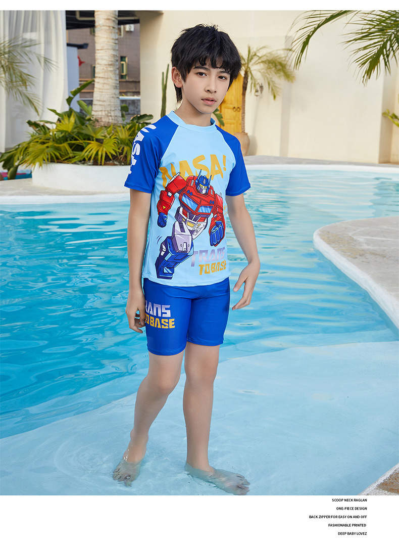 수영 모자 세트 주니어가있는 25 명의 신입생 남학생 수영복 옵티머스 프라임 분할 짧은 소매 수영 트렁크스토어 가기