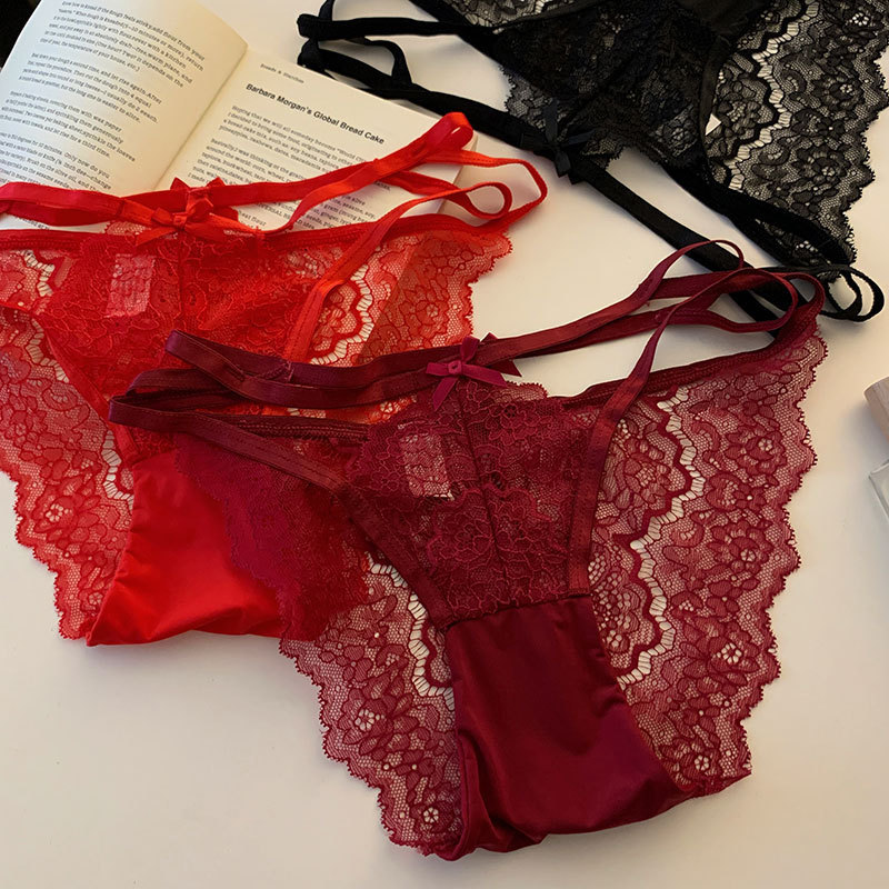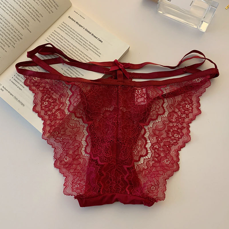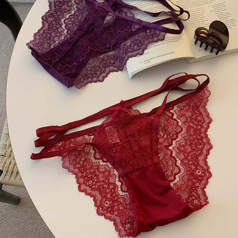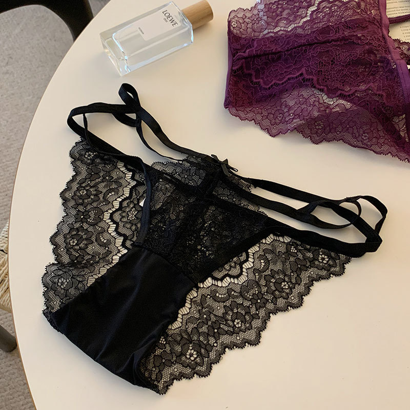 여성을위한 섹시한 프랑스 섹시한 레이스 속옷 순수한 욕망 새로운 스타일 세련된 중공 복숭아 엉덩이 통기성 팬티