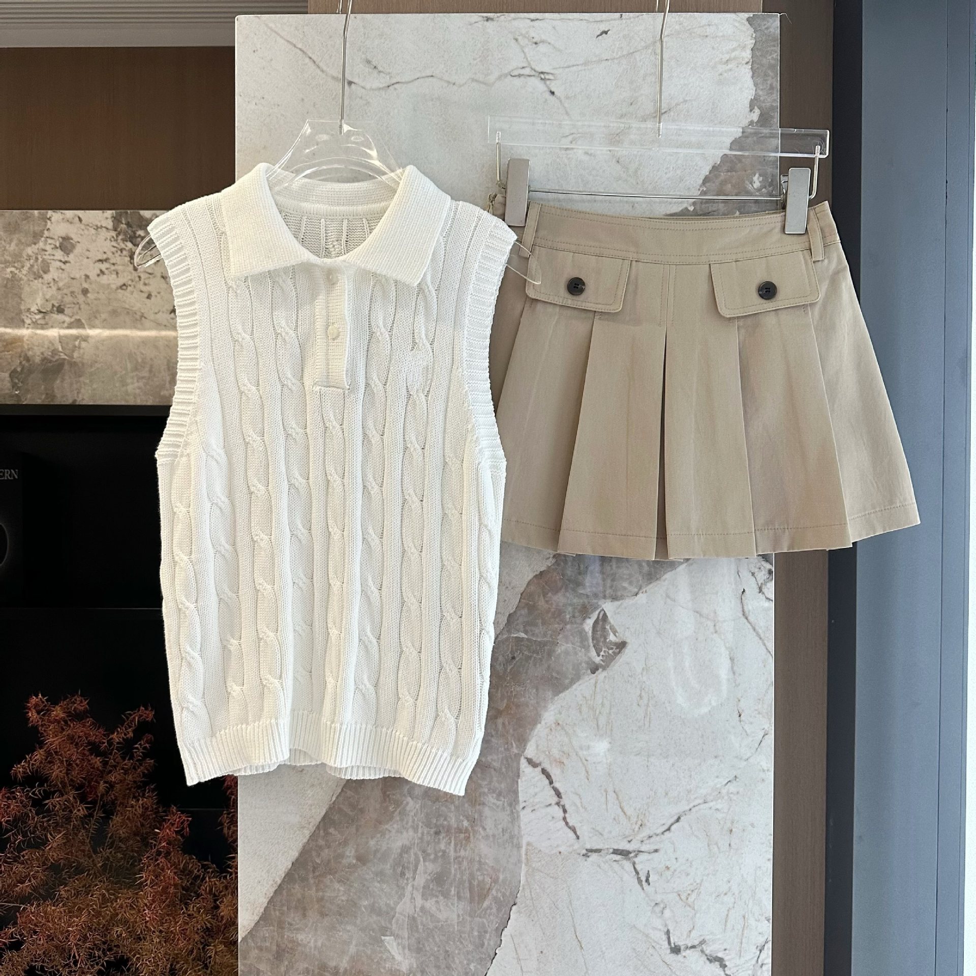 • 카키색 스커트
