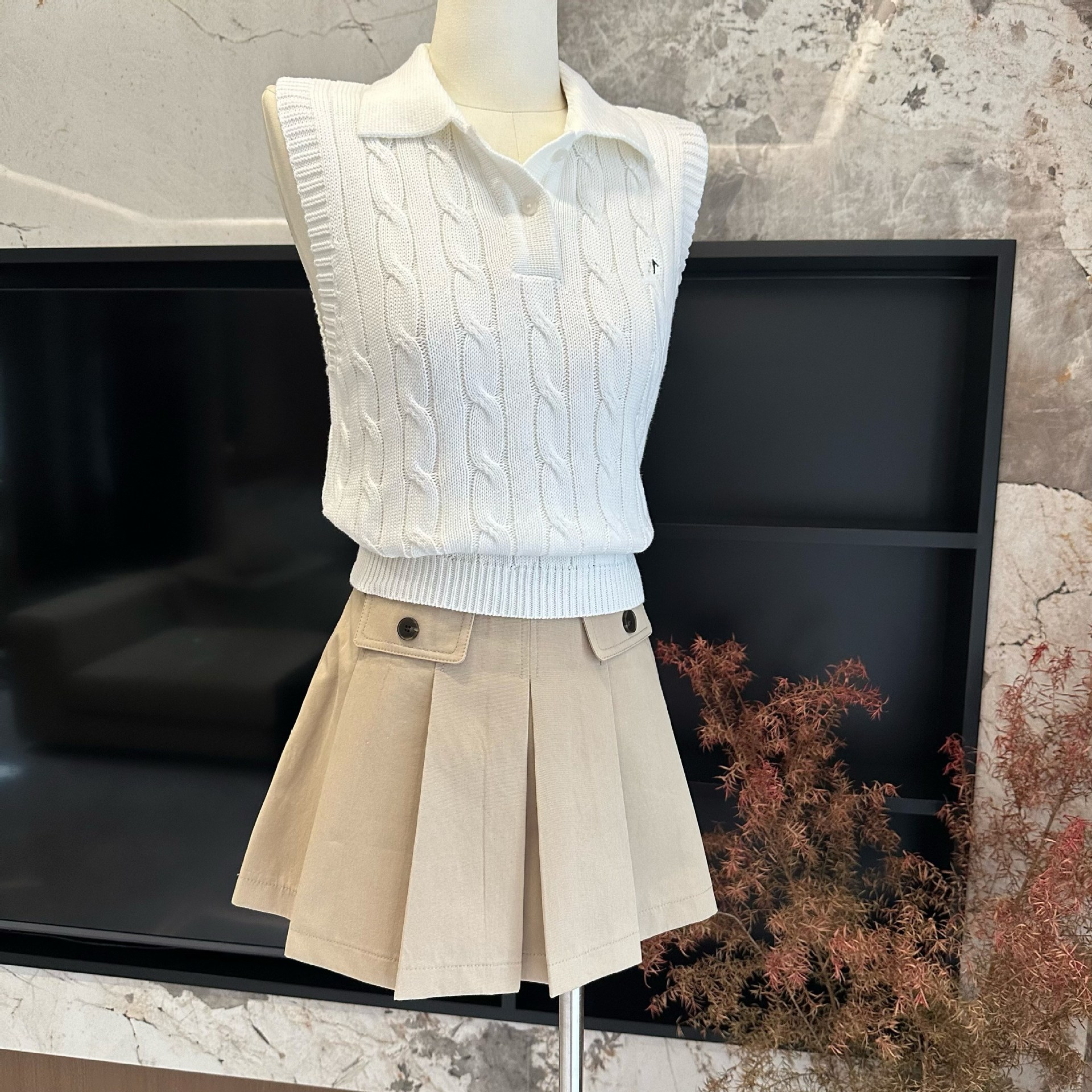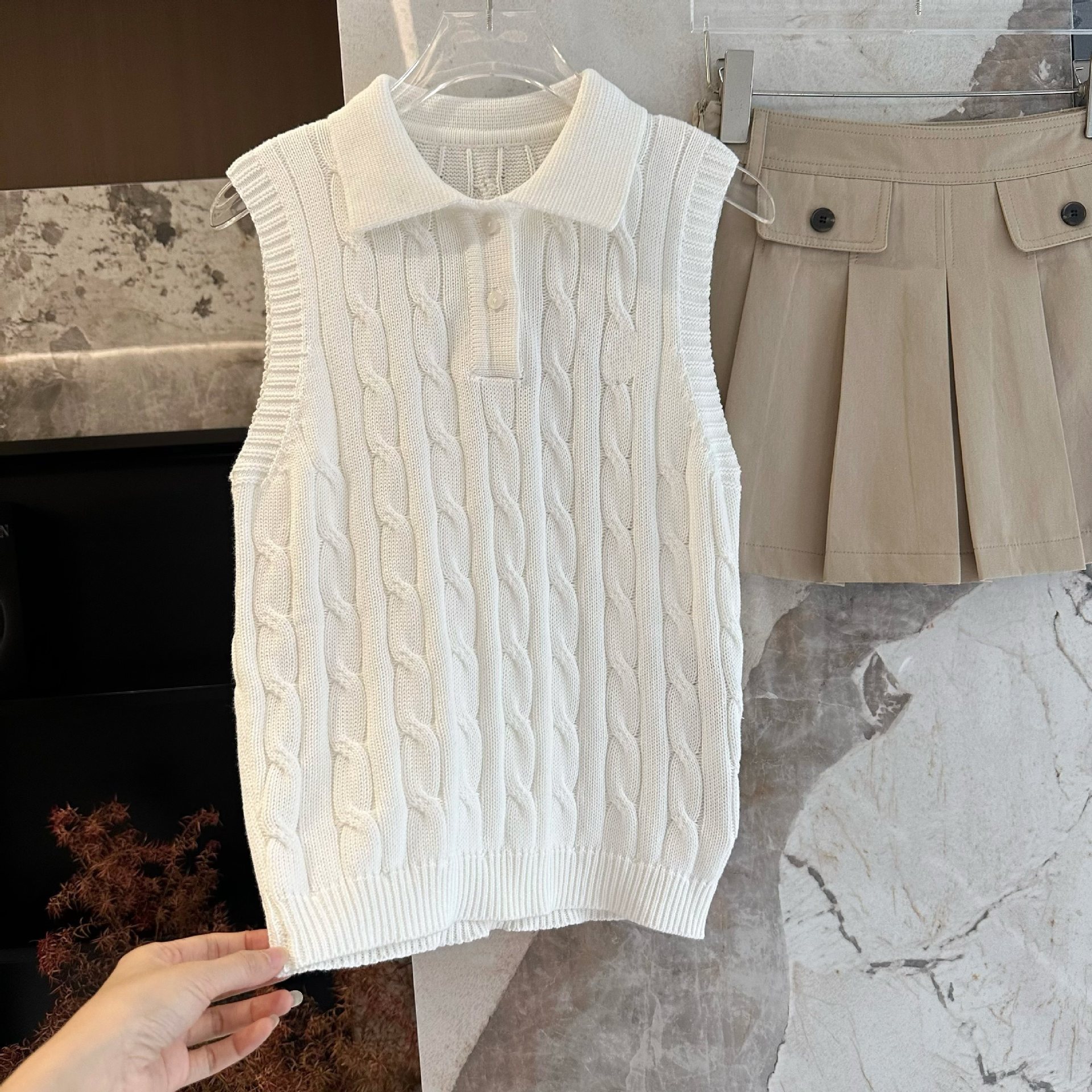 폴로 목 자수 트위스트 니트 조끼 여성의 봄과 여름 민소매 티셔츠 탑스토어 가기
