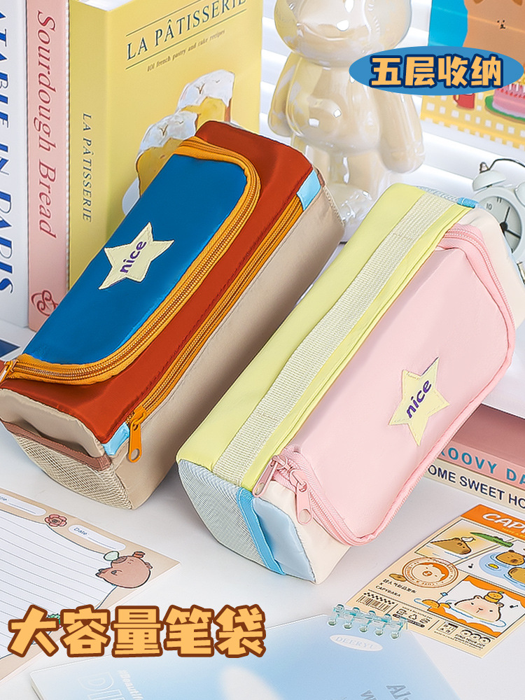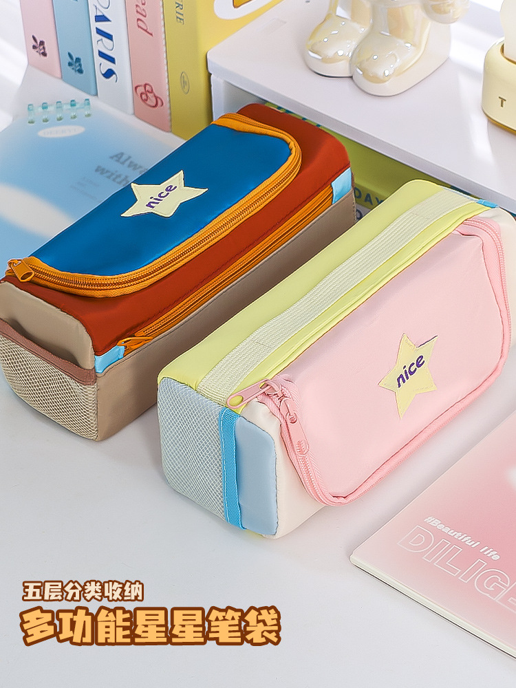 2025 새로운 사중주 스타 연필 가방 휴대용 다기능 문구 가방 높은 가치 틈새 다층 문구 연필 케이스