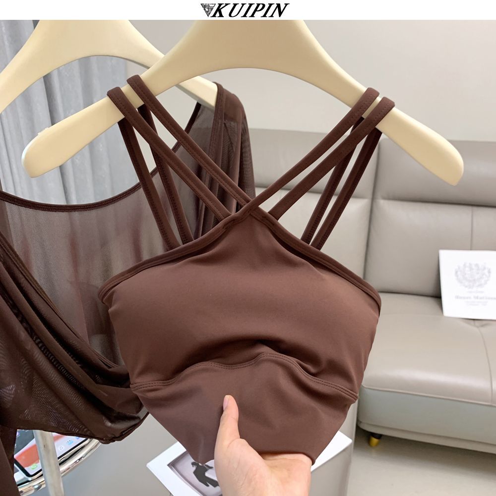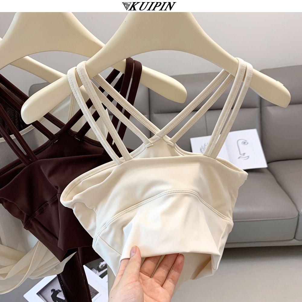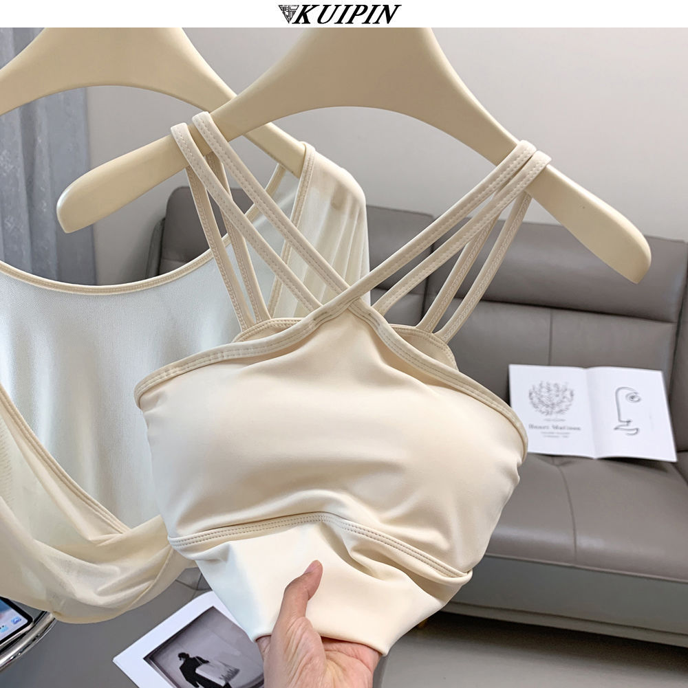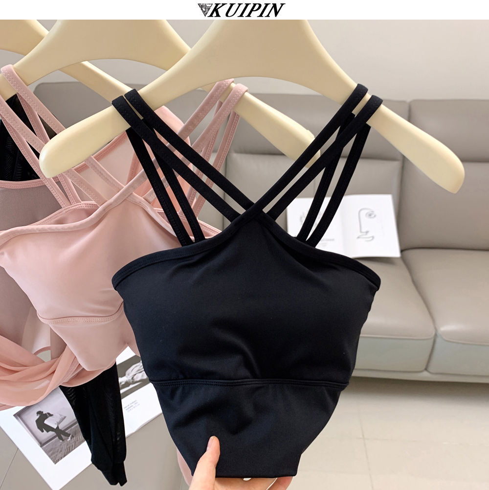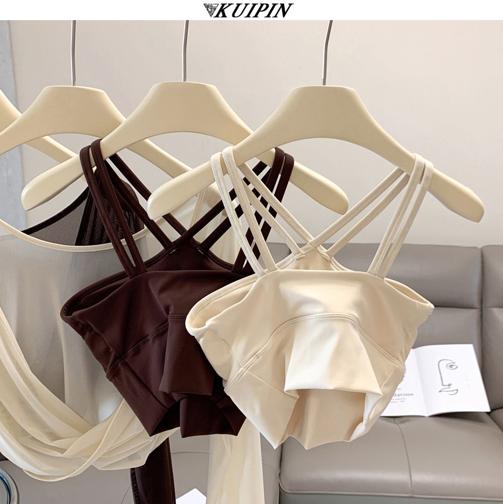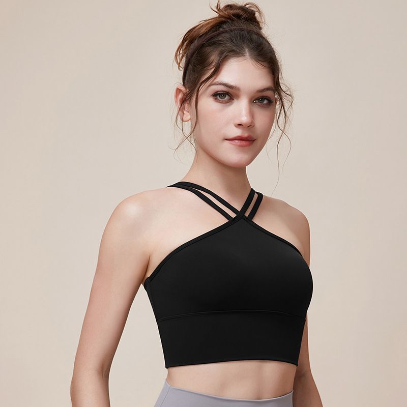 새로운 더블 V 캐미솔 슬림핏 스포츠 속옷 하이넥 노출 방지 하이넥 요가 탑스토어 가기