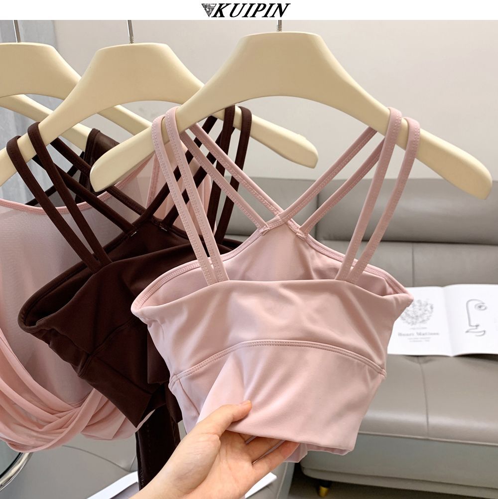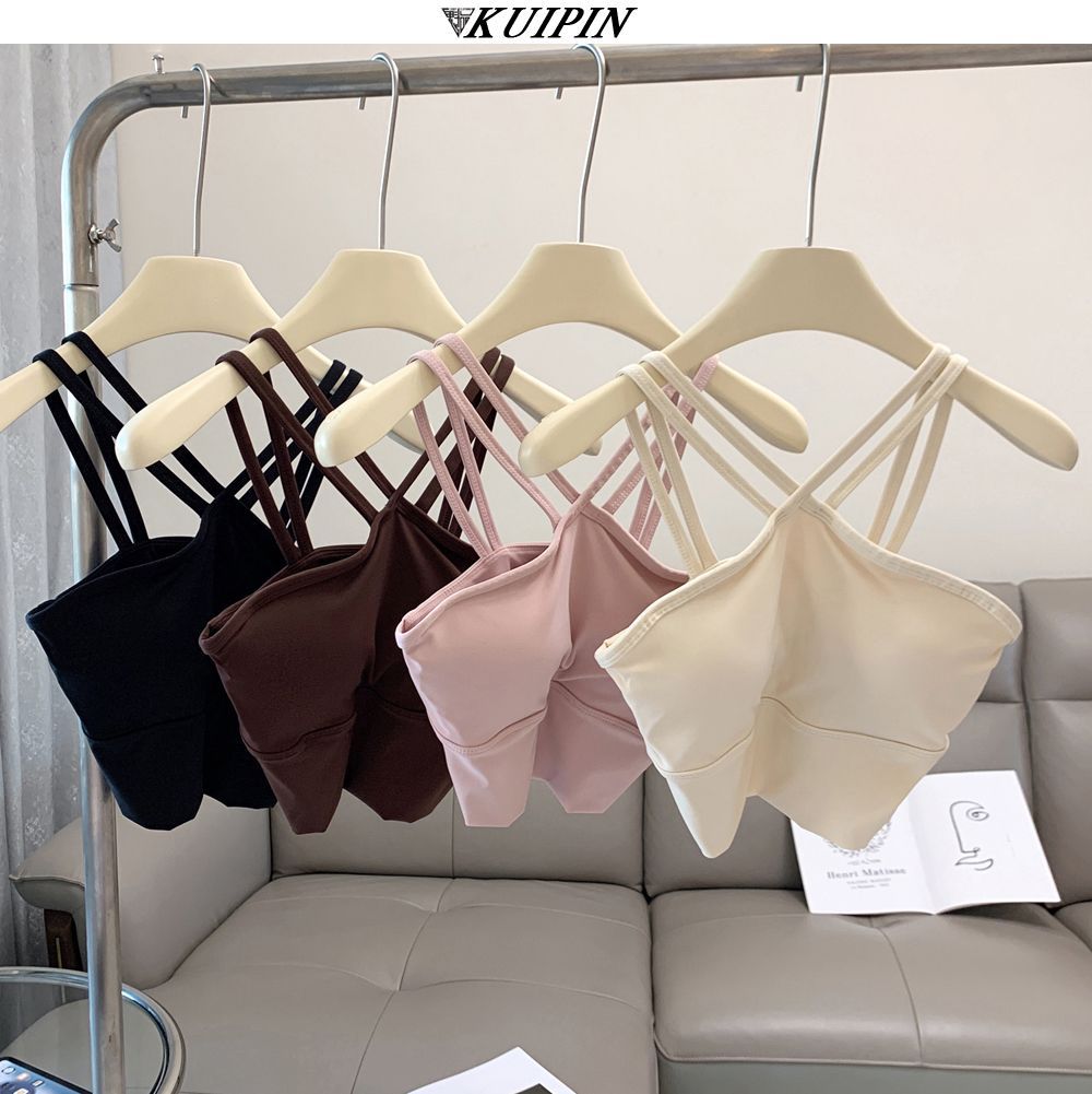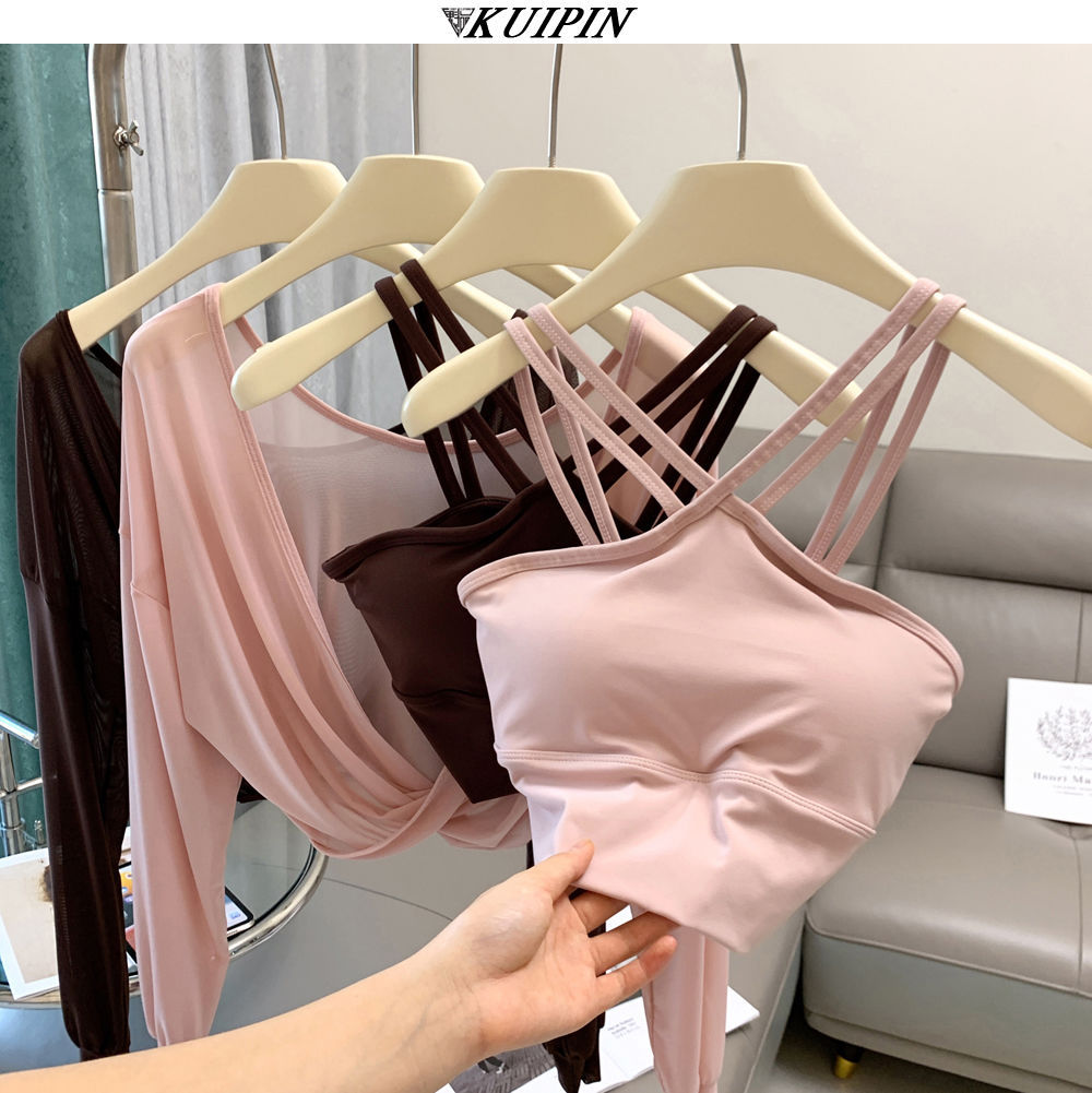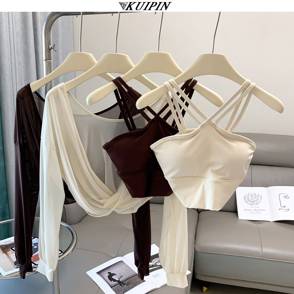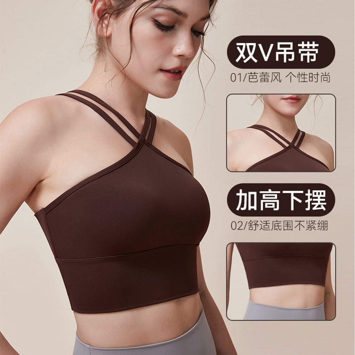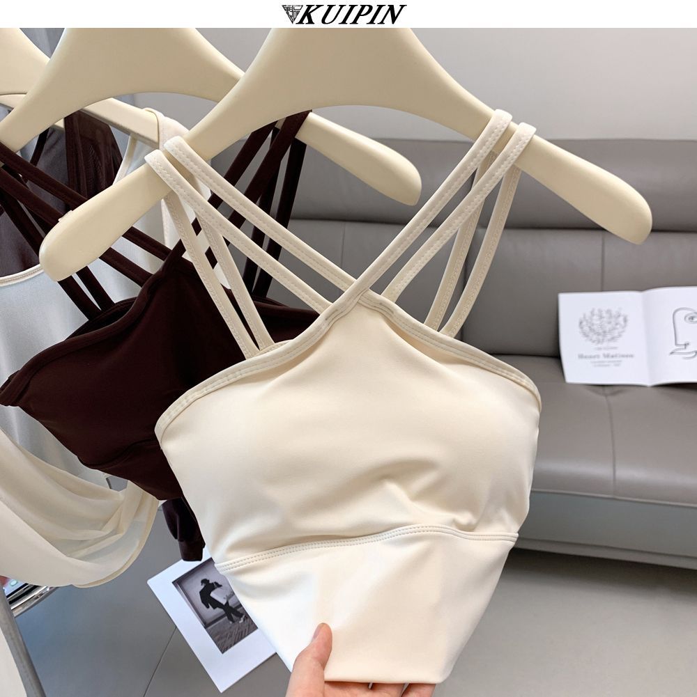 새로운 더블 V 캐미솔 슬림핏 스포츠 속옷 하이넥 노출 방지 하이넥 요가 탑스토어 가기