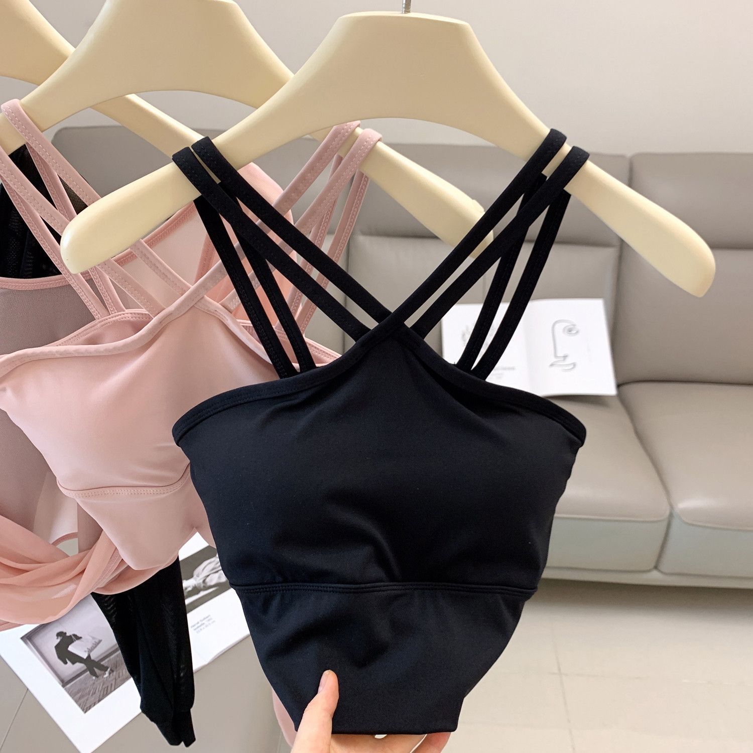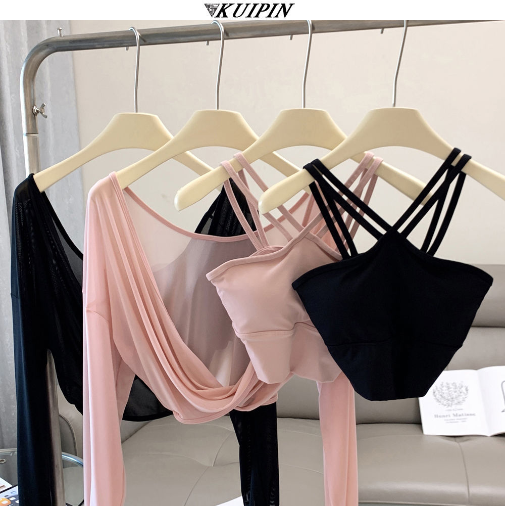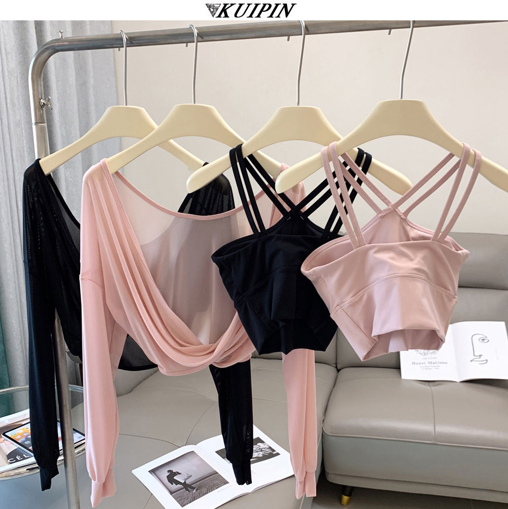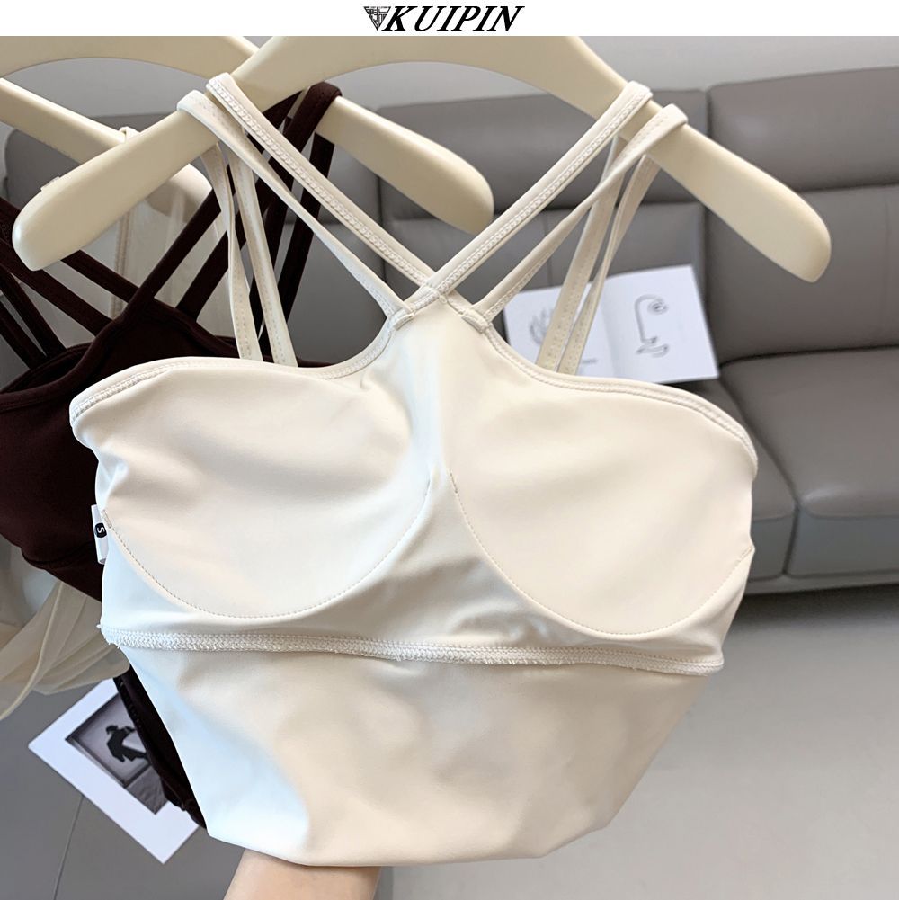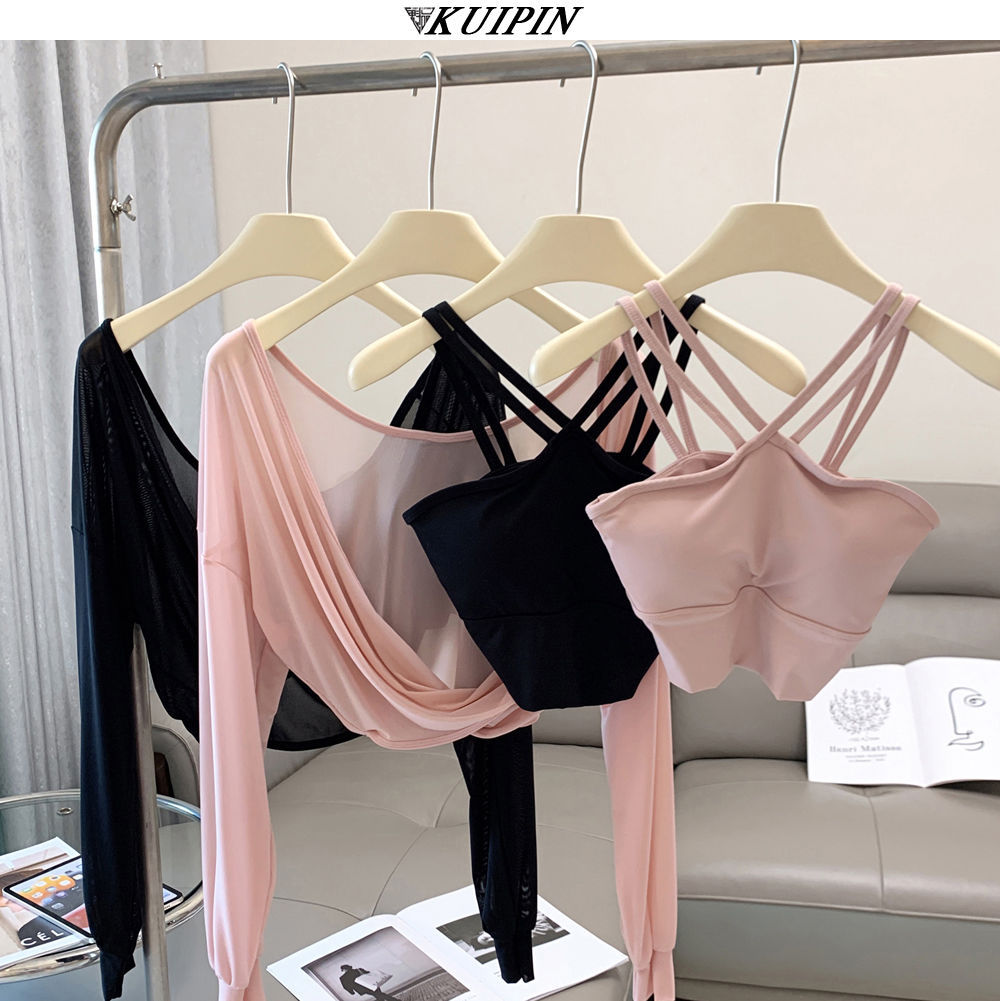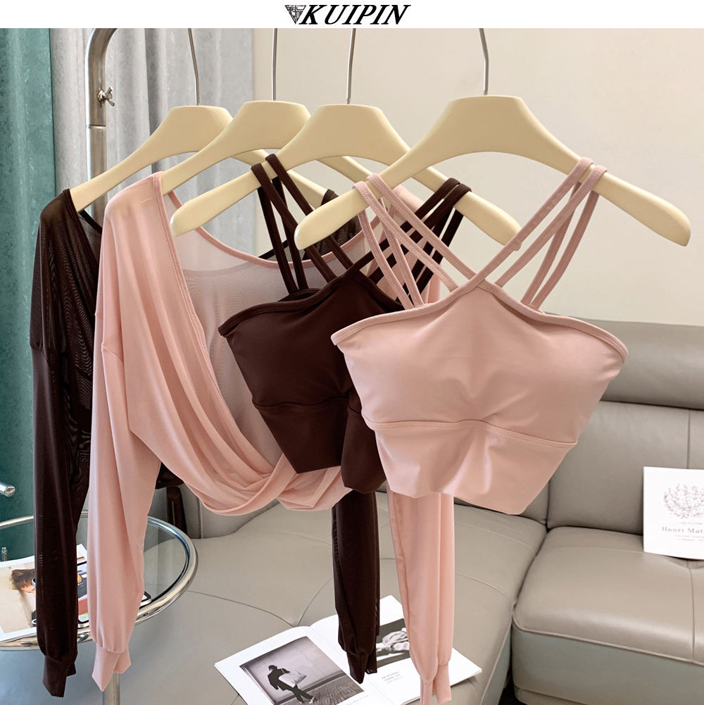 새로운 더블 V 캐미솔 슬림핏 스포츠 속옷 하이넥 노출 방지 하이넥 요가 탑스토어 가기