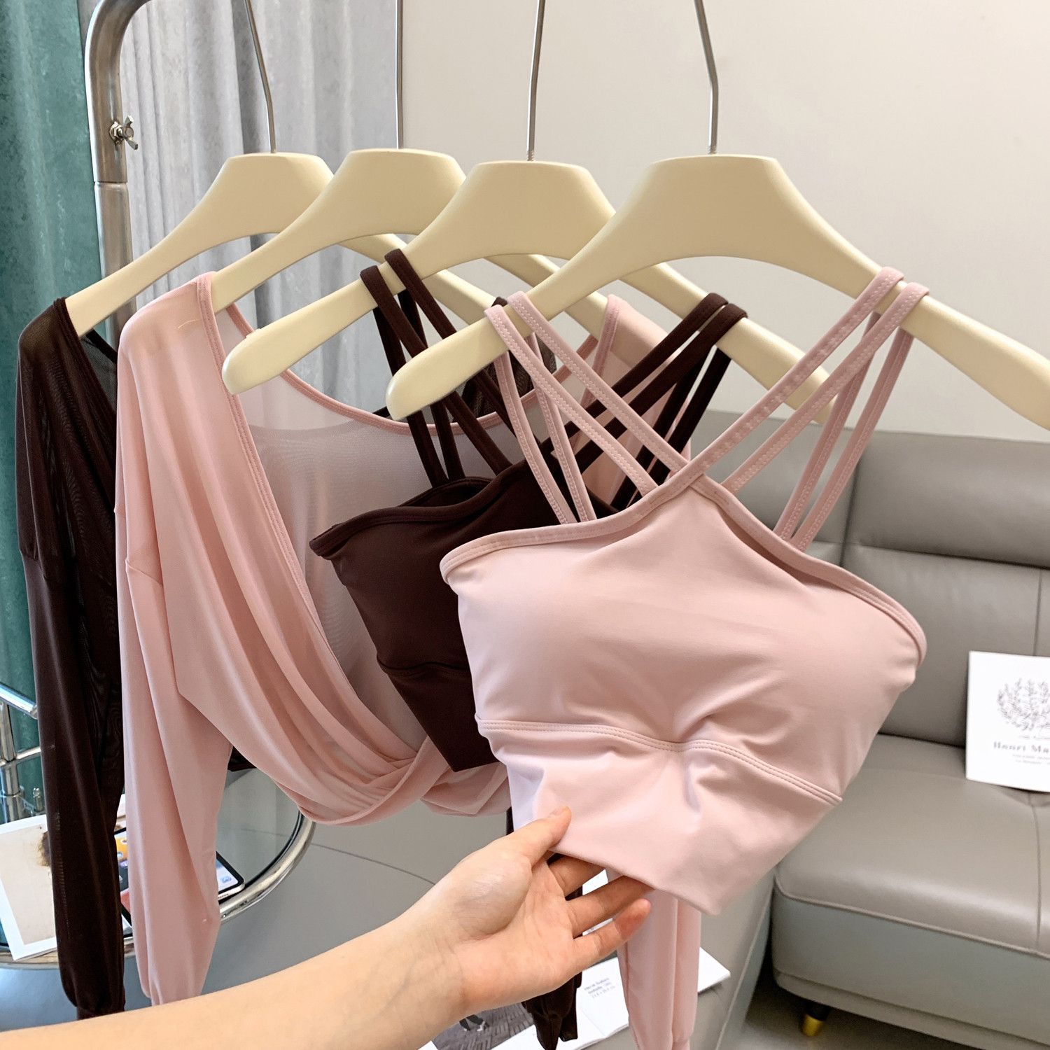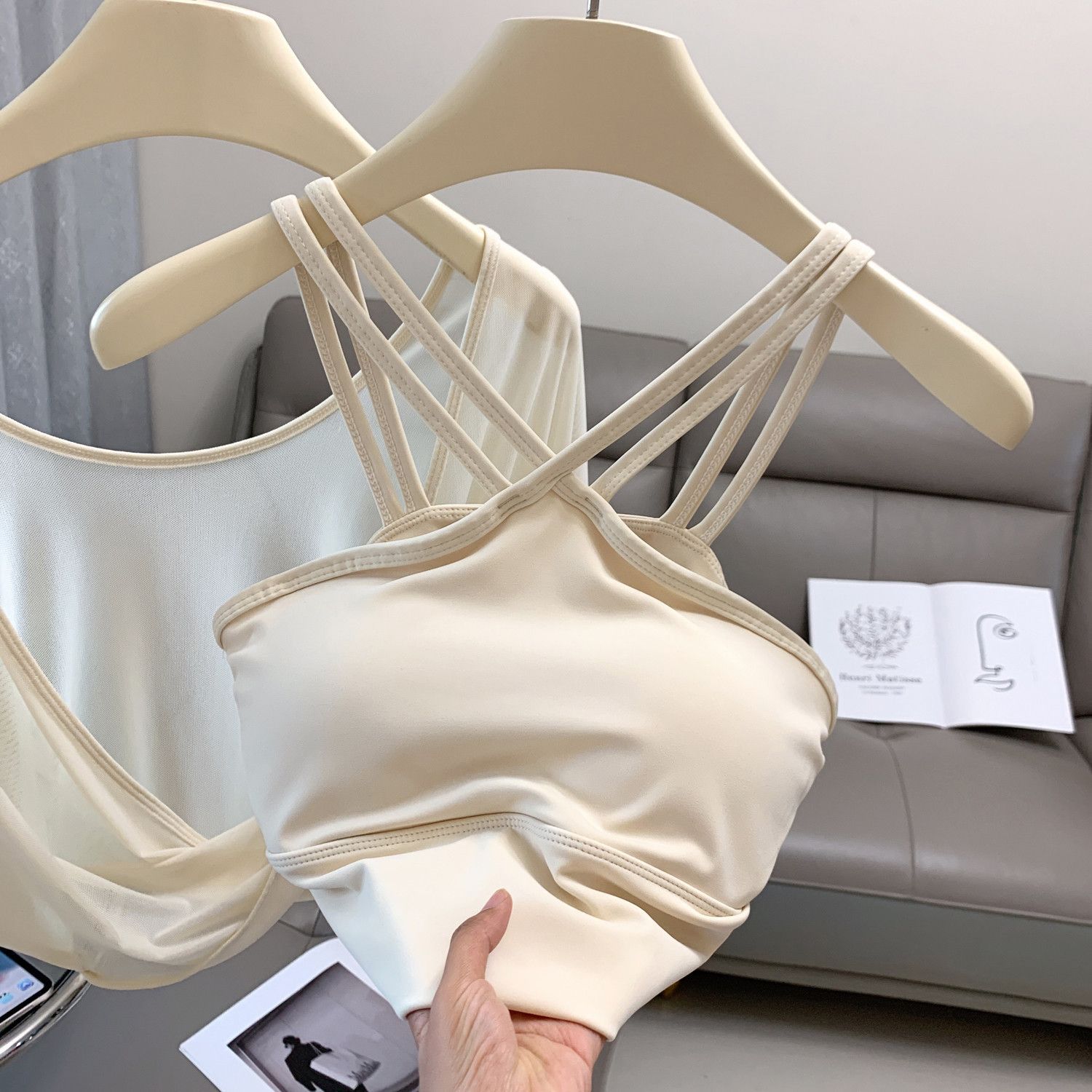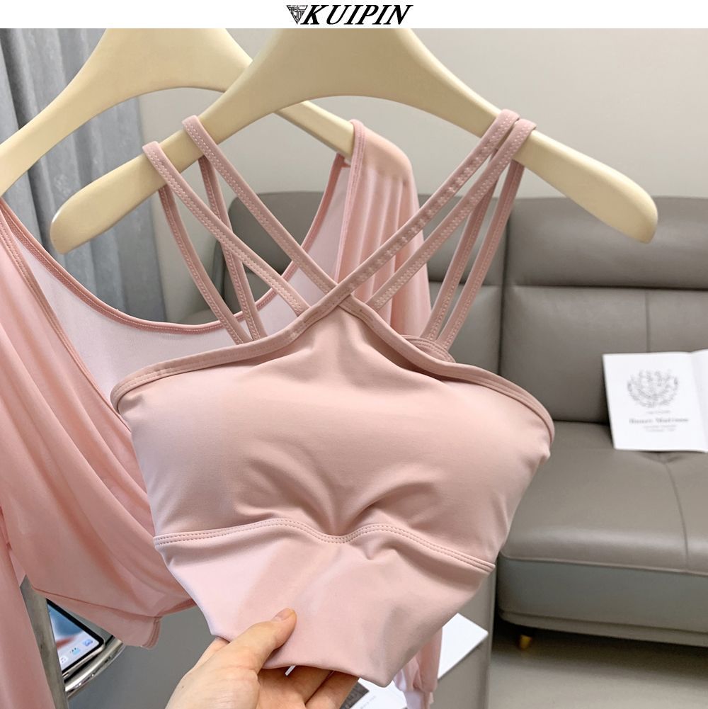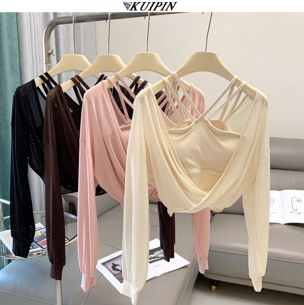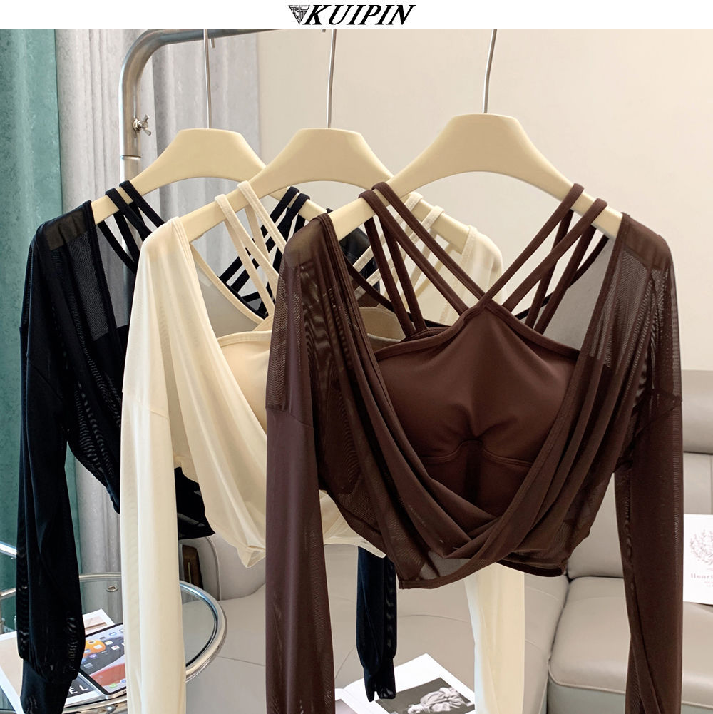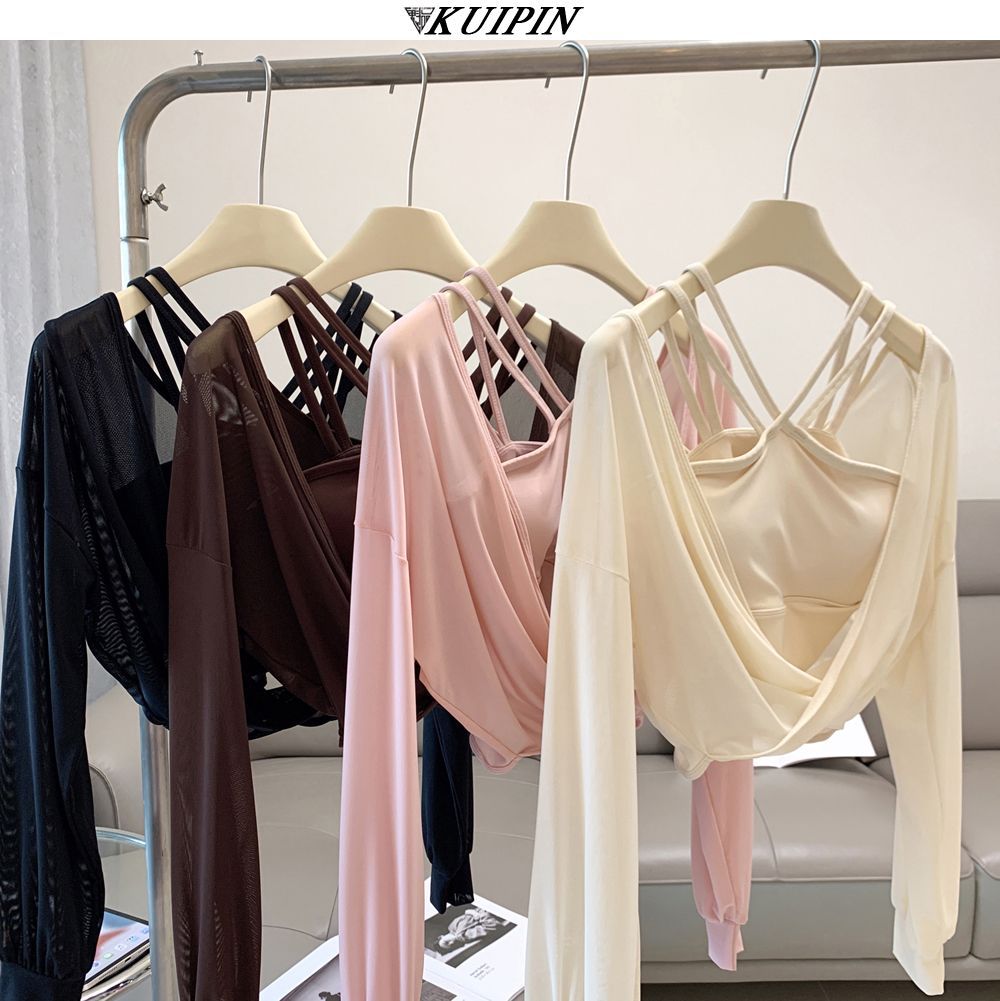 새로운 더블 V 캐미솔 슬림핏 스포츠 속옷 하이넥 노출 방지 하이넥 요가 탑스토어 가기