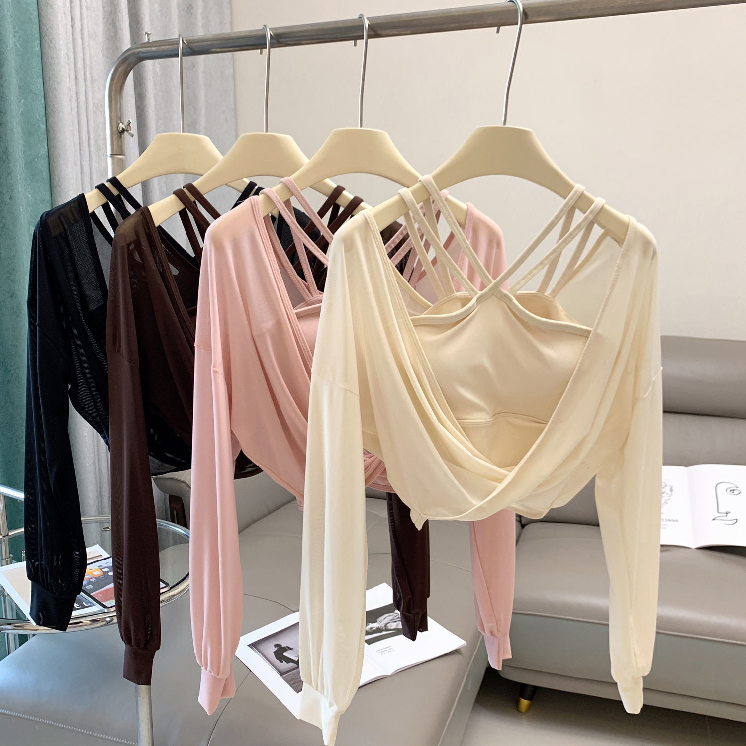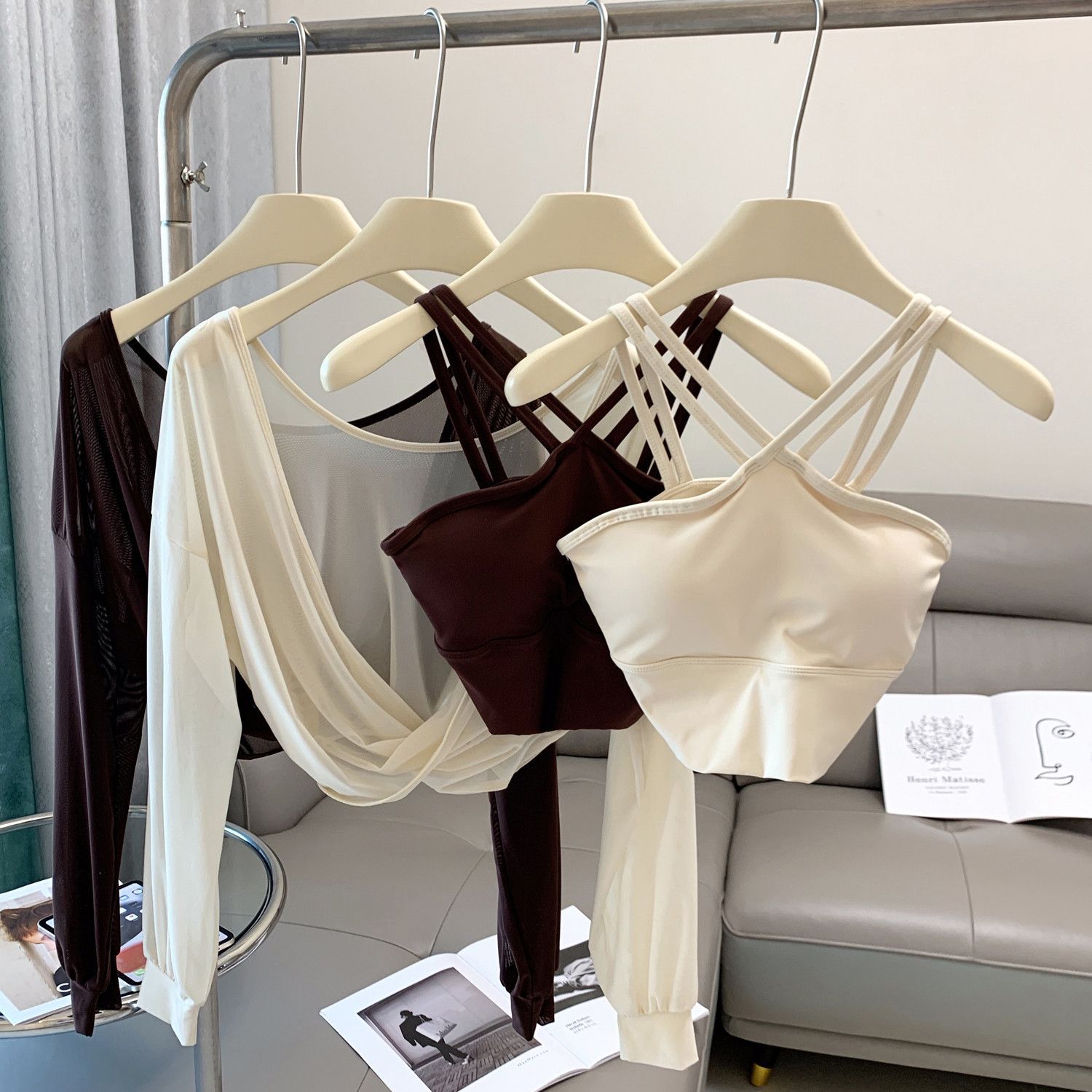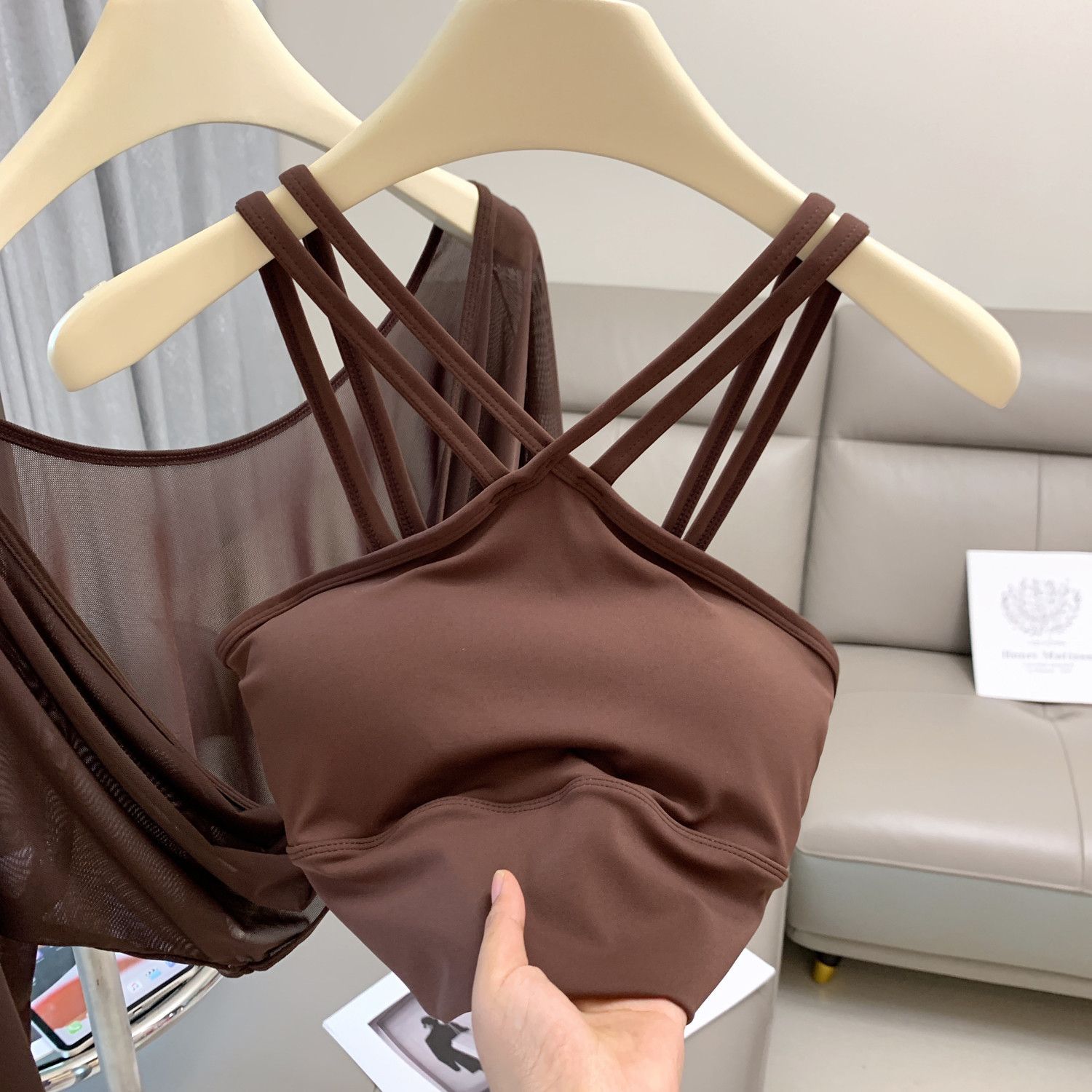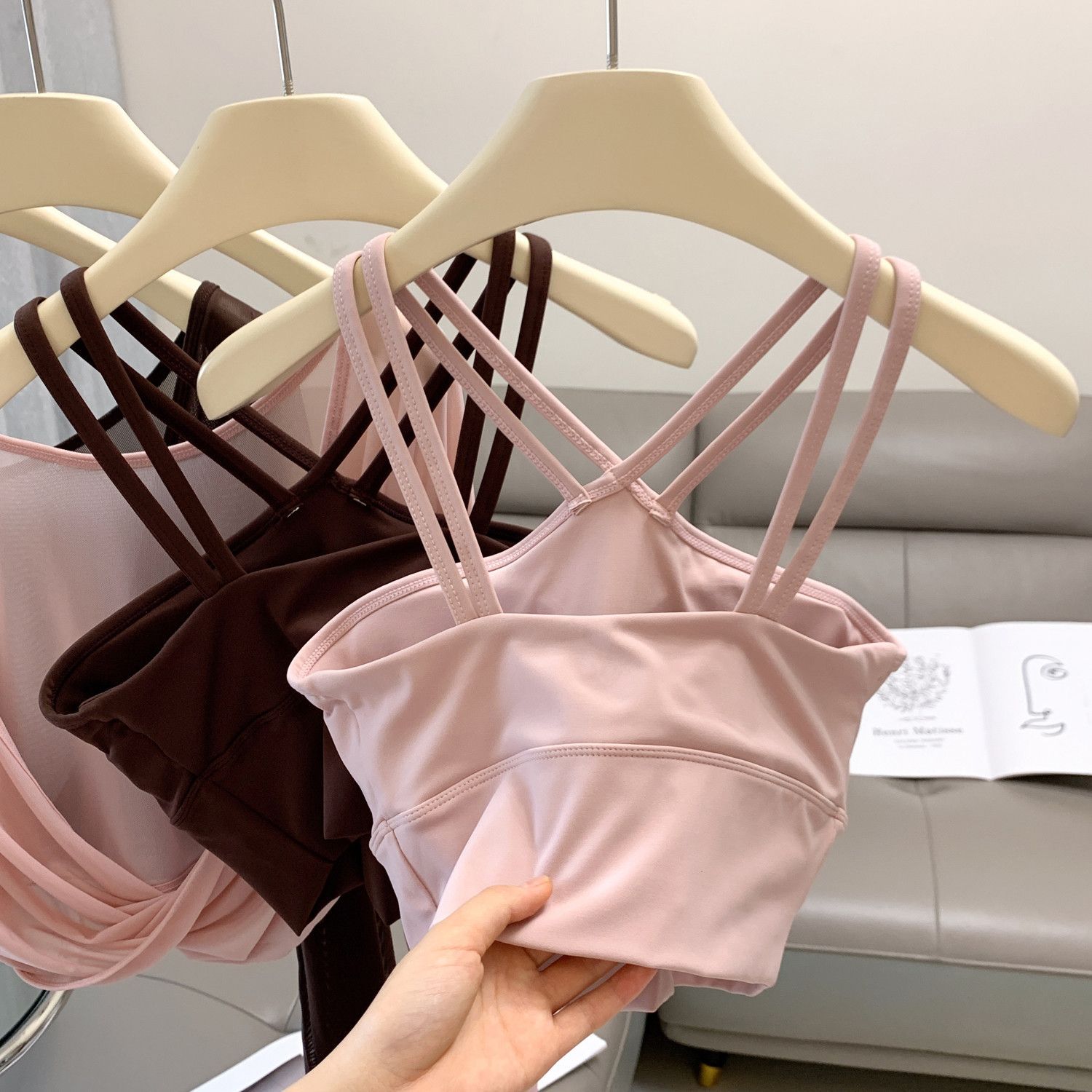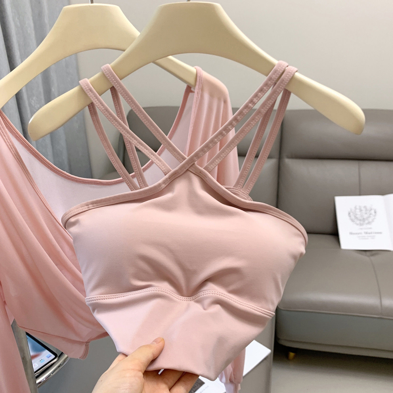 새로운 더블 V 캐미솔 슬림핏 스포츠 속옷 하이넥 노출 방지 하이넥 요가 탑스토어 가기