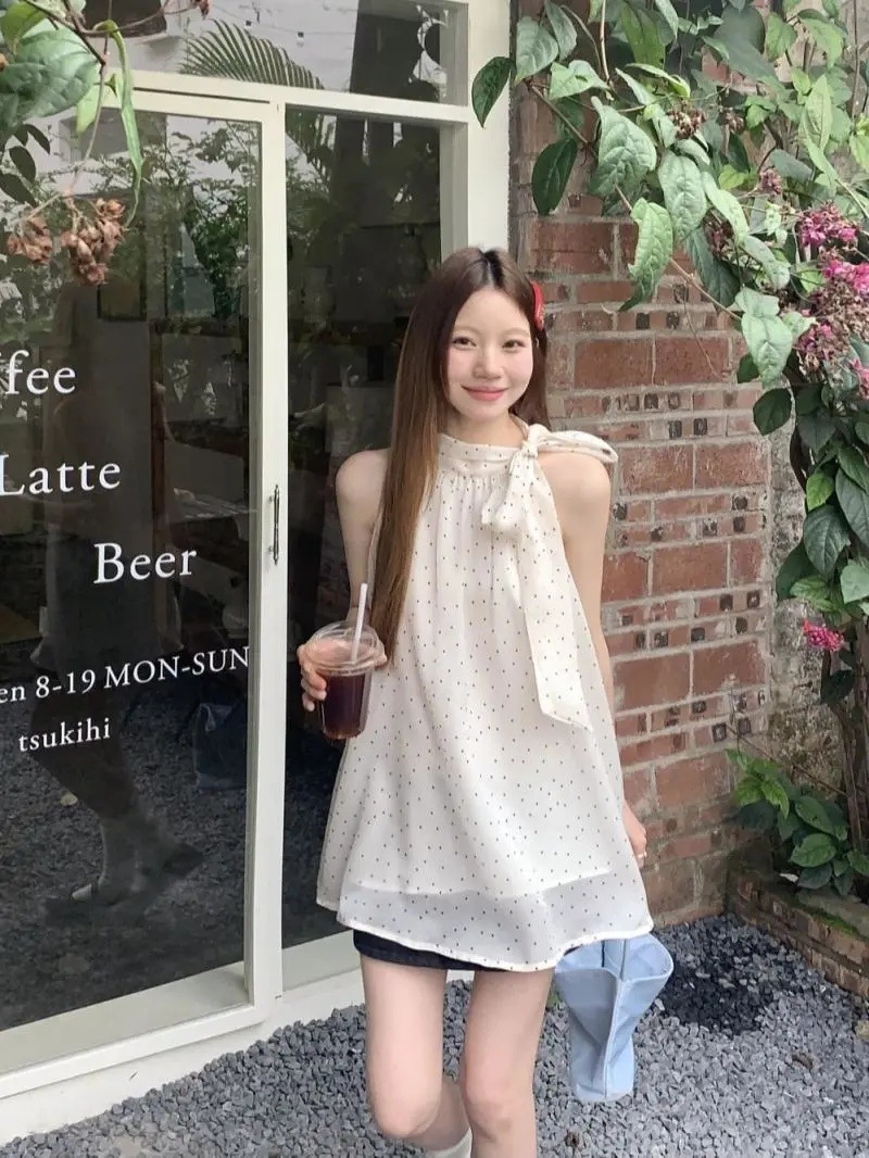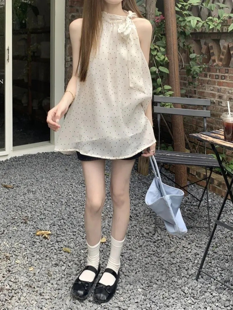 • 폴카 도트 홀터넥 셔츠 [고품질]