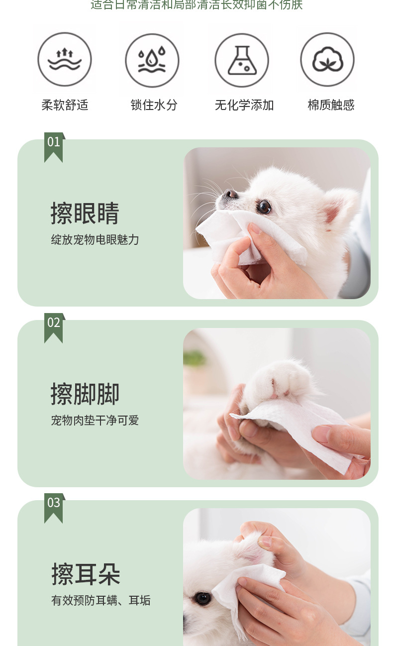 애완 동물 젖은 물티슈, 신체 부위 용 젖은 물티슈를 탈취 한 고양이와 개를위한 80 개의 특수 비 스크러빙 눈물