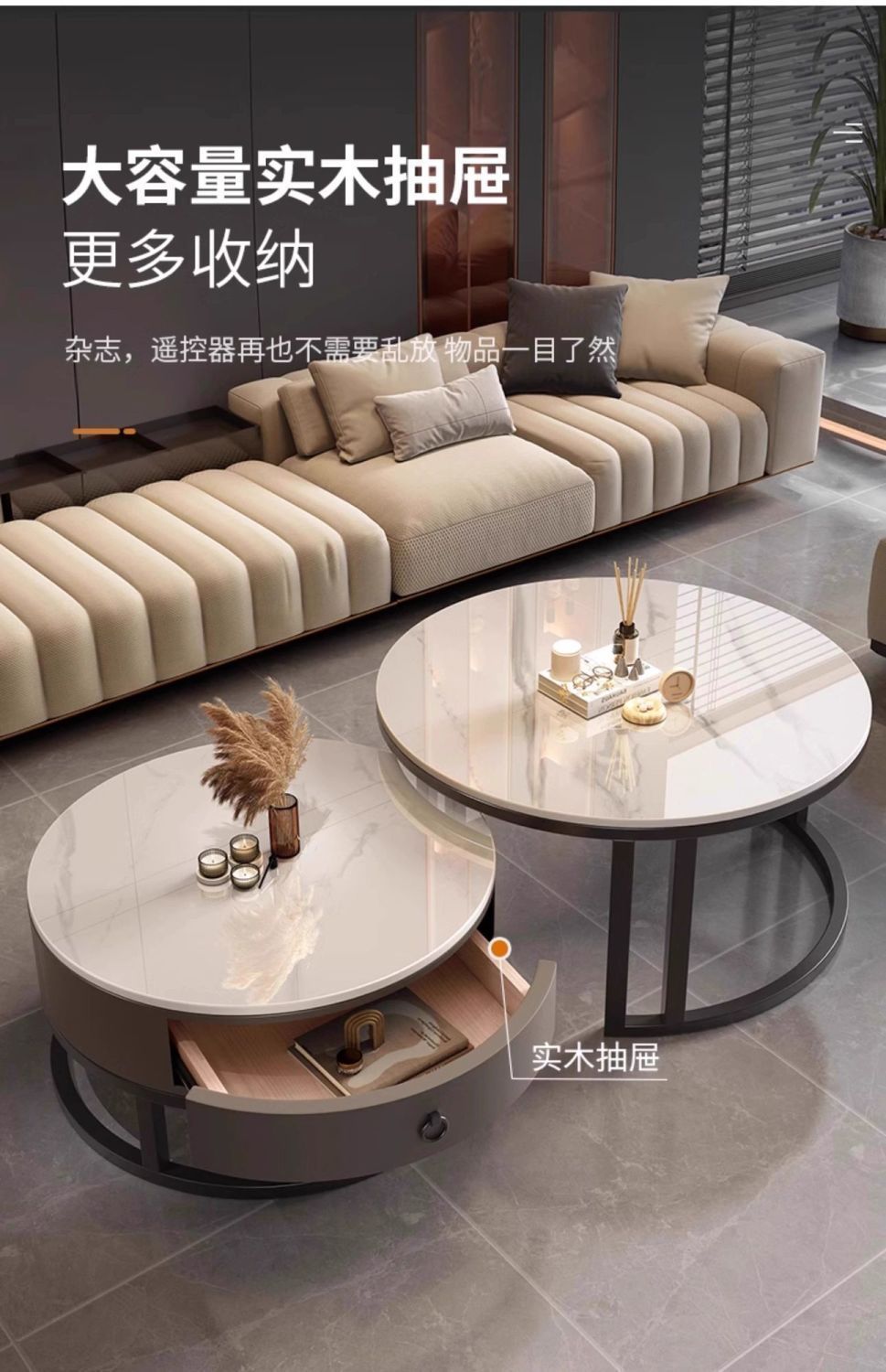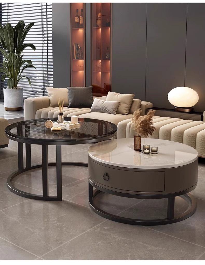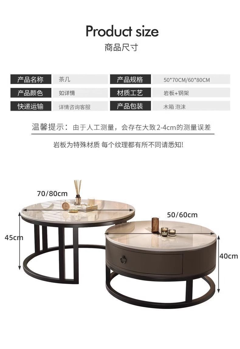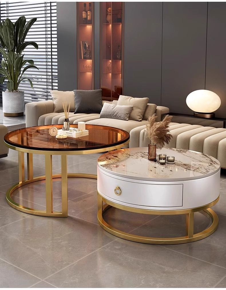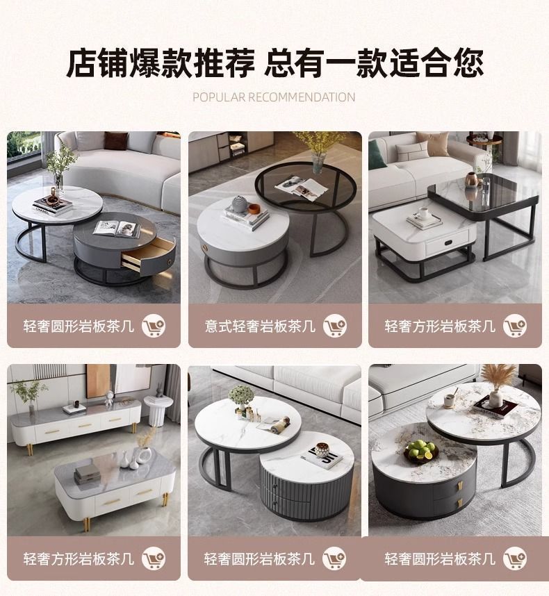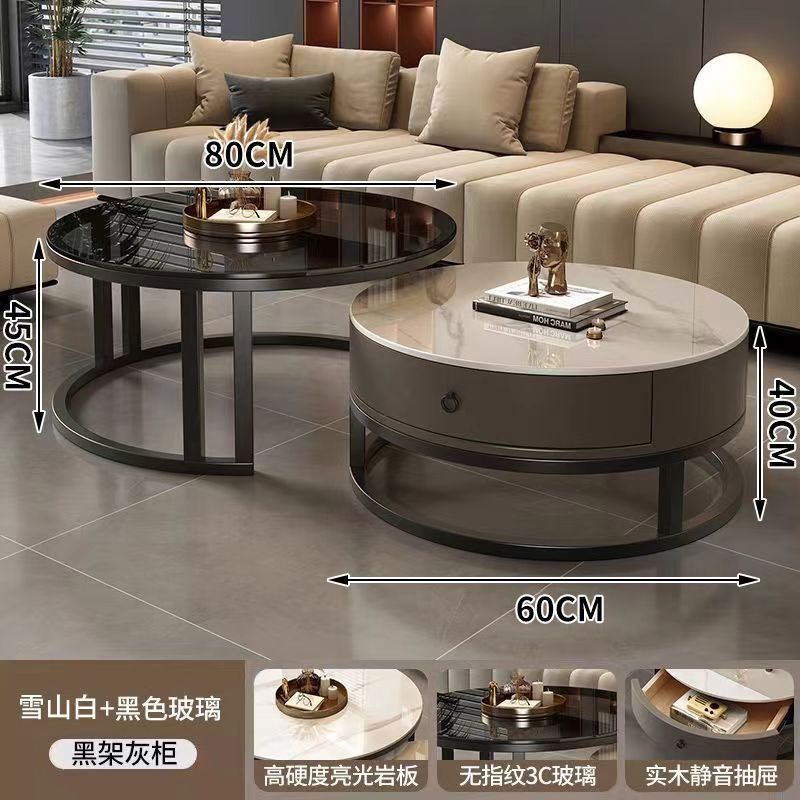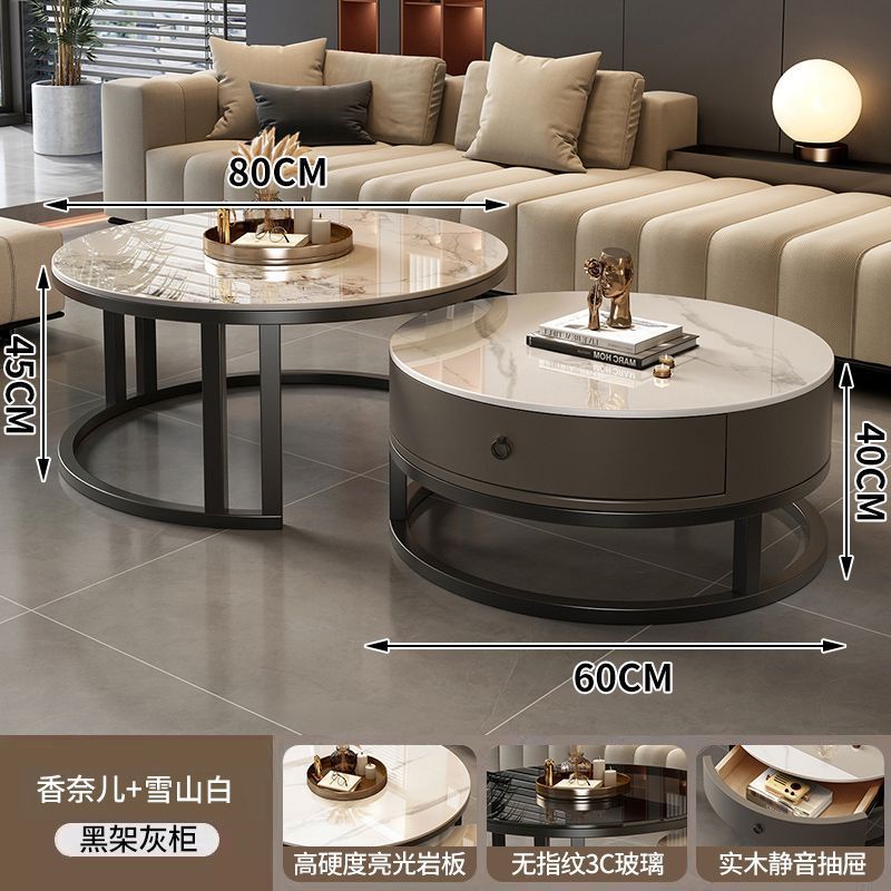 ∝스톤 플레이트 라이트 럭셔리 심플하고 실용적인 북유럽 인터넷 연예인 대리석 원형 티 테이블 거실 조합 소규모 가구스토어 가기
