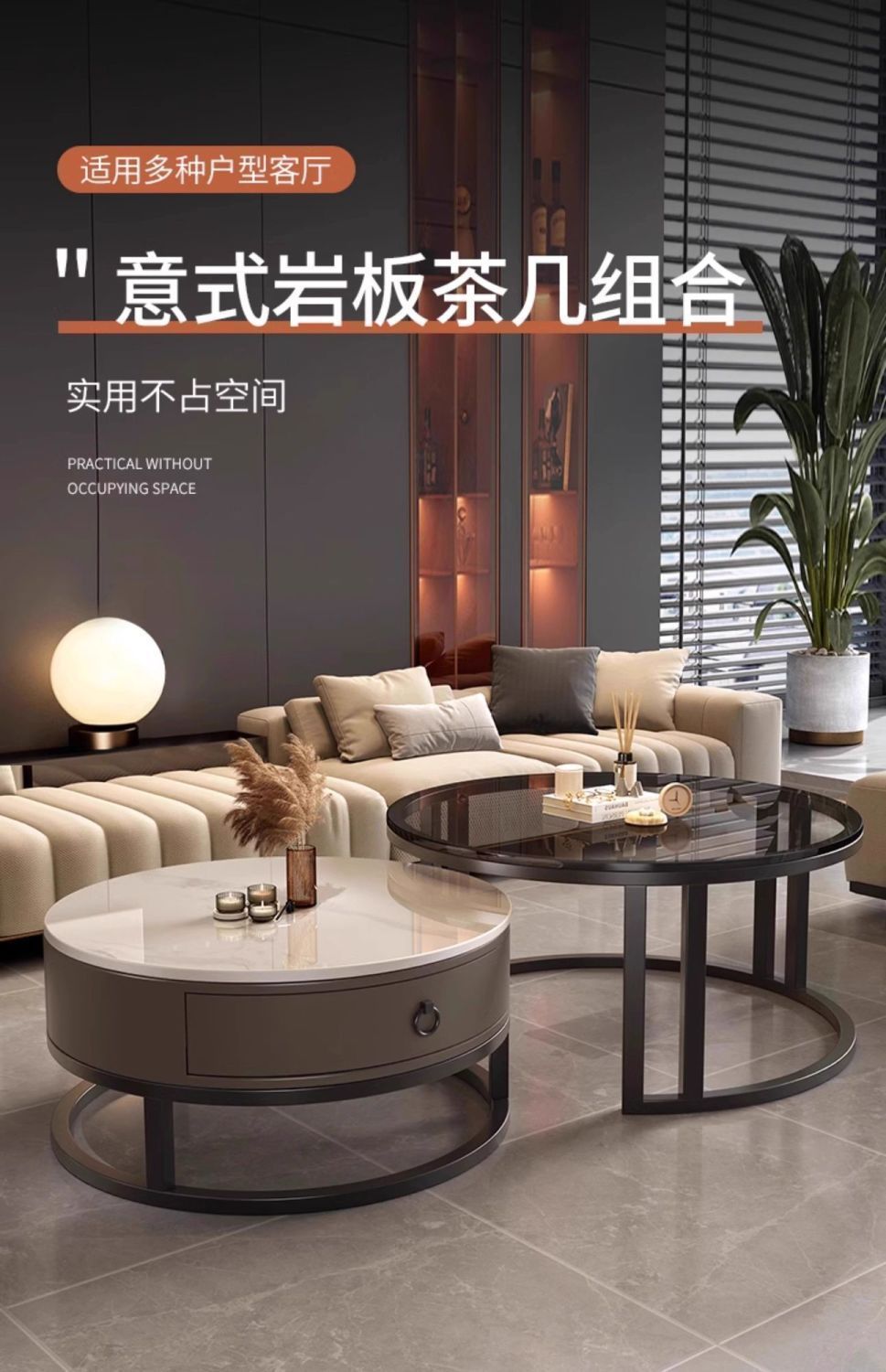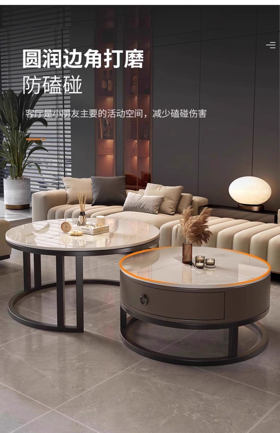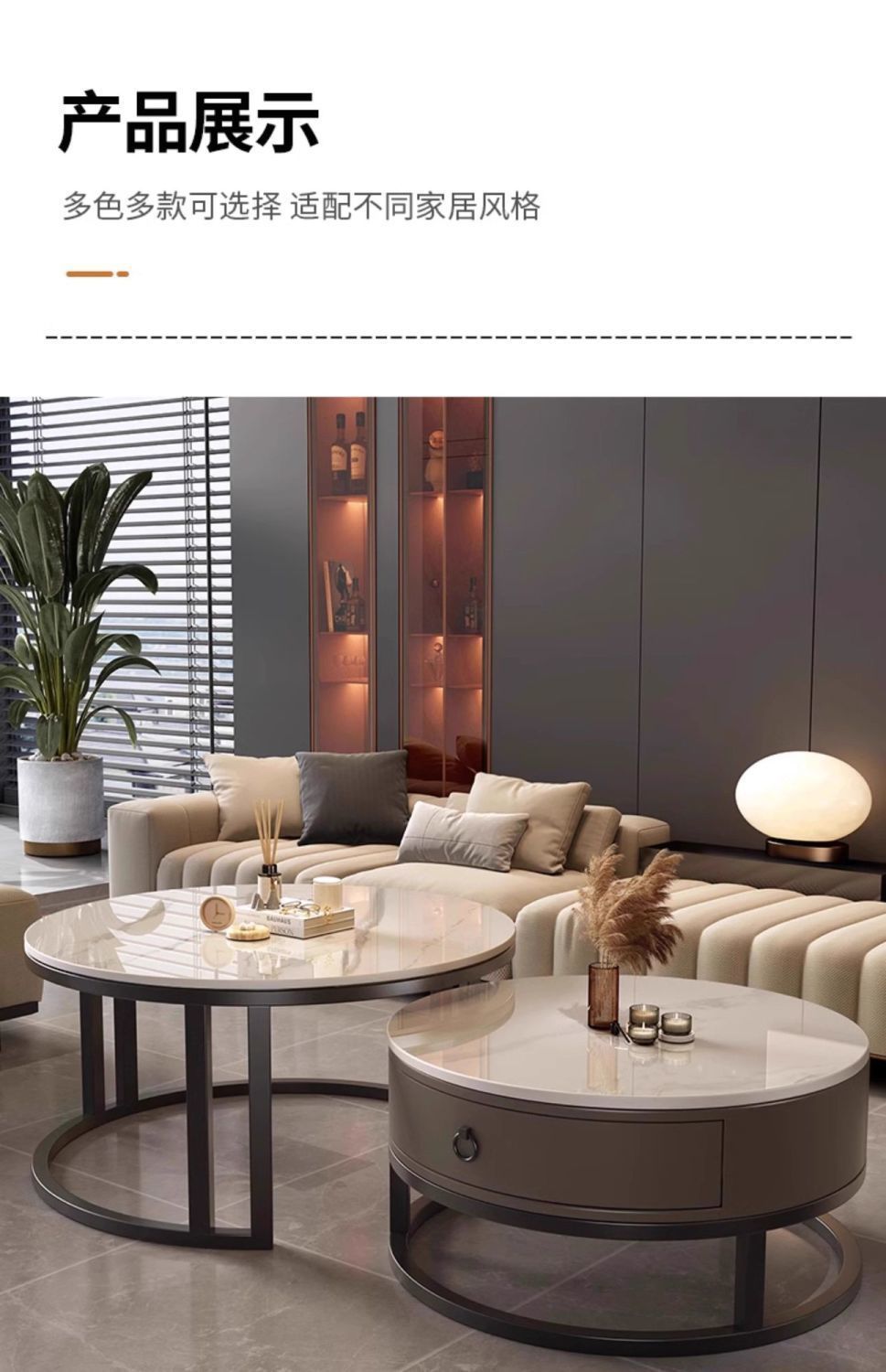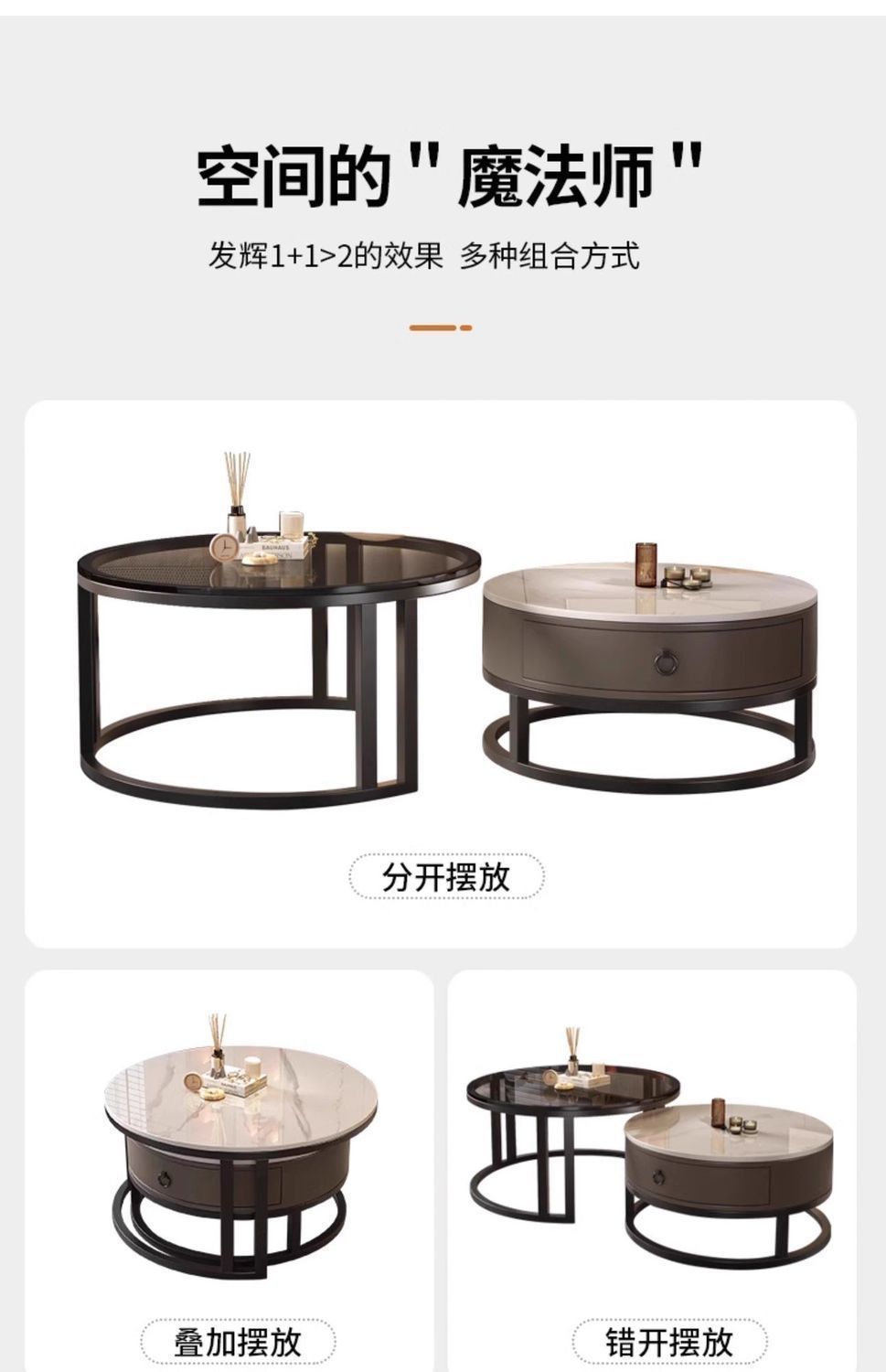 ∝스톤 플레이트 라이트 럭셔리 심플하고 실용적인 북유럽 인터넷 연예인 대리석 원형 티 테이블 거실 조합 소규모 가구스토어 가기
