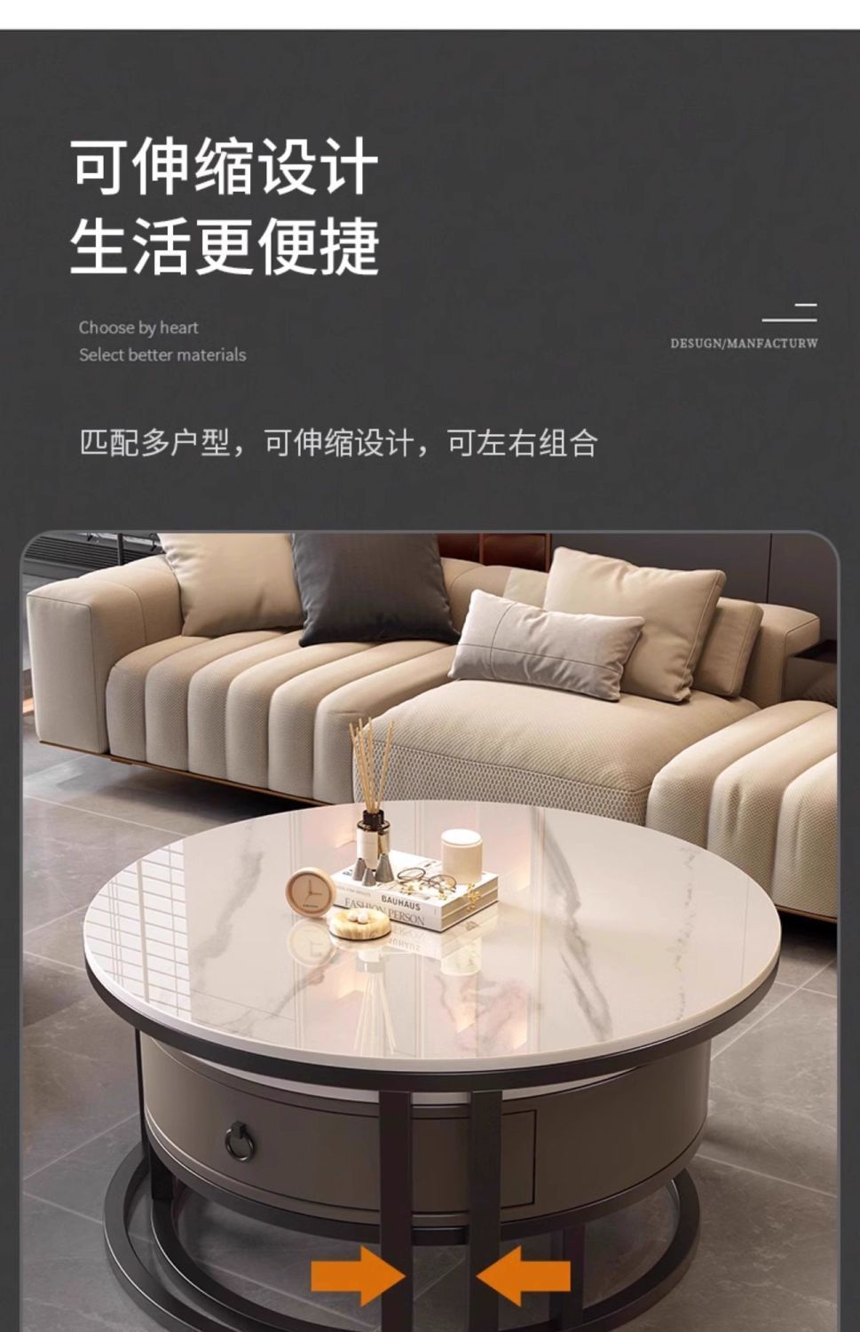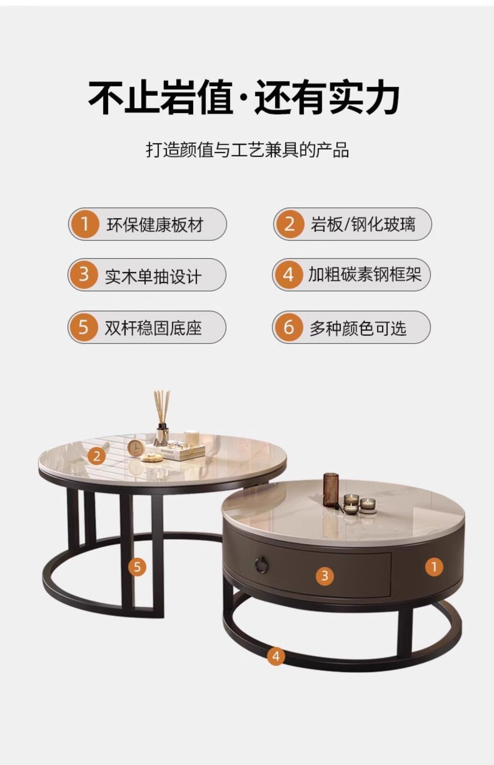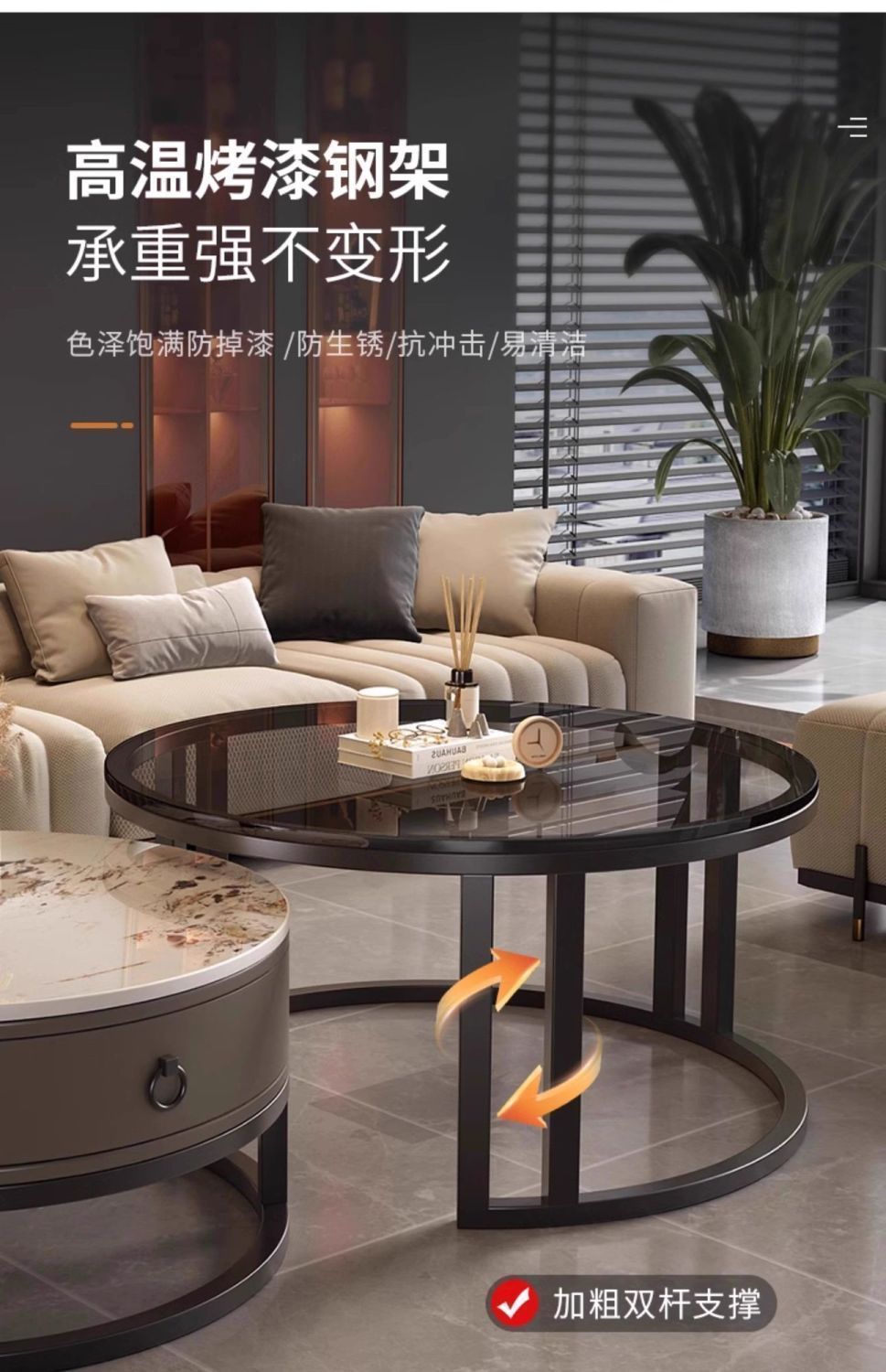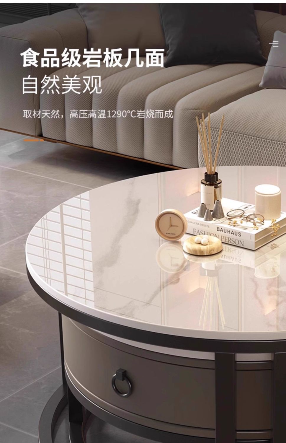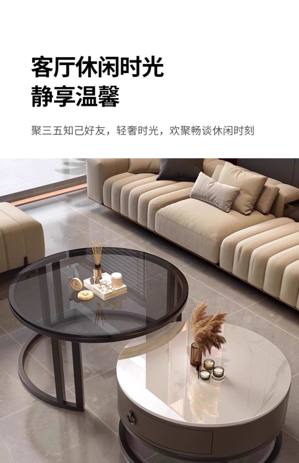 ∝스톤 플레이트 라이트 럭셔리 심플하고 실용적인 북유럽 인터넷 연예인 대리석 원형 티 테이블 거실 조합 소규모 가구스토어 가기