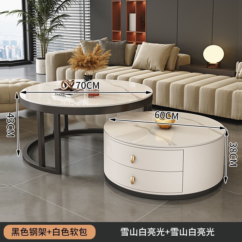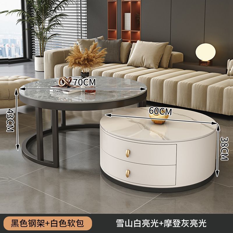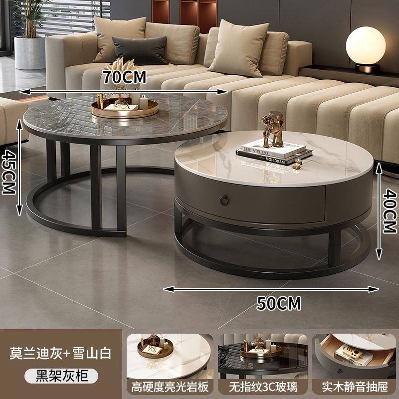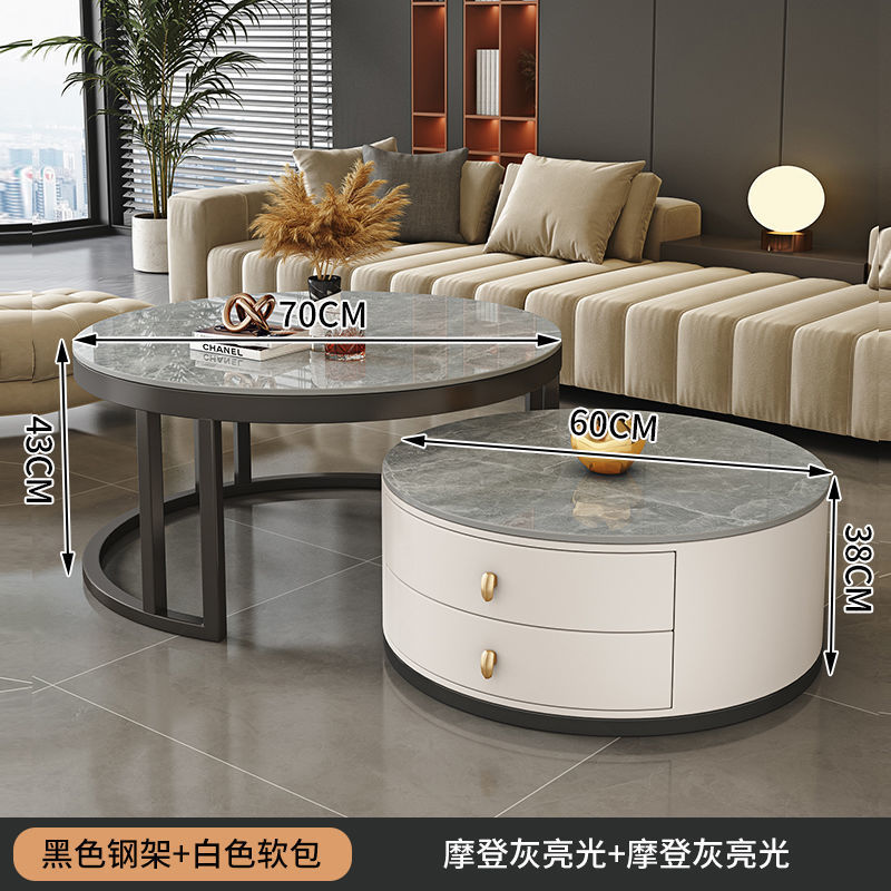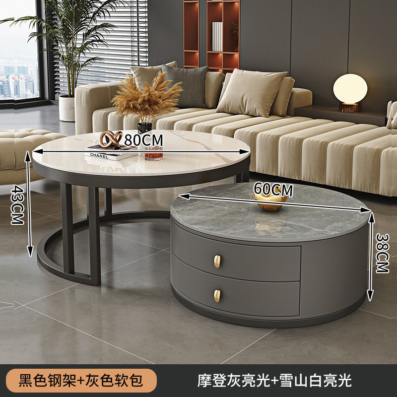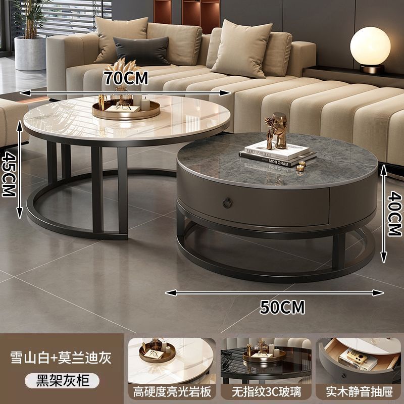 ∝스톤 플레이트 라이트 럭셔리 심플하고 실용적인 북유럽 인터넷 연예인 대리석 원형 티 테이블 거실 조합 소규모 가구