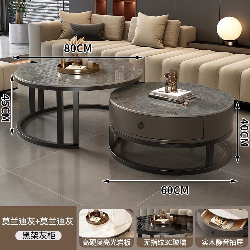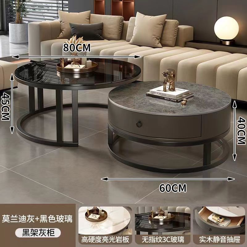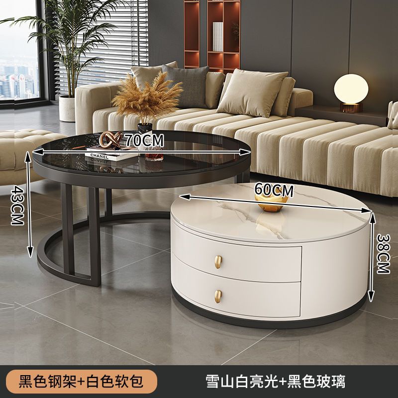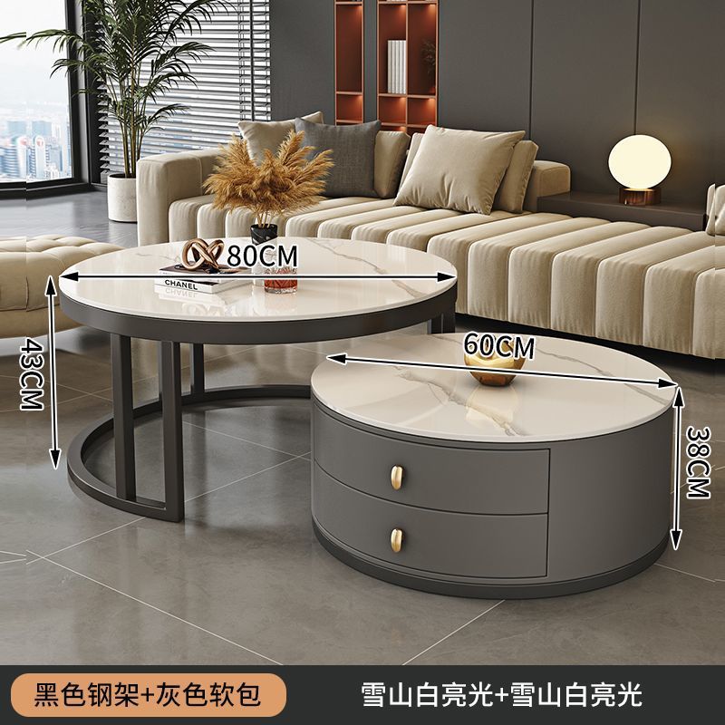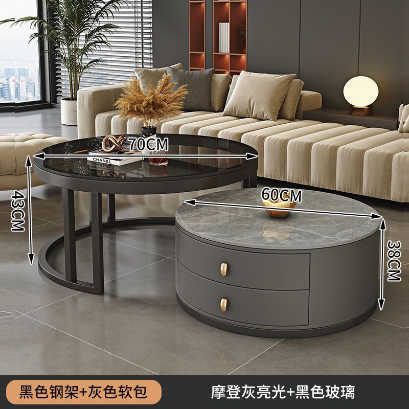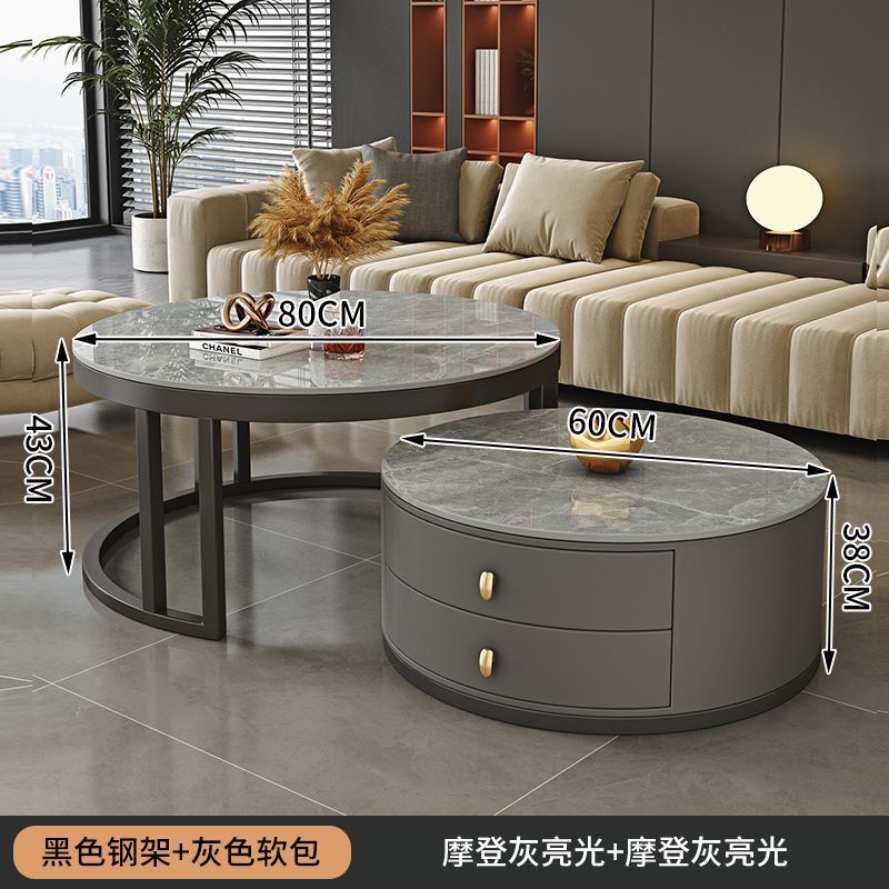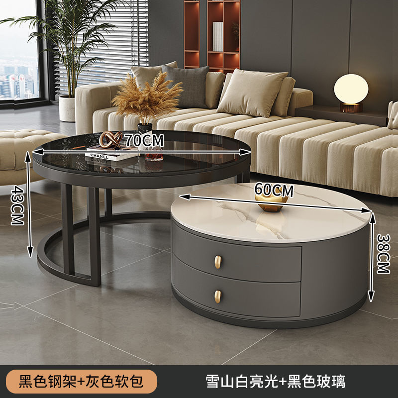 ∝스톤 플레이트 라이트 럭셔리 심플하고 실용적인 북유럽 인터넷 연예인 대리석 원형 티 테이블 거실 조합 소규모 가구