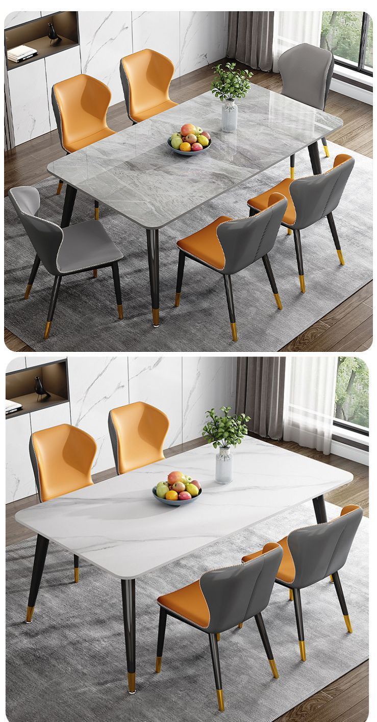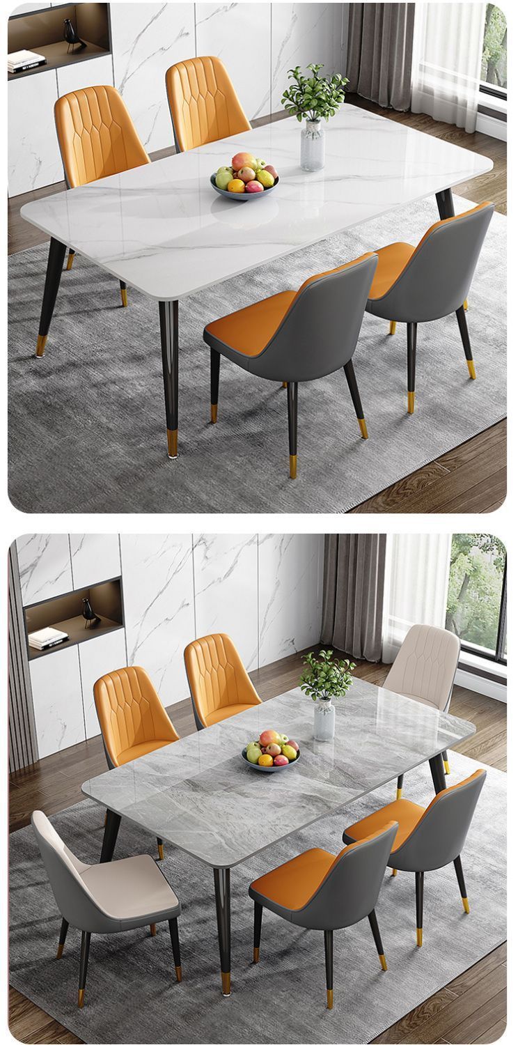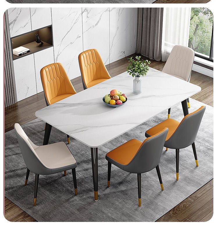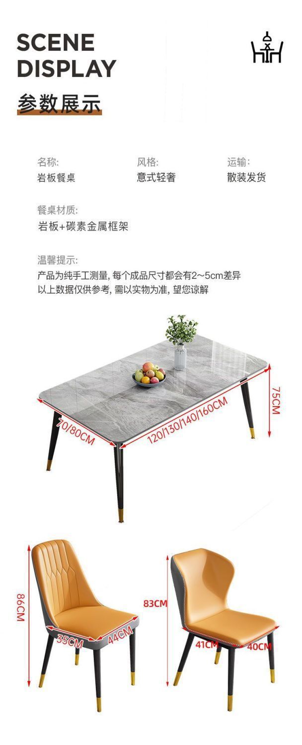 ∝ 가정용 슬레이트 식탁, 편안하고 단순하며 가벼운 고급 식탁, 거실 직사각형 대리석 소형 식탁 및 의자 세트