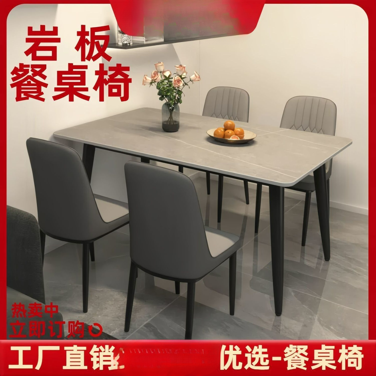 ∝ 가정용 슬레이트 식탁, 편안하고 단순하며 가벼운 고급 식탁, 거실 직사각형 대리석 소형 식탁 및 의자 세트스토어 가기