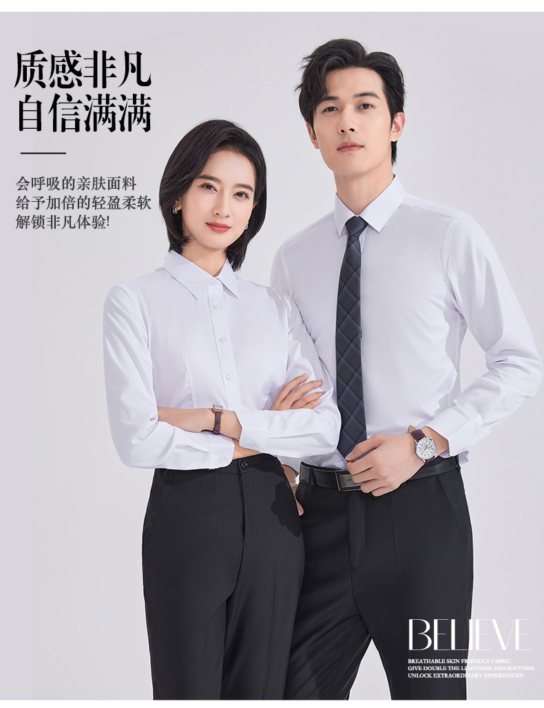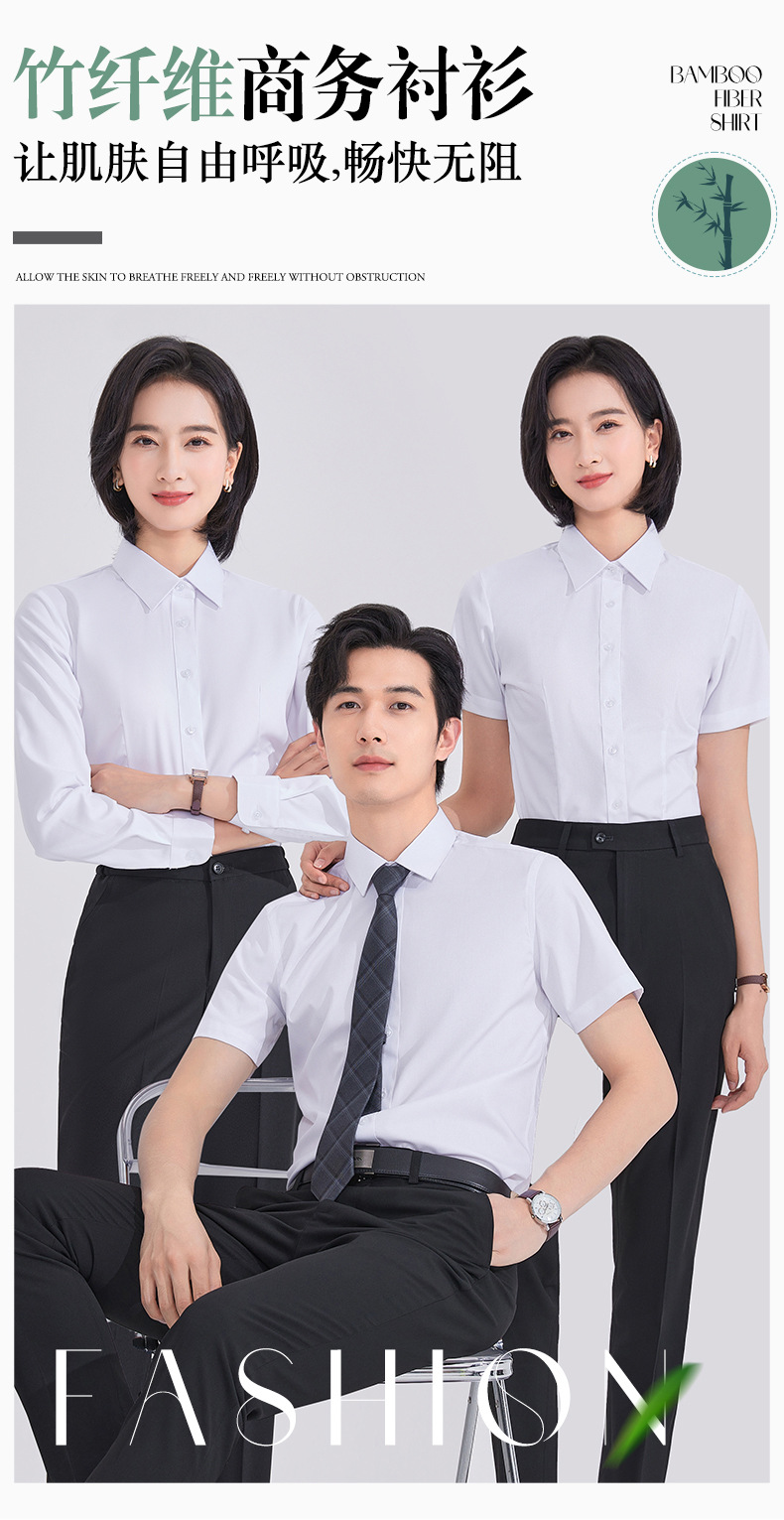 다림질 필요 없는 대나무 섬유 셔츠 남성용 흰색 셔츠 비즈니스 정장 여성용 작업복 사무직 자수 로고 가능 남녀 공용스토어 가기