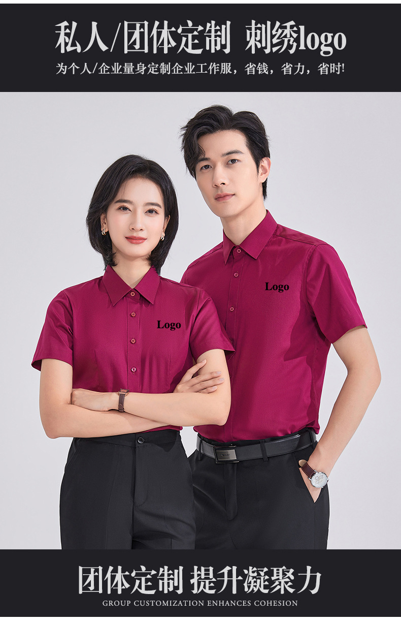 다림질 필요 없는 대나무 섬유 셔츠 남성용 흰색 셔츠 비즈니스 정장 여성용 작업복 사무직 자수 로고 가능 남녀 공용