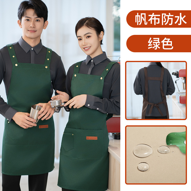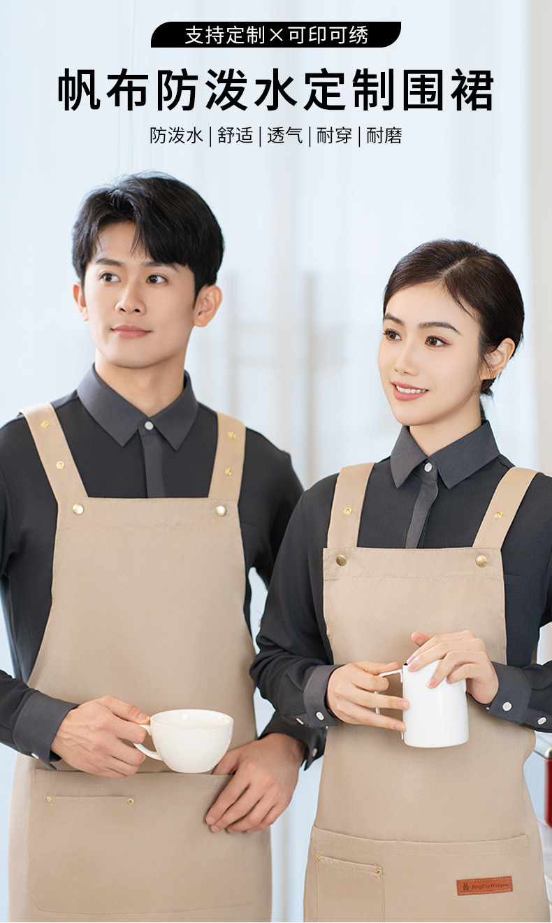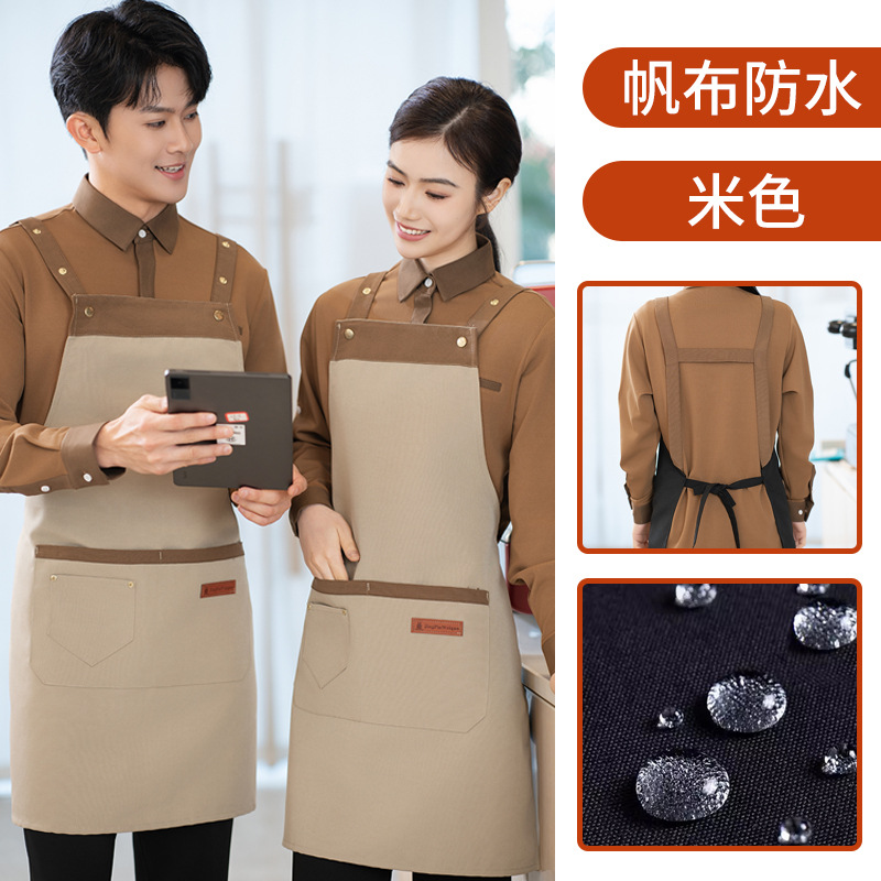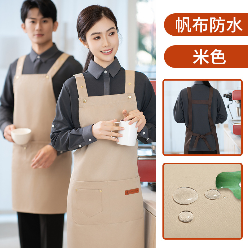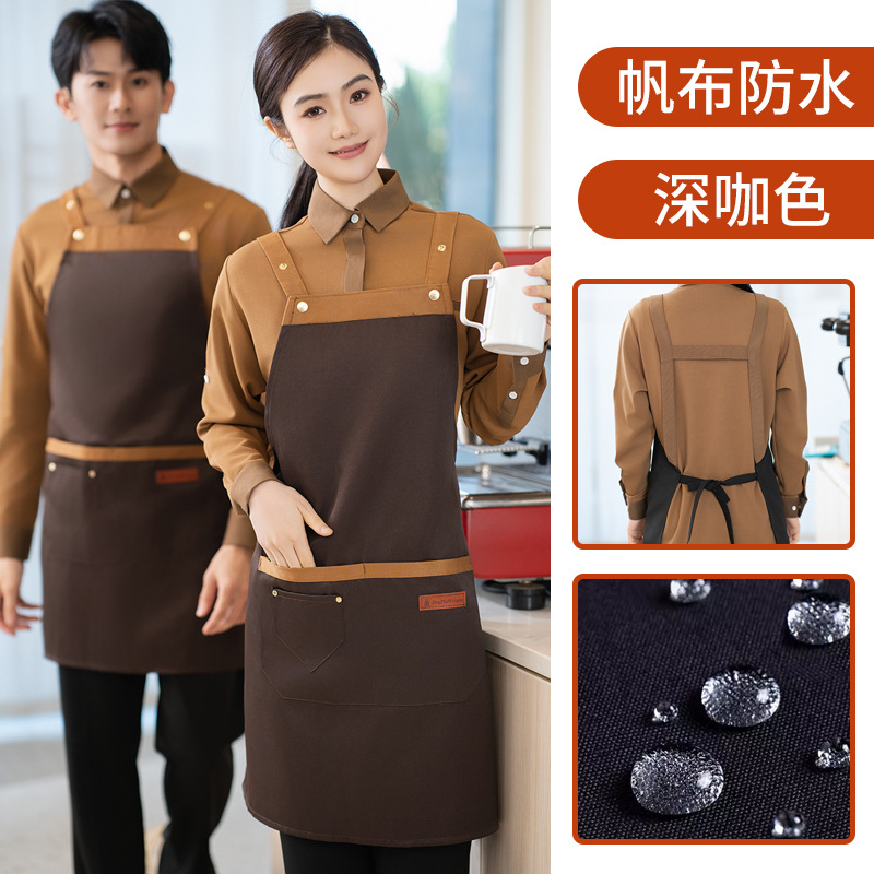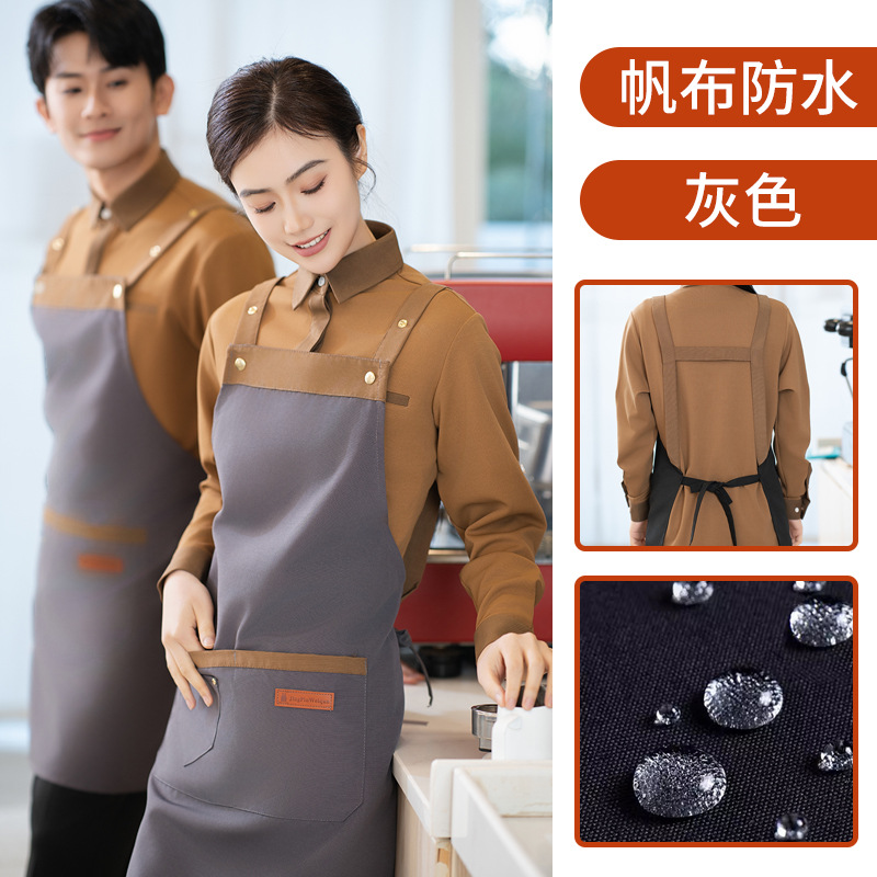인쇄 로고 앞치마 케이터링 차 밀크티 커피 숍 지배인 웨이터 작업복 앞치마 여성 방수 캔버스