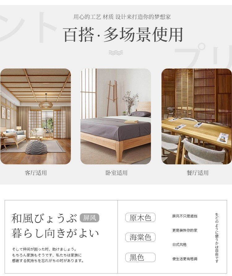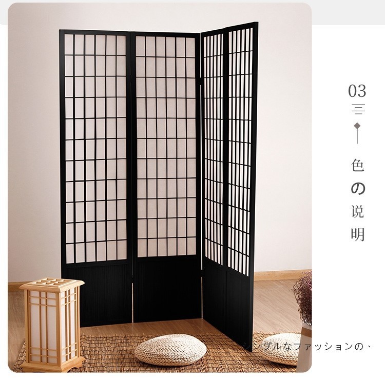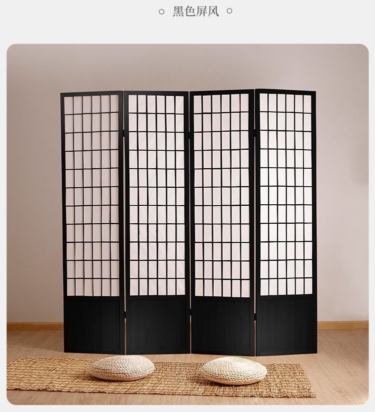 일본식 격자 무늬 스크린 울타리 방 기숙사 접이식 의류 매장 소녀 하트 소품 검은색 낮은 단단한 나무