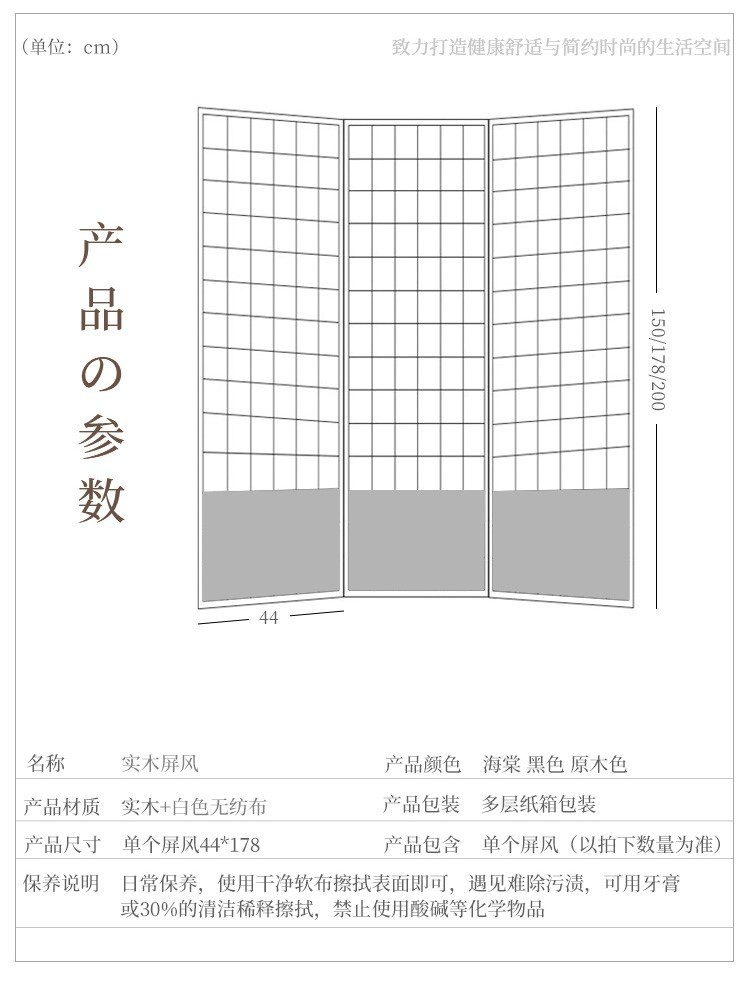 일본식 격자 무늬 스크린 울타리 방 기숙사 접이식 의류 매장 소녀 하트 소품 검은색 낮은 단단한 나무스토어 가기