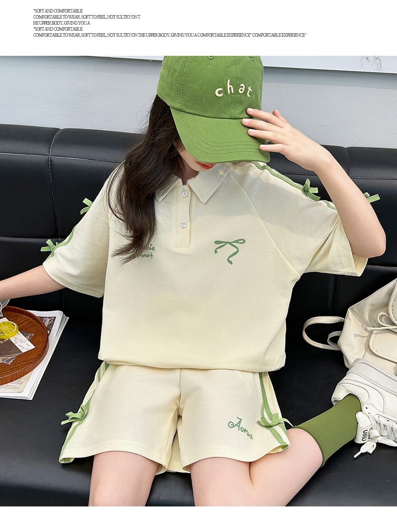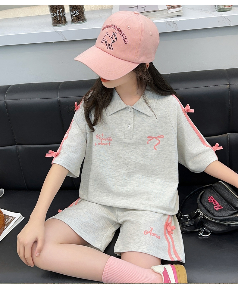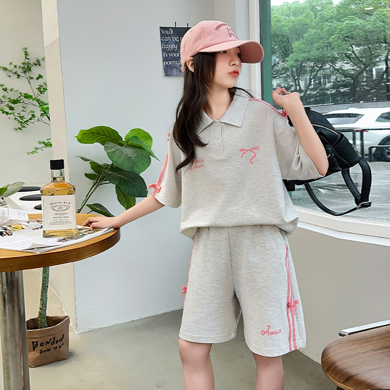 여자 캐주얼 스포츠 세트 2025 여름 새로운 어린이 활 반팔 티셔츠 탑 반바지 투피스 세트