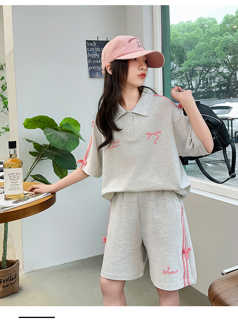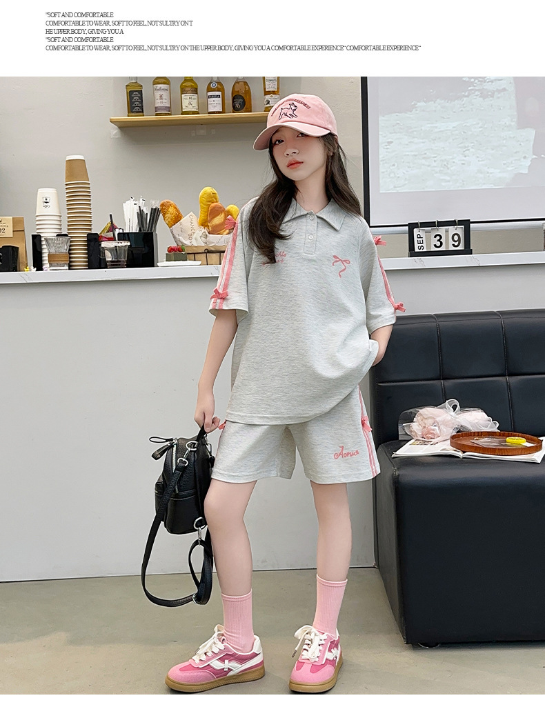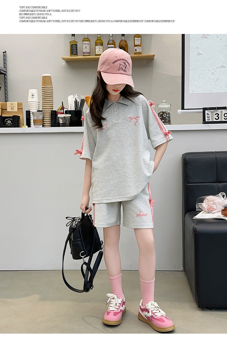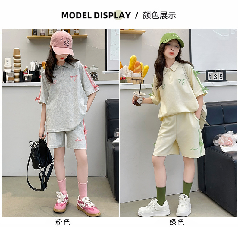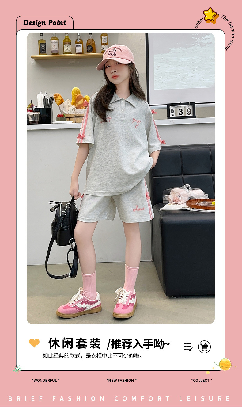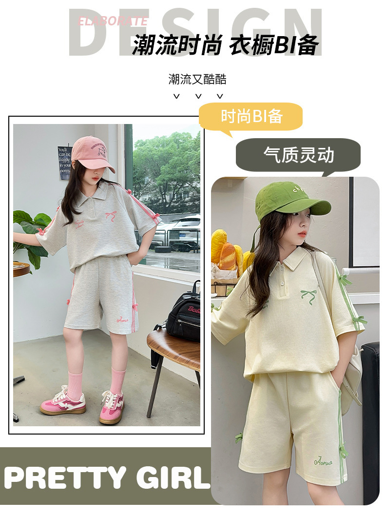 여자 캐주얼 스포츠 세트 2025 여름 새로운 어린이 활 반팔 티셔츠 탑 반바지 투피스 세트스토어 가기