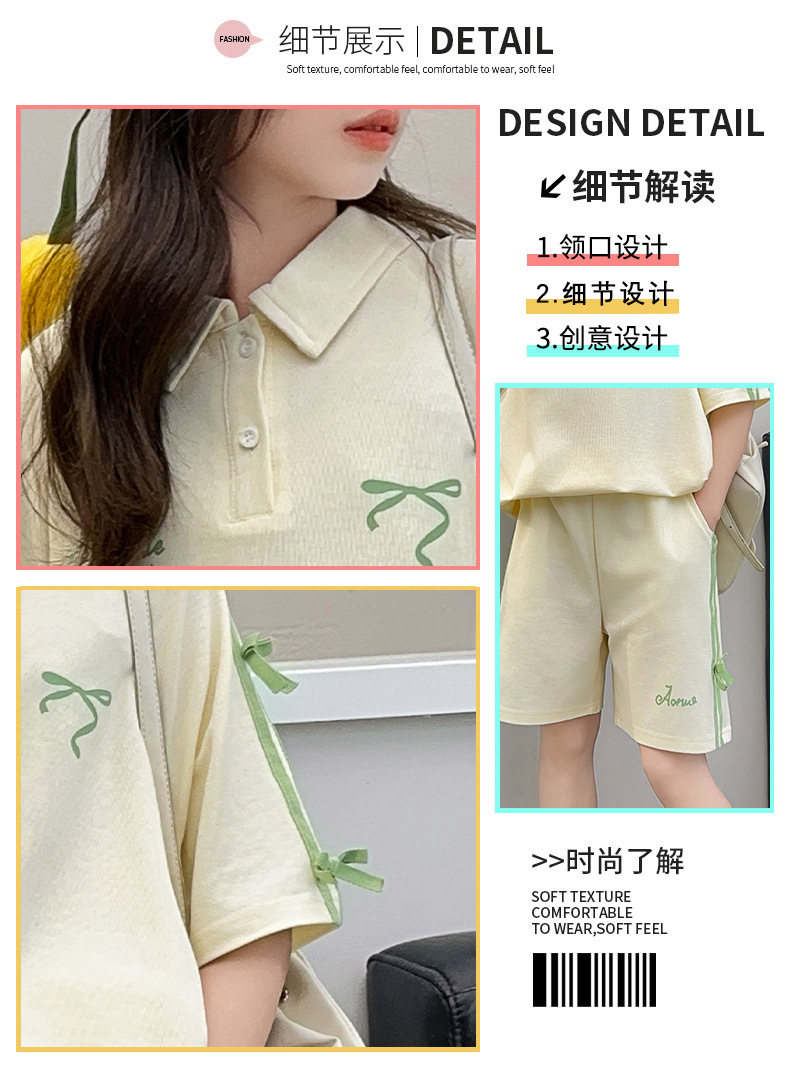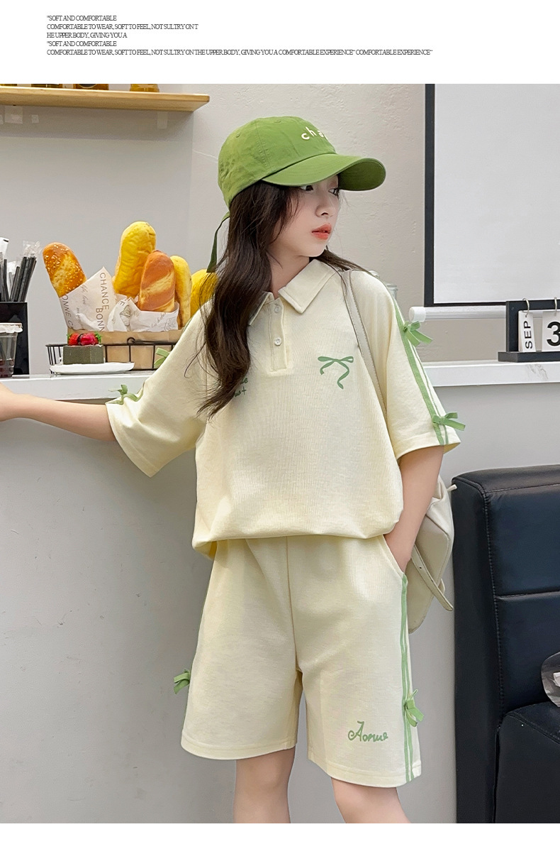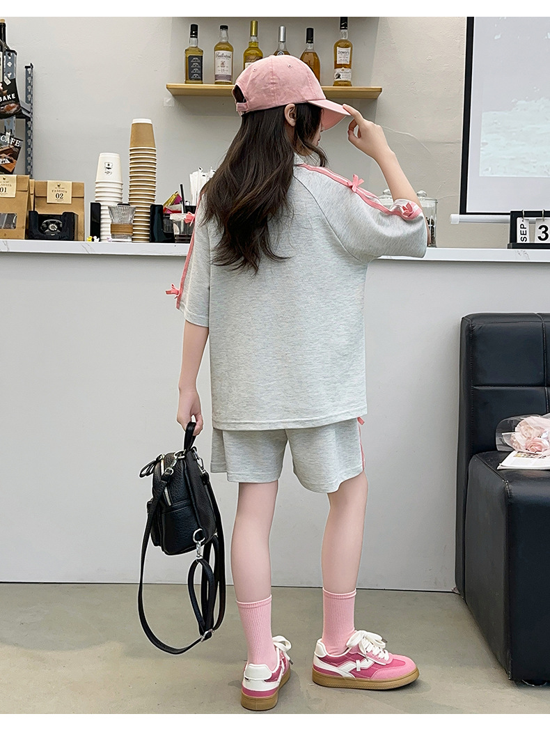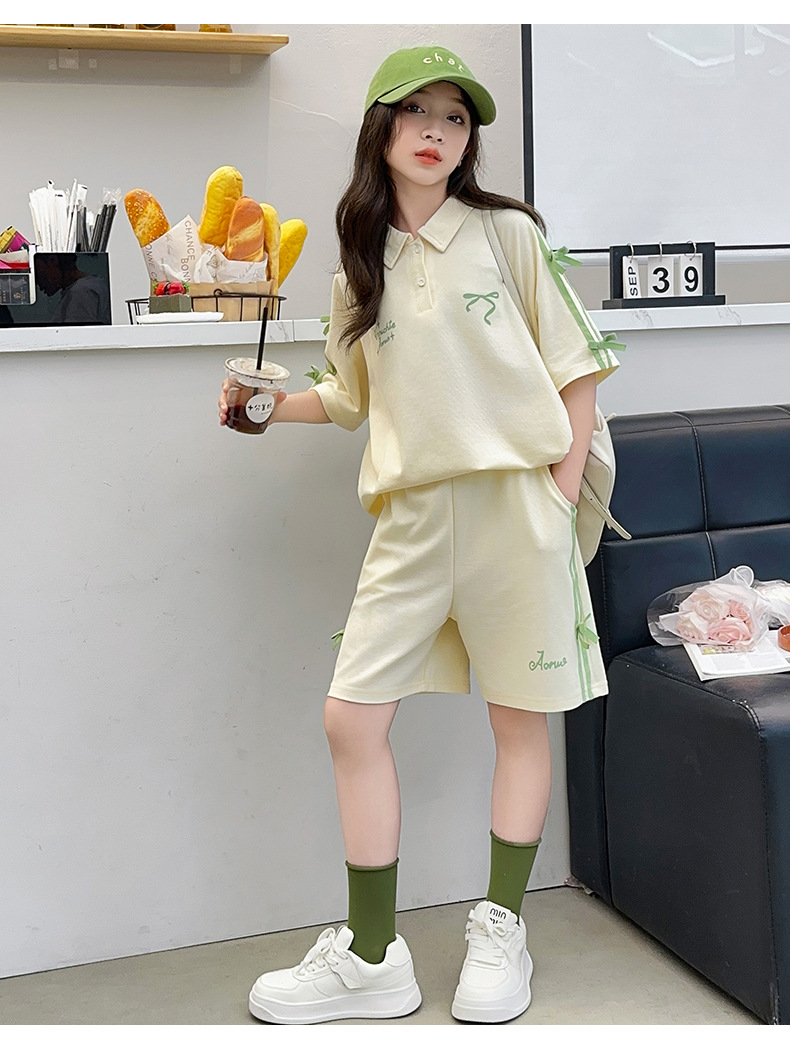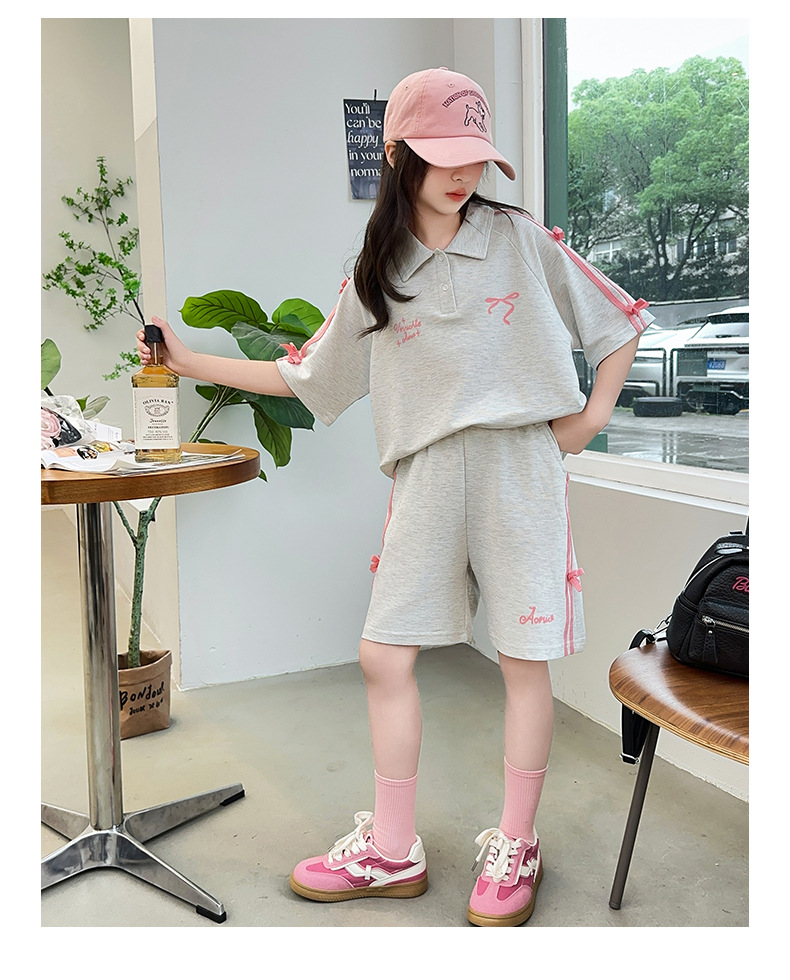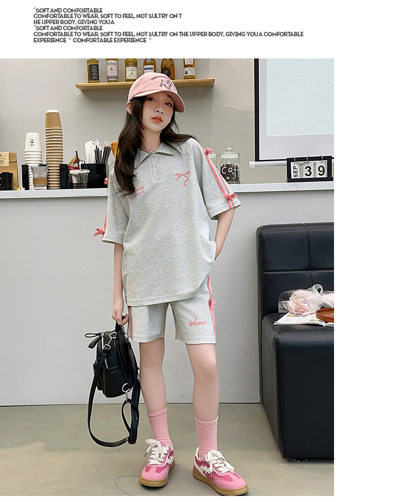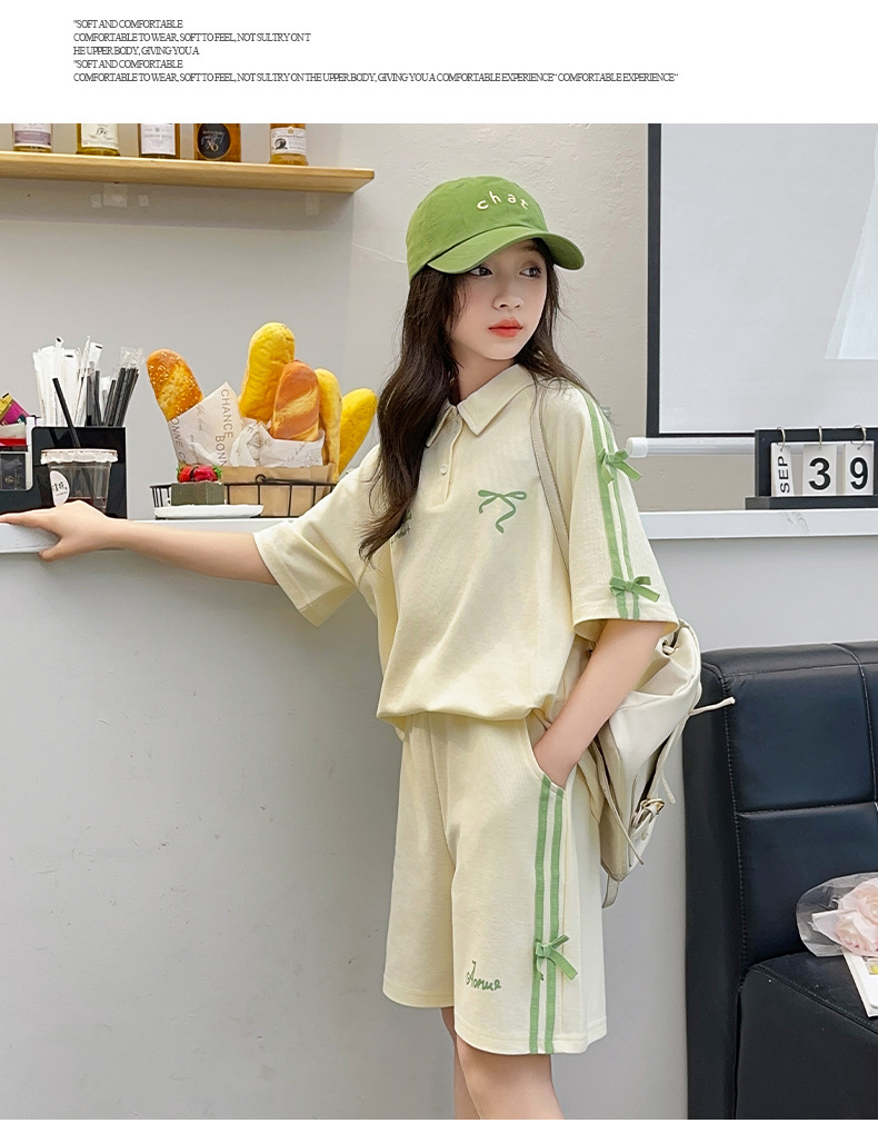여자 캐주얼 스포츠 세트 2025 여름 새로운 어린이 활 반팔 티셔츠 탑 반바지 투피스 세트스토어 가기